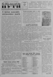 Трудящиеся Советского Союза! Еще теснее сплотимся вокруг Коммунистической партии и Советского Правительства, мобилизуем наши силы и творческую энергию на великое дело построения коммунизма в нашей стране! (Из призывов ЦК КПСС). Пролетарии всех стран, соединяйтесь! Ш С ш Л ш и ж & М ц П У Т И Орган Северного РК Коммунистической партии Советского Союза и районного Совета д е п у т а т ов тр удящи хс я Новосибирской области ЧЕТВЕРГ 5 НОЯБРЯ 1953 г. № 90 (1595) Цена 10 коп. С честью выполнять поставленные задачи Тысячи центнеров зерна— в закуп Богатым урожаем наградила земля самоотверженный труд колхозников. В колхозах Гражданцевского, Ново-Троицкого и других сельских Советов сельхозартели досрочно выполнили план хлебозаготовок, выдали хороший хлебный аванс на трудодни и большое количество зерна осталось для продажи государству. На днях 1000 центнеров зерна продано государству артелью им. Калинина, больше тысячи —колхозом „Заря коммунизма“, около сотни центнеров доброт чого зерна . продает колхоз им. Жданова и ряд других. Изобилие продуктов сельского хозяйства делает возможным значительно повысить ценность трудодня тружеников сельского хозяйства. ПО ПОЧИНУ КОМСОМОЛЬЦЕВ КОЛХОЗА „КРАСНЫЙ ОКТЯБРЬ“ Комсомоль цы сельхозартел н им. Молотова обсуди ти на своем собрании обращение комсомольцев колхоза «Красный Октябрь» и решили поддержать их почин. Решено провести воскресник по подготовке ферм к зиме и обеспечить запас кормов. Много внимания уделяет молодежь строительству электростанции. Комсомолец т. Ежов, возглавляя группу, обязался не жалея сил работать на установке столбов, возведения фундамента станции, установке локомобиля, чтобы в ближайшие дни лампочка Ильича освещала дома колхозников. Все комсомольцы колхоза проявляют особую тягу к политпросвещению и заверяют районный комитет комсомола, что все будут аккуратно посещать занятия кружка и повышать свой идейно-политический уровень. Заведующая к л у б а Галина Крестьяиова с активом села прилагает усилия к тому, чтобы культурно просветительная работа проводилась повседневно. В центр внимания ставится широкая пропаганда среди населения вышедших в свет постановлений иартпи и правительства. Г. Новоселов. Инициатива не поддержана Состоявшаяся на днях районная партийная конференция отметила успехи, достигнутые районом за период, истекший от предыдущей конференции. После отчетного доклада секретаря районного комитета партии т. Коробейникова развернулись оживленные прения делегатов. Всего выступило 25 человек. Выступления присутствующих с критикой работы районной партийной организации налГЬ признать правильными. Районный комитет партии и первичные партийные организации не выполнили полностью постановление предыдущей партконференция, не вполне достаточно работали над выполнением решений X IX от.езда партии. Недостаточно проводилось организационно- партийной ц партийно-политической работы, а отсюда и тс недочеты, на которые указали делегаты конференции. Отмечены также недостатки в руководстве культурно-просветительной работой. Особо указывалось на подбор кадров культработников. Исторические постановления партии и правительства вызвали особую активность трудящихся. Делегаты конференции по деловому обсуждали отчётный доклад и не стесняясь критиковали недостатки ор