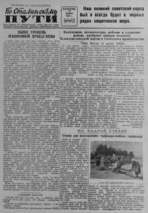 Пролетарии всех стран, соединяйтесь! МСшМиижЯАш П У Т И Орган Северного РК Коммунистической партии Советского Союза и районного Совета депутатов трудящихся Новосибирской области ВОСКРЕСЕНЬЕ ! 29 ! НОЯБРЯ 1953 г. ЛИ)И1602) I Цена 10 коп. I Наш был и рядах великий советский народ всегда будет в первых защитников мира. ВЫШЕ УРОВЕНЬ ЛЕКЦИОННОЙ ПРОПАГАНДЫ н ч о е е ск В о с г т н о р а о ш о и б е т щ й ел е ь с с с т т т в р в а а о . н К е а к ж ом д и ы д м е й у т ни д с м е т н и о ь щ приносит всё новые и новые н у а спе м х о и щ . н О ог с о обе т н ру н д о ов п о р го ош п л о а дъ в е о м л а б с ш р р е е ь в д с л и к е о н г т н о р ы у е ж П е л н р е и е н к ш у о е м в н а и с е е м л Ц а К . В с о К е о н П д т С у я С они поднимаются сейчас на б с о к р о В ь го б о у л х ь о з т з а о я й й к ' р с у т т в о а п й , ол п и о т д и ъ ч е е м ски с й ельп трудовой подъём чувствуется с ё ш р е е м г о д о х и ва р р т а и а й б л о о н т к а н а . ж ик д Ч о о в т го о с б к е ы л о э а л т х о о т и зн п и о к д н а ъ а , ж м а е щ ха е н г и о зато р р а а й , он р а абочег н о ео п бход сл им уо поставить на должную высоту п ск р о о г п о ага П н л д е у ну р м е а ше Ц н К ий п се а н рт т и я и брь и последующих постановлений партии и правительства но сельскому хозяйству. т ч а е Н т с ь е к о о б й п х о о д ди с м о п з о н ов а п ы т о е ш в л е с ь е н н д и о н е с е м т в и но по р л м а и а б т с о и с , н к зя и ад йст в в н о н ед н р о е в п н ы р и а х е к м д т о и с к в т и и с . ж ел ен ьс и Б к й о о л е н ь а ш х у о у ю роль в повышении р с а к т о ь го л у е р к о ц в и н о я нн м а а я сс д п о р п л о о ж п л н а и г а т а с и н ы ч д г е а , проводить которую обязана л к е о к м Т т а а о . к р а ск я ая л г е р к у т п о п р а ская райи г с р п у о п л п а • при райисполкоме имеется в в к в о е о д д л и у и ю т ч е е щ л с е а т м я ве е 4 ю о 3 тд у ел т ч о в е м е л р о ж ве д к к е у н л а ь р ту у р к з ы а о тов. Фёдорова. В лекторскую г ц р и у н п с п к у ие вх р о а д б я о т тни у к ч и ител р я а , йце м н е т д р и а п сёл, специалисты сельского х н о и з к я и йств со а в , ет р с у к к и о х вод п ящи го е су р д а а б р о с т т - веннх^ учреждений. Это сила способная при правильном руководстве вести большую ' д м р я а у б щ н о и и т с у х т с и я п ч . о ес ф ко о г р о ми с р о о з в н а а н н и и ю я к т о р м у т р о ы р е В ск п и р з х ай н о о и н б х е ъе р 1 д а 5 б и о н т е а с н ю е и л т й ьск н и е н п х е л к о о х т л о о е , кл н во я а д р п и н р т о и е м л е ь р, т п . р в ов с А о е д р л и х о и т п Б о п в а . с з о а О в —н ещ р р у а е к н г о и у я объединения, даёт членам темы лекций. Сам т. Архппов часто выступает с лекциями перед населением, но п в Бпазпн- с е к д о и м не с н е и л и ьск е о ст м ь т л а е к к и т е о , рс к к а о к м т. об К ъ е- м им еле д в о , лг к о о м торы в й ест н п е с л ч е и к т ц а и е о т н с н в у о ю пропаганду. Можно ещё привести т то ы ры л е ект п о р р и с м к е и р х ы н о е б п ъ л е о д х и о н й ен р и н а й б ек о п о отдельных лекторов, но необходпмоотметить, что в целом работа лекторской группы и с н е и л й ьс н к е их по л с е т к а т в о л р е с н к а их на о д б о ъ л е ж ди н н у е ю в р ы е соту л . ек Д ц а и ж и е в ч р и а т й а о ю н т н с о я м ц о е ч н е т н ь редко. На афишах районного Дома культуры всегда можно в т н и ы ы д , е ет т ь о с г и т д л о а л ы ь — к к о а у к ч т и а т т н а е ц к л и ы я е н м к к е у о д л н и ь ц ц т е и у р н р с т к ы ие сел ра ь б ск о о тн го ики хозя п йст с в п а еци п а о л ч и т с и н р е а С чи ев т е аю рн т ой лек ср ц е и д й н . ей У ш д к и о р л е ы кт т о . к н М а и а я з е о в в с