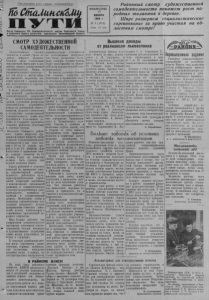 5 S Пролетарии всех стран, соединяйтесь! ШСшЛшшЯМц П 'ЗКТРИ Орган Северного РК Кошмукистическсй партии Советского Союза и районного Совета депутатов трудящихся Новосибирской области СМОТР ХУДОЖЕСТВЕННОЙ САМОДЕЯТЕЛЬНОСТИ Художественная самодеятельность в нашей стране получила широкое раьвнтпе. Большое число талантливых исполнителей выступают в различных жанрах художественной самодеятельности. Певцы и музыканты,чтецы п сказители- все они несут в массы образцы народного творчества, знакомят зрителей с произведениями классического и современного репертуара. 1! целях дальнейшего развития сельской художественной самодеятельности, повышения ее ндеВно-художествегшого уровня, улучшения репертуара самодеятельных коллективов, показа их достижений общественности, широкого вовлечения в коллективы художественной самодеятельности новых масс трудящихся колхозников, рабочих и служащих проводятся сельские, районные, областные п союзные смотры. Исполком Северного районного Совета депутатов трудящихся решил провести смотр сельской художественной самодеятельности в два тура: первый с 10 по 25 января, второй с 5 по 10 февраля. Для подготовки п проведения смотра создана комиссия из 11 человек. Такие же компсспп должны быть созданы при каждом сельском Совете. Задача районной п сельских комиссий по проведению смотра художественной самодеятельности, работников культурно-просветительных учреждений, секретарей партийных п комсомольских организаций развивать и совершенствовать сельскую художественную самодеятельность, повышать её идейный п художественный уровень. Необходимо чтобы в репертуар самодеятельных коллективов внедрялись лучшие произведения советских писателей, поэтов, композиторов и современных произведений народного творчества. Надо больше работать над повышением исполнительского мастерства участников самодеятельности, больше вовлекать в художественные коллективы новые массы колхозников, рабочих п служащих. В сельском и районном смотрах могут участвовать драматические, хоровые, танцевальные коллективы, вокальные ансамбли песни и пляекп, оркестры народных инструментов, индивидуальные исполнители на всевозможных инструментах, чтецы, расказчыки, сказители, танцоры. Лучшие номера будут представлены на областной смотр художественной самодеятельности. Во многих сельских Советах уже созданы комиссии по подготовке и проведению смотра, подобраны репертуары и началась подготовка коллективов. Прнбелннскнй сельский клуб (зав. т. Ипатьев) готовит песни н частушки на своём национальном языке. Районный Долг культуры составил программу и хоровой коллектив работает над созданием песни о своём Северном районе. Плохо готовятся к смотру художественной самодеятельности культурнопросветнтель- ные учреждения Гражданцев- ского и Чувашпнского сельских Советов, а особенно в колхозных клубах, потому что в стороне от этого важного мероприятия стоят правления колхозов п первичные комсомольские организации. Отдел культуры райисполкома виде не занялся по-настоящему подготовкой к смотру и мало оказывает помощи работникам колхозных клубов. Время для подготовки к смотру осталось мало. Необходимо немедленно начать эту большую работу и представить своп коллективы на сельские и районный смотры. Районным п сельским ком- миссия