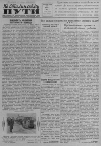 Пролетарии всех стран, соединяйтесь! П У Т И Орган Северного РК Коммунистической партии Советского Союза и районного Совета депутатов трудящихся Новосибирской области ВОСКРЕСЕНЬЕ 28 МАРТА 1954 г. № 25 (1634) Цена 10 коп. Труженика колхозных полей! Весна не за горами. До начала полевых работ остается немного времени. Развертывайте шире социалистическое соревнование за всестороннюю подготовку к весеннему севу. Все силы исредствана выполнение стоящих задач!* * *■ --------------------------- Организованно провести весенне-полевые работы д н а и чи Т в р ы к у п р ж о у е л т н н о и я г к о ю и т п к о г о д р л ъ а х н е о м д з и а н о о з в й н с ы е д х е ер з о е а т в раслей сельского хозяйства, что налагает на них большую н л о о а т г в г а о е ю т р с т т е в ш с е е в н н о н и п о я ст у ь с в и . а л ж и н И я ых дл о я н п и усп се е п р ш р ь и езных дел. Об этом говорят к о м о т н в в о е г р о ж ч ж е и и н с в н л о о е т г н н о н о ы в е о т д р с у ф т д в а а а к : ты ра д б о о с я а т р м н о и о к , свинарок, чабанов; честный труд полеводов, борющихся за получение высоких урожаев колхозных полей. Такие х и о м з . ы, Кр ка у к пск «К о р й а , сны н й м. Ок М тя а б к р с к ь и о » м л , а Горького, нм. Молотова, «Заря коммунизма», «Намять Леци- н в и я е а» м тс у я н се к д в р у о у . с г в и Р о е я ен д г и о ю т к о о в л ы ц х е о л з и к о н в н в ы е го х с т е о н и залежных земель. Партийные организации ведут широкую агитационно-массовую работу среди колхозников, разъясняя им важность постановлений сентябрьского и февральского Пленумов ЦК КПСС. я г в а е щ е н т и Н н х о о т с а т п р к ь е е ж р ш е е н е д а ни б м е к о е о л с л в ь т х ш с н о е ы у з х ю е а м за и п д р о а т о ч в м , н е ы а т с л ш с т т а ол г н о е а в н ы н л ы е ес е п п р п о ш р м е е х д ф о п с з к р ы и и е я р ти а О й я р о , г н а а н н . и а зац т и о и р , м е ы ст ш ь У ле п н в р н о е о з д с м п т о р и ж ия н п т о и ст й и л м ес е п с р т с н о н м о а й б х ж о п з а р о т в о ь с р к р т и о ы в л а , а л х м о а и м з , ы и, да с т т т ь р р о а и в н т с е п п л о о ь р м н т о ы н щ м ы ь и ми тр м с а а р к т е т е д о оказывать помощь в строительстве п с л к о о и л к н , х я в ть п м о е м з х а е а к щ н а и е з н ы за и ц й и , ж к и и о в л з т о х е о т о р к н з н о о о о в в в с , о у д ш в ч ы и е на щ н щ п и о и и з д е к а е с т о л я о л к р х у о о в з в в ы о а и з г н м о т у н о . ж ч ж д и д н . к В а о о ю с в т т т и а с д к я л о .I я й I и п м м о е е м х ю а о должны использоваться в полной мере. х а В о р с т з ё е о л в е э , т й о п р р у о д к м о о л в к ж о о д м н и ы б т и е н л а и т п а л , р е о с д п п у р м р о о а м м т ь с н п е е р с ь т о е т о зн я в щ о ы и п п х ол н н з е е а н да и с ч т я . оят т ь реб в ов с а т н о и р й оМаксимум заботы обязаны проявить райпотребсоюз и До весны завезти в г м н и о а е е газ ж и е х н л о ы е з з я о й и , ст н и в а н е с н т с н к р ы л у а м е д е ы нт р , т а о з в л д а и р р ч у ы , сбрую, смазочные- материалы, весеннюю обувь п одежду в м д ва о а т т с ь т ь а с т т е о о й ч р ч н г а о ы с в х л о ю к т о о л в м ич , п к е о а с л к т е в в а о о х р д . г ч а П е н с о и к д з и у о х и тракторных бригадах,сколько надо иметь развозок и латков. Партийные организации и руководители шефствующих р о е р с г м ан о и тр за е ц ть ий т с а в к о ж и е в д з о г л л ж я н ды ы пе н а помощь колхозам в проведении м ты асс и ово- о р к а а з з ъ а я н с и н и ител п ь р н ак о т й ич р е а с б к о о й н п ы ом х ощ р и або н т а ах с . ел Н ь а с д к о о , хозя чт й о с б т ы вен н е д с п о у о в л о у в - ч б и п а л н а о р к с т о ь