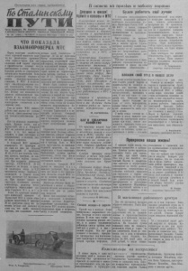 2 ПО СТАЛИНСКОМУ ПУТИ 8 апреля 1354 года ВЕЧЕР ВСТРЕЧИ С НОВОСИБИРЦАМИ 3 апреля в большой дружбе ж пр и ош р е а л йо в н е н ч о е г р о в ц с е т н р т е р чи а с м к о о л м о с д о е - м е бо х о а т л ы в ь ш ца и в м м и и к - о н л о в х в о н о з с а а п ш х бп р р н а ц й а М о м н Т и С , д . ля пр р о аДом культуры полон парода. т с с С о т о м у м п п о р в и л и ы л а в с е т т с т у . е с п к т и Н р в л е е о н т в к а н о р о ы се ь м м л с р о о а в м с й . л о к о л в о е о м С ц м а - но к о в о в т о м ы в сибирец Николай Свиридов. О н е рассказал о том, как он решил ч т м д и е е о с л и л т о ь н м ц о е п , о в т , н в е е ч м т т и ж о о т с а ь к л б о е у в н я д с а е к т с п и , и р х л и т . з р ы уд в и к т п о ь а м с р я с оВыступила Тася Мптюгаева, приехавшая в наш район. М ну о л с — к и о с Н в ь с а к к о п о й р м п с з о ы м в ол п ь а ц р ы тии М о о т с к к л в и ы к , II многих других областей,—говорит она. В это с п ч к а и а т л р а и и с о ь т д и р ч у м е г с о и к л х о о е д г е д о ж в р ь и о ж до е в Н н о и в е о о б в с л к и а л б ст ю и и р . Я, как комсомолка тоже не д р о о л н ж е. на Об б д ы у л м а ав ост и ава в т с ь ё ся вз в ве с с т и о в , подала заявление в райком в н в к е ы и о р т н х м ь о с м о р м м а е й о р н л о а я й а н , о о в н в— е. п о д о и В п ин с р в т о о р с и т е и з т л и а л я о и т н д а в а п л н р е а С н а с е т з и де р с а ь ми т . еп П л е о р , во о е бе в с р п е е м ч я или я кв т а р р у дилась в теплице колхоза им. К сы руп у с ч к е о тч й и , ко за в те п м ри про Т ш ар л т а асс к к у о р й т М и Т вн С ый и о н т а р з я н д а . че Д н о а н в ач м ал е а лио р р а а бот думаю ещё потрудиться в теплице. Колхоз и МТС нам оказывают необходимую мощь. Призываю товари п щ о и комсомольцы пойти в колхозы и МТС. Не бойтесь трудностей. к р м К п у р ы о о д у е м л т а ь с з о с т а к м р т - о п н у р л а д у а л ь н д - ц а А е н т а м е е к м . н у и , и р я е И с , т г н р о о п а п р и ш р р о о в д и и с ш х т о и о н д м е и К к л о о о м в т с о с о ь о что против тех. О своем желании работ н а и ть н те а р В и б ы н л а с а т го у С п в и и Р л р о и д и и д н о д в ы е а в . у з ш а к я и вила ко Е м к с а о молки районного центра Нина Ларионова, Ольга Юнткмон, Мария Степанова. Двое из них работают в теплице и они с гордостью заявляют о том, что они видят плоды своего труда, д в у ыра п щ ом и и в д а о ю р т ов л , у о к г , у р рц е о д в ис, и р т а . сса д . д К зи аж ны у 1 д р л а м я й а ц я ен н п т а а р с а е р л ы д е н н а к д и и у я т и с в в веж м п а р и г о е а , н з з с д о е ы л а м е в е о н а л т ы ь ь б е ц р е к и в о о г в м а о п д с щ о ы о й м и т . о и л н П ь р с р а к п б о з о - в м т а а о л т л п ь о , д к е о ж с м о показывать пример в труде. ч та а м л З К о и а с а . т ь ж е д м о г о е б р ы я в л ч ы и с п м т о и у с п та л в е л а н е п и н л е о к д о и н в с ц м с е т е р р н т е с л н и ы ей ла и м н и о Д чи о у м ча а т щ а к н и у ц х л е с ь в я т ал у с а р р ы ед . п не Д й в о е п ш се о к л з о д и лась молодежь. ШЛЮ ПРИВЕТ В РОДНЫЕ КРАЯ Нахожусь в рядах Советской Армии и из своих родных м но е г с о т— ра се й л о о на О я ст ч а а н с п т н о ка по С л е у в ч е а р ю письма от родных и знакомых. Рассказывают они о своей жизни, о колхозных делах. Наблюдается большой рост з г р и я о и д й а р с л а т ь о з в т в н а и о т е и м г е о о п д е а г к о о у у б л л р щ ь о у е т д ч с у ь ш т р о в а н г е е о о н т е н с к о я о г л о б х л м о а а з х г т а о о е , состояние дорогих земляков. Узнал, что в моем селе в в од ка ст ж в д е о н й ны к х варт о и б р ъ е е п кта н х а п г р о о р и и з т л ко а м мпо с ч ел к е а р И а л й ь о и н ч а а , . г Э 