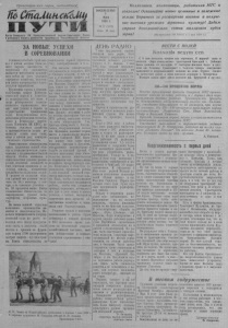 Пролетарии всех стран, соединяйтесь! Орган Северного РК Коммунистической партии Советского Союза и районного Совета депутатов трудящихся Новосибирской области ВОСКРЕСЕНЬЕ ! 9 МАЯ 1954 г. № 37 (1636) | Цена 10 коп. ; Колхозники, колхозницы, работники МТС и совхозов! Осваивайте новые целинные и залежные земли: Боритесь за расширение посевов и получение высоких урожаев зерновых культур! Дадим стране дополнительно сотни миллионов пудов З е р н а ! (Из Призывов ЦК КПСС к 1 мая 1954 г.) ЗА НОВЫЕ УСПЕХИ В СОРЕВНОВАНИИ в ш а е л г С о о к ци ж н а и л а з и р н о с и т д и а. ч ве е л с и к А к и к и й т е и с в т с н р и о о л с й ы ть вы на з и творческая его инициатива я ш в и л х яю п т о с б я ед ис н т а очни в к с о ех м д у а ч л а ь с н т е к й а х к п н о о а м л ро у р д ч о н и с о я т г а о т м р х у а о д т з е я я р щ й и и с а т х л в с ь я а н . , ог и о с б то л ч а н го и Труженики города и деревни, с с г п т о л и о ч п ч е р е с а н к в о н и й ы т е е п л а ь р с в т т о в и к а и р , уг и всё К С ш о о в м и е р м т е у с н ко и и с ж ш т а и и т р ч е еск св о р о е а п зв у е с р с о п т р ы е е х в в и н аю ов т в ан б и о е с р о , ь ц б и е м ал н и о з а осуществление грандиозных з р с а к и д о ч а г е ч о с . ким и В и о р о ф е д ш е у в ш е р н е а и в л л я ь е м с н к и н о с ы е - е нт м я а и б р р с т т ь о о в с б к о о т г н о ики Плен с у е м ль о с в ко Ц го К К х П оз С я С й , ст р в а а ш и им пр о о ст м и ышл о е т н д н а о т с ь ти с п в о о л п ны си р л е ы , о с п т ы и О т ч т е в с и е к т о з с г н т о в а е н н и с н т я ы ро е д и е т л о е у б л я ь з с а к т т о в е а м л . м ьс у т н в и а в н с з о ти я в л а и н в ии со т ц р с и у т ж а р л е у и н д с и я т к щ и и ч и е м н с и к а с о ш я м ей О с м о с о р к б е о л в й а области. Особое внимание в о р б е я н з и а ю тел п ь о с с т е в в а н х ых удел п е л н о о ща р д а е с й ши з а с л ч е е ж т ны о х свое з н ем ия ель ц , елин п н о ы в х ыш и ени за ю урожайности колхозных нолей. т с ч В а т и р и т а с ь , р у е а р д п о н н о ж а е а м 1 с й е 4 м п ,5 м е о н ы ц н к е ы д о н о л х т л х н ж о у е з н ч р а ы а а м стк с п а о о х б г л — л е у а к на 20 процентов выше. Взяты повышенные обязательства по выращиванию урожая льна, т к у а р р Н . т е оф м е е л н я е , е в о а г ж ор н о о д й ных отра к с у л л ь ь ю колхозного л м я е е ч т ен ся о п и ере ж вы ив п п о р о т о л н и н о з и в в т о о ь д д с с г т т о в в с о а у . да Н я р а в г с н о т о в л г е о о н в н ь с ы я к й от в а с п е л х и ан в п и о д п л о о у в чи п т р р ь о о с д т у у к н т ад и п о в о й молока в н н м у а а с ю . тр В к и о з г я р т о ш ы в е у р с с 1 р т 7 е и д 0 — н 0 е 4 м к ,1 ил н к о а и гр л а о ф м г у р м р а о а м в ж , обязательства по с н т а в к Э у о , т п и л э е л н е в и к ы ю т с р о и к к ф и о е и р к м а о ц в о и , б и я ст з р а и т о е и л т т ь е . с л д т ь . в а обсуждаются в колхозах, МТС и с о л н е а со . и в К хо о в з л а х к х о о з л о н х б и о л к з а и а с х ти се , л н ь а х ш в о е з т г а о о р м те р л ч а и и й и д н м а ы я . е , М о в а б з к я я с л з и а и м те а п л а ь Г с о т р с в е ь а б к я о и го н п ап о о в р б ы а с в ш у л е ж я н с ю н к е т о н й и с е в . п о о и д Ч в л у е е л с н и и ы ли а и я р т т о е н г л а и и с и и о м р х . ев в К н ы р о п у в о п а л ния между бригадами, итоги з ч н и и и м т е о . ь в с Д к я и ру в ж и н об о т л а а к с ж в т с н е т о у р е п е и ш л и с и о л р и е в в в н к р о л а в ю б а о ту многие тракторные бригады МТС района, выполняя взятые на себя обязательства. Так, б т р ен и к га о д , а о к б о сл м у м ж у и н в и а ст ю а ща т я . К к о о н л д х р о а з им. Калинина, занимает первое т з к м а о о е т р 