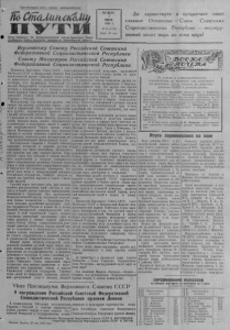 Пролетарии всех стран, соединяйтесь! ОпйМмл&Щ П У Т И Орган Северного РК Коммунистической партии Советского Союза и районного Совета депутатов трудящиеся Новосибирской области ЧЕ И Т Ю ВЕ Н 3 Р Я Г 1954 г. № 44 (1643) | Цена 10 коп. I Да здравствует и процветает наше славное Отечество —Союз Советских Социалистических Республик — несокрушимый оплот мира во всем мире! Верховному Совету Российской Советской Федеративной Социалистической Республики Совету Министров Российской Советской Федеративной Социалистической Республики Президиум Верховного Совета СССР, Совет м ч М о у и н н п и и р с с т и т и в р ч е о т е в с с т к С в о С у й ю СР т пар р т п а и б Ц и о е ч н и С т х о р , в а е л к т ь о с н л к ы о х й о го зн К и о С к м о о и ю в т , з е а т ин г К т о о е р м л я л п ве и у т б г с л е к и н о к ц й и ию Ф и , ед в п е с о р е з а х д т р и а в т в н р л о у я й д ю я т щ Со и и ц х х и ся а с лис Р б т о о и с л ч с ь е и ш с й к и с о м к й ой пр Р а е з С с д о н ст и и ко ч м еск д о р й ужн Р о о й ди с н е ы мь — и 30 н 0 ар -л о е д т о и в ем паш во е с й сое с д о и ц н и е а н л и и я Украины с Россией. с з к ы и в М й аю но т п го д у в в к е а к р о а в в и е ы н л е с и к к и у и й з х ы . с Э л н т а е у в р я у н ш св с и е к м т и л о х й ую н , д а р р н у о е ж д р б а а ы с — тор р с ж у в с и я мую дружбу, народы-братья пронесли через суровые испытания столетий. Они развивали и ден у и кр я е , п б л л я и л з и ост ее и н яз а ык ос а н , ов д е авн е и ди х нс э т к в о а но п м р и о ч и е с с х к о и ж х н п о о й лит о и с ч в е о с б к о и д х ит и ель к н у о л й ьтур б н о ы рь х бе связ п е р й оти в в сов о м бщ ес и т х врагов. Постоянное стремление двух братских народов к тесному единению и вечному союзу з т а о в м В е , р о ш с п с р и о о л е в о д о с и з ь н г е л з н а н ш и а е е м н е н н У ы а к т р м е а л и ь П н н е ы ы ре м я с сл и а с Р в т о о с с к р с о и и й ч е е й с Р к а о и д т м о в й еч . а а к л о коренным интересам и чаяниям русских и у н и к о н е р ск аи и зн й н а ц ч е н е в а н , р и о о е д но д б л ы и я л ме э л и т о з и б х а в в е л л н е и а н р ч о а о й д т о ш в е у - е б гр р о ат з п ы ь р е о в г . и р н е У о с з к с е и р м в а ного порабощения и получил возможность своего национального развития. Русский народ обрел в лице украинского народа верного друга. В рос р л е и зу с л и ь л т а а , те мо в щ о ь ссо п еди м н е е ж н д и у я нар н о е д и н з ы м й ери а м вт о ори в т о е з т Российского государства, ставшего центром н о н п и о м р Р и о у й сс в к р д и а л г й я ам б н и р а . р а о т д ски п х ро н сл ар ав о и до л в се в бя б , ор к ь а б к е н с ос в и н т е е ш ль г п в р е о л е м и с е с к щ а и и х в ко б р в о е р в ь п о б л е юц б п и у р р о о н ж т н и у ы а в з х и ц и а и . р д с е к й о П г о о с д во с б ам о р д о у ы д к е о р в и ж од а с в п т и в р я о о , м К ш ич о и е м м й му г Л н е е и н н и ст и е и м н ч ы е м с ч к , е о л й р о о в п с е с а ч и р е й т ст и с в к и а и , й о — сн п о р В в о л а л н а е д н т и а о р м й и и а р в т о е м ли с ч И п а л л й ь о тил трудящихся России и привел их к победе В л е ю л ц и и к и о . й В Ок э т т я о б й рьск ге о р й оич с е о с ц к и о а й лист б и о ч р е ь с б к е ой ак р т е и в в о н о участвовал украинский пролетариат—один из самых крупных и боевых отрядов рабочего к л ны ю ла ц с и о с и т а с н Р о о а ц в с и с с а и е л г и ь д . н а о П г о о о с б в е о д и б а о н д а и с ц л о и а ц о и н н а а а л л р и ь о с н д т ы о и г ч о н е а с г к ш н о е е й й та с р , т е р в з а о а ложила основы нерушимой дружбы народов, их тесного сотрудничества и в