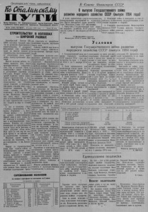 Пролетарии всех стран, соединяйтесь! Яб СтаМшснЯЛш ■ 1 ^ 1 1 1 Орган Северного РК Коммунистической партии Советского Союза и районного Совета депутатов трудящихся Новосибирской области № 46 (1645) ЧЕТВЕРГ , 10 июня 1954 года. Цена 10 коп. СТРОИТЕЛЬСТВУ В КОЛХОЗАХ - ШИРОКИЙ РАЗМАХ Сентябрьский Пленум ЦК КПСС поставил большие задачи по развитию общественного животноводства. И успешное йыполнение этих важнейших задач во многом зависит от строительства скотопомещений, от обеспечения скота хорошими, благоустроенными фермами. Многие колхозы района, понимая важность дела, ведут производственное строительство. Так, в колхозе «Путь к коммунизму» строят телятник и достраивают коровник на 100 голов. Вторую кошару и третий телятнпк нынче заканчивают строительством в колхозе им. Максима Горького. В сельхозартели им. Сталина строят телятник п конюшню. Быстрыми темпами ведут строительство коровника па 100 голов, кошары — на 300 п телятника-- на 50 голов в артели им. Маленкова. Вместе с тем здесь ведут заготовку леса н пиломатериала. Не плохо пдет строительство в колхозах «Борьба за мир» и «Новый путь». А вот в колхозах «Путь Сталина», председатель т. Фу- фачев, «Украинец» — т. Косс, «Новая жизнь» — т. Долотов не думают о животноводстве. Придет зима и скот снова будет ютиться в холодных, тесных и необорудованных помещениях. Конечно, ни о каком повышении его продуктивности нельзя будет вести разговор и снова допустят отход скота. Ведь здесь до сих пор не создали бригад и не завозят лес на строительные площадки. Медленно строят фермы в колхозах им. Калинина, «Заря коммунизма» и им. Кагановича. Наряду со строительством ферм, надо строить сейчас и механизировать крытые тока, готовить сушилки к уборке урожая, приводить в порядок колхозные электростанции. Строительство в колхозах — ответственное дело и к нему надо относиться с полной серьезностью. В каждом колхозе должны быть созданы постоянные строительные бригады, укреплять их квалифицированными кадрами, мастерами своего дела. Райкому ВЛКСМ надо помочь колхозам—создать комсомоль- ко-молодежные бригады строителей. Правлениям колхозов рекомендовано применять сдельно- прогрессивную оплату труда строителей. Перевыполнения норм выработки оплачиваются в двойном размере. Производится доплата к основному заработку от 5 до 15 процентов в зависимости от стажа работы плотников. По решению общего собрания бригадам выдаются денежные и натуральные премии за досрочное окончание строительства и высокое качество работ. В организации строительства в колхозах не маловажная роль принадлежит машинно-тракторным станциям и они не должны стоять в стороне. МТС несут, ответственность за рост поголовья общественного стада и повышение его продуктивности. Их прямой долг оказывать помощь в самом строительстве, в подвозке леса и других материалов, в распиловке леса. Но такой помощи пока оказывается недостаточно. Большая забота должна проявляться такте и о культурно-бытовом строительстве. Об этом нельзя забывать. В колхозе им. Крупской, например, идет строительство колхозного клуба, домов для колхозников, 4 дома построено в колхозе им. Сталина, строят квартиры для колхозников в артели «Красный Октябрь» и других. Влсолхозах надо строить дома сельскохозяйственной культуры, детские ясли и т. д. Партийные и комсомольские организ