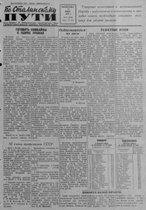 Пролетарии всех стран, соединяйтесь! СтаЛина&Ащ П У Т И Орган Северного РК Коммунистической партии Советского Союза и районного Совета депутатов трудящиеся Новосибирской области ГОТОВИТЬ КОМБАЙНЫ К УБОРКЕ УРОЖАЯ Весенний сев закончен.] Тракторные бригады ведут подъем паров, в колхозах и МТС готовятся к сенокошению, занимаются строительством и д в ч е р а д у с е г н и н и м а е д и м о д у в е ж с л е е а х ми в э . п т л Н и о а х т р н я р у д а ю у бо с т, г п с о е р т й о о виться к уборке урожая. Это неотложная задача. К жатве надо своевременно б р к о а у в й а н и т ы ь в . всю перв у у б ю оро о ч че н о р у т е ю р д е ь м т о е н х к т н о и и м 11а, долю МТС в этом году приходится намного больше работ, чем в прошлом году, так как расширены посевные площади, поднято несколько сот гектаров целинных лежных земель. Но ход ремонта комб и айн з о а в ц п и о ям маш р и а н й н о о н -т а рак г т о о в р о н ри ы т м з с а тан то , ч ст то ке те н м е пы вес р ь а м б а от н в а ысо э к т и о е м . у В ч с а ё внимание было сосредоточено с н к а их севе п , о а ре р м а о б н о т т у ы у в бо м ро а ч ст н е о р й техники шли, по-существу, самотеком. Во состоянию на 10 июня в Тартасской МТС отремонтировано 10 комбайнов, что не составляет даже и третьей части от имеющихся. с С т е а в в е и р л н а ая т М о Т ль С ко на 3 л , и ч н т е о йку так п ж о е с ц о е с н т т ав к ля о е б т щ о е ч м е у нь пла м й а у лый маш п и р н о, подлежащих ремонту. Ремонт д д о ел л е ж н е н н ому быт с ь ро з к а у к , онч о е д н на к ко оп п р р е и такпх темпах, как сейчас, нельзя быть уверенным в том, что комбайновый парк будет своевременно подготовлен к в р а а т б ь Н о е т л о е ь . зя ка н ч и ест н в а е м р и е н м у о т н у та з . аб О ы т того, насколько качественно будут отремонтированы ные уборочные машины, с б л у о д ж ет зависеть успех уборки хлебов. Д р ор и ы г р а е н к о и б то я з р з а а а ц н и ы й М , ТС г л , л с и а е ч в к н н р о ы ет е ар и о и с н у ж п щ а е р н е т с е т влять контроль за качеством, за организацией дряя передовые е т г р о уда м , ето в д н ы е , в п а о н л и не е е и м с а п с о т л е ь р з с о к в и а х т , ь п о р б е о се р к у а д т о ь бракодельство. Все комбайны, выходящие р и у з до р в е а м н о ы нта, д з о е л р ж но н у ы ло б в ы ит ть еля о м б и о, граблями, приспособленными к уборке, светом и т.д. Партийным и профсоюзным организациям надо возглавить социалистическое л н е и й е, уз т л ре о б в ов в а ы ть пол о н т ен р и у я с к о о р в е г о в р д н а и о ф т в и е а ка выхода деталей из ремонта. Н ци е ю обх и оди и м зг о от н о а в л л а е д н и и т е ь р за е п ст а а с в н р ы а х частей и мелких деталей, создать резерв для т ч о е в ско в го по о л б е с , луж чт и о в б а ы ни н я е аг т е р з е д е х г и н а т и ь каждый раз в МТС за десятки к в и аж ло н м о е й тро д в ета с ль к ю а , кой вы -л ш и е б д о ше м й ал и о з с л т и ро В с я в . о э и том гра г н од и у цы пол и я со р з а д з а д ю ви т н ся ул п ва р у н ч о и и ш я з и в е о т д е и у х с т н л е и о л к в ь и и н . я ого До д л л г я исп М в о ы Т л с С ь о з к о — о с к ч в о е о м с е т б в в а р о й е м н м ы ен о н и т о р , ем с о о б н е т с в и п ы р е с о ч о в и к а т и т ь ь м перебойную жатву хлебов. б в к е с а е с Развертывать соревнование механизаторов и колхозников з м а он с т к а орей уб ш о е р е очн з ы ав х ерш м е а н ш и и е н, ре за о к б е раз у ц р о о в ж ую ая п — од т го а т к о о в в к а у к с у е б й о ч р а с задача. XI съезд профсоюзов С С С Р н б ы от х 7 у с и X о ю I ю н з с я о ъ в е в зд С М С 