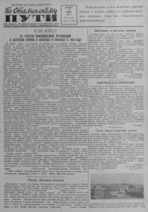 Пролетарии всех"‘стран, соединяйтесь'. Ш Ст<ашшОЛ11} П У Т И О р г а н С е в е р н о г о Р К К о мму ни с т ич е с к ой п а р т и и С о в е т с к о г о Союза и р айо нн о г о С о в е т а д е п у т а т о в т р у д ящи х с я Н о во с ибирск ой о бл а с т и Ч ЕТВЕРГ 24 ИЮНЯ I 1954 г. № 50 (1619) Цена 10 коп. ; Комсомольцы и вся молодежь района! Будьте в первых рядах по созданию прочной кормовой базы для общественного животноводства! V В ЦК ВЛКСМ ВБ УЧАСТИИ КОМСОМОЛЬСКИХ ОРГАНИЗАЦИЙ В ЗАГОТОВКЕ КОРМОВ В КОЛХОЗАХ И СОВХОЗАХ В 1954 ГОДУ ЦК ВЛКСМ принял м но о в л л ь е с н к и и е х об орга у н ч и а з с а т ц п и п й к в п ом ос з с т о а а готовке кормов в колхозах п совхозах в 1954 году. ЦК ВЛКСМ обязал комсомольские о ти р в г н ан ое изац у п ч и аст п и р е инят в ь са з м а о го е то а в к к е кормов, проведении ухода за т к ж н е о и е л р н й м ь о . с о т в В в ы к е о м м с и в с я к о си з м у и л л о ь о л т с ь у н с с р к ы а и э х м т м и и м о п р с о г с а о п т н р р р и е у о д з ж и а л е циям широко развернуть среди о к р о ев м н с о о в м а о н л и ь е цев за и м в о ы л п од о е л ж не и ние со и перевыполнение н п зу о ы . х ка Ц п ж К л д а о н м о у В в Л н к К а о С к л о М х п о л з е у н у р и с е т я к и а о н к м о о с е в р о н л м в д е о х у н в о е т комсомольским организациям создать молодежные бригады и звенья по сенокошению, ж н с л т и о е р д з н о о е и и ж в й а т и , т е ь л н з ь а а с м к т л а в з с а у а с д г о к о с в е и т ы о л е в о с к с и у н в л ы ы о х к х с о о а д р , с ы м о о о о в р р м г у о а и уход за посевами кормовых культур. Добиваться, чтобы к га аж т ды вы й пол с н е я н л оу и боро п ч ер н е ы в й ыпол а н гр я е л сменные нормы выработки. Там, где не представляется в к н о о и з с з м и а о л ц ж к и и и н , ы д м к о о л м и ж с с п н о о м ы л о ь л з ь о о с р в к г а и а т н е ь изо с о е в р н а г т о а ь с б и у ла с ми тем м , оло ч д т е о ж б и ы руч н н е ую о к с о т с а ь л ся нескошенным ни один гектар л с за е о м н де о ж и ко ь с с о о о в в б х . я о з з К а а о н м м ы с ш ом п и о р о м о л к о ь о ч ц ь ы ис к п и о о л л м х ь о о з р о а в с а т т у ь щи д е ля тр с а и в л ы о . со К ван р и а я бота д м ик п о о заготовке кормов, уходу за посевами кормовых культур, с ж т е р н о и и й тел в ьс н т е в о у бх с о и д л и о м с ы н х ых сл с у о ч о а р я у х привлекать по согласованию с парторганизациями молодежь городов и рабочих поселков д б а е р з Р ст а у в й щ е к н е о р н м б ы ы а х , д г о л о р я р г к а о н м р и а ы з б а , о ц т и ы о й б . к г о о м с ы у, крайкомы комсомола, ЦК ЛКСМ союзных республик должны в ц с е е в ме и рно мол п о о д о е щ ж р ь я , ть п к р о о м я с в о и м в о ш ль и х себя в работах по заготовке кормов. В целях активного участия комсомольских организаций в м р за а о х б во о й т и ах б со а п з в о ы хо , з со а Ц з х К дан п и р В ю о Л ч К но С в й М кол с к ч х о е о р л н ю н е о з о в н б а о х н е о и д е и с м о р ц ы а и й м а о л н и о н б с ы т ъ и х я ч в е и с к т к о ь о м е со В с м о с р о е е л с в о ь с к р к е е и вн х к о о в р о а м р н о г и в а и . ни П з о а б б ц у е и д д й у и т те п л о я с м ч и з и а т г в а о т т ь с о о с в я р н н а о и й й з о а н ц р н и а ы б и о е , то к к й о о : т м о с р о ы м е ол с ь в с о к е и й е ак о т р и га в — Помогут своевременно окончить в МТС, совхозах н п н о ы г к х о ол м х а о и ш з с а и п х н ол р ь и е з м о о в н а д т н о и б с я и е т н ь о с у я б и о х р п о о ч л н а с в н е р и н е е м оу е н б н а о н р о в к с е е , п х р п о о п в л е л с н о т о щ и с а т д ь я ю с х ен и о е к с с о т в ш е о с е е т венных сенокосов и сеяных т з р а —м ав; П в о ы м р о а 