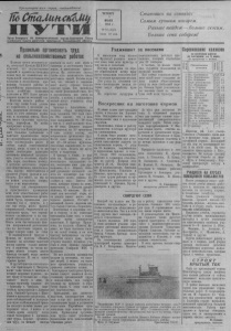 Пролетарии всех стран, соединяйтесь! Становись на сгнокосг Самым лучшим косарем. Раньше выйдем — ■ больше скосим, Больше сена соберем! % и районного Созета депутатов трудящихся Новосибирской области Ш СтаЛински1щ П У Т И Срган Северного РК Коммунистической партии Советского Союза ЧЕТВЕРГ 8 ИЮЛЯ 1954 г. № 51 (1653) Цена 10 коп. Парвильнороганизовать труд на сельскохозяйственных работах Ухаживают за посевами Подводя птогп весеннего сева, июньский Пленум ЦК КПСС отмечает, что осуществление партией и правительством ряда новых мер по повышению материальной заинтересованности колхозов и колхозников, проведение большой работы по дальнейшему укреплению сельского хозяйства позволили колхозам п МТС более организованно провести весенний сев. Колхозы нашего района в этом году также более успешно справились с весенним севом, расширили посевные площади за счет освоения целинных и залежных земель. Посеяно много силосных культур, льна, картофеля. На нолях прекрасные всходы. Вместе с тем Пленум предъявляет большие требования и намечает практические меры по своевременному выполнению всех последующих работ. II сейчас самый ответственный период, когда в одно и то же время необходимо проводить несколько кампаний: организовать уход за посевами, обработать пары, поднимать целину, в достатке заготовить кормов для общественного животноводства, хорошо подготовиться II провести уборку урожая и хлебосдачу. Дел много, но мы не не можем допускать очередности в их выполнении. Значит для своевременного и качественного проведения всех этих ответственных работ необходима правильная организация труда, правильная расстановка сил и средств. А у нас еще очень много фактов неправильной, безрасчетной организации труда, что отрицательно сказывается и на трудовой дисциплине и на делах. Взять хотя бы несколько фактов неправильной расстановки сил на заготовке кормов, которые говорят сами за себя. В полеводческой бригаде т. Попова, из колхоза «Память Ленина» на косовице силосной массы заняты только женще- ны. А мужчины, из числа ко торых можно создать целую бригаду косарей, ведут личное строительство. II это в такое горячее время. В другой бригаде этого колхоза, где бригадиром т. Чикунов, косят тоже только б женщин.А четверо здоровых мужчин... возят траву и столько же — сбрасывают массу в ямы. Да четыре мужчины средних лет — бригадир т. Чикунов, заместитель председателя т.Алексан дров, бывший бригадир т. Кыш- тымов в праздном настроении, в роли наблюдателей и контролеров около этой маленькой бригады женщин целыми днями раскуривают табак. А можно и не терять время попусту когда такой беспорядок в организации труда. Хорошо организовав труд, не мешает иногда взяться за косу пли вилы и бывшему и настоящему бригадирам, и заместителю председателя. На заготовке силоса также есть возможность иначе расставить людей. Восемь мужчин, что отвозят и закладывают массу гораздо больше накосят травы, чем -женщины по своей физической силе. Вот и организовать два звена на косьбу, а возить н закладывать вполне могут учащиеся старших классов. Бригаде т. Алешшкова, из колхоза «Заря коммунизма» надо заложить 500 тонн силоса. Это значит, что в день надо закладывать 80— 90 тонн, а там за 5 дней заложено только 40 тонн. Дневное задание выполняется на 10 процентов. И гоже только потому, что неправильн