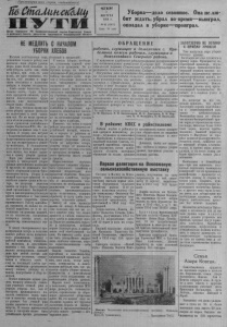 Пролетарии всех стран, соединяйтесь! Ш (ШаЛшшббЛш П У Т И Орган Северного РК Коммунистической партии Советского Союза и районного Совета депутатов трудящихся Новосибирской области ЧЕТВЕРГ 5 АВГУСТА 1954 г. № 62 (1661) | Цена 10 коп. ; Уборка— дело сезонное. Она не лю бит ждать, убрал во-время— выиграл, опоздал в уборке— проиграл. НЕ МЕДЛИТЬ УБОРКИ Настала долгожданная пора, л р е е д ш е а л ю ь щ ц а а я -по го р д а ов у у б ю орк р и або у т р у ож зе а м я . Перед нами стоит большая за- дача-убпрать хлеба так, чтобы не пропал, при этом, ни одпн к б щ ы о е л н о в о с с , е, п н о п ч с т т о о у д п н и о л п о ос з е е в я р н н о ы к ш о и к л о хо , з в ч н ы т ы р о е а амбары, в закрома государства. Хлеб—наше богатство. Будет больше хлеба, будет больше в шщ с и и е т х х с с я я п , ро б д е л у щ к аг т е о о с в ос п т м и о о я т г н а у н и щ е и е я с , тв т е у р н л у н у д е ч я й станет наша Родина. в н м е и о с и т Д и п л в о я д с у г ё б т о . о о т р о г Н к о в о , у ит ч ь н у т е р о б к о ы в ж е а з э в я т д о е о - в й р н п е е р м о о к б я я х а о м в п д л р п и я о а е ст т а с е я т об с э р т е о м м он д т о о л м жна к я ом з б аб ай о н та о . во О г т о с п т а е р р к с а ки Т х ар н т е ас в с ы к ш ая ли МТ е С щ . е И 7 з ко м м а - байнов. В уборку они вступят б с у б д о у л т ьш пр и и м ня о т п ы оз с д р а о н ч и н е ы м е , м ес е л р и ы. н Д е о с т и у х м п о о л р от н ил е о п к р . ист В упил б и оль к ш р и е н м с о т н в е к с в т о а и л ть хо к з ж о а с в т р н к ы е и в , у н ч ач то а у л б и м ор о к ж р и е е т мо у н п р т р о и ж и р в а о е я . с у т р у о п П ж и о а т р я ь а п к р у о ж ст е в е ы й б ш о н и р е м о м ч и е н д о м л й е а н ш н и о у н б а о м п р и р ке ис н и о и в з в о о р г в о у а ч н с н н о у о з ю р н е , а в н ч а а е н т и ь д я ож х у л и б е д о б а р о я к в с у . ь О и р м г а а п с о каждой культуре провести её в н т а е и р б ь о , лее не сжа д т о ы п е ус с к р а о я ки и п бе е з ре п с о т оя хлебов на корню. Надо с первых н д у н ю ей и ор в г ы а с н о и к з о о п в р а о т и ь зво б д е и с т п е е л р ь е н б у о ю й работу комбайнов и тем самым значительно сократить сроки р з п п о а р о н л о н в н о о е е ц д й н е е и н н ю и в и ы в я а р и т е а ь ё м б . о д т н Р н к е а е е б в , т о н н о т ы о л у х ь к к и о о за м п д б п о а а о н й и н в с й ы е е , не но количеству скошенных гектаров,а прежде всего, по н д к о о а т л . в В и р ч а е ц щ с е т е л в н я у и х я н с п а в о м о т е о е в л р р о ь е ч м е в н е н н к н о о г о л о г х о о з з п е а р р х е н но аш го его ув р л а а й ж он н а ен и ия з- , за повышен наряду с р н а о бот в о к й лю к ч о и м т б ь айно и в, п о р б о я с з т а е т й е ш ль и е м ма а л ш ь и н н о ы и с сп т о е л м ь , зо ч в т а о т б ь ы ка м ж а д к ы си й день при любой погоде для в п а р н о и в я еден и ия о к б о м с о о л в о и т ц а ы, хл с е к б и а р . доВ с с в л т я е ы з д к м у и за м с а к н ш о о с и п о н о в а в и м , ц и ей у о к р х л г л а а е д н б к и о у з в ов п а и р т х ь ов к л о о п с О ь н е с ы о в , б . о п е од в г н р и е м б а а н н и и е е н и уж сб н о о р у к д о е л н и ы т х ь у в ч о а п с р т о к с о у в об о м зи о м ло о т й а р с ж ем и енв первую очередь так, как от б м си ы о т л ст о р т и о а т к ы с а е ч м е е с п н т р в н о о о и г з о в п е о д с е з е е н в р н а н о а г б о уд з у а щ н ви а е го урожая. Сев озимой ржи нужно закончить не позднее 20 августа. И только проведенный посев в эти сроки может быть устойчивым против различных С НАЧАЛОМ ХЛЕБОВ болезней п вредителей. р м п о о у л , с ь С к у а с т з н т ь а а а ч н а е п о л ё о в а т и е к т р а ь ь у ч б ес о с т р н т в к р