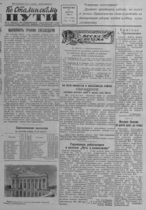 илгилшлол I . и \ у о \ Пролетарии всех стран, соединяйтесь^ Ш СпшМтск&Аш П У Т И Орган Северного РК Коммунистической партии Советского Союза и районного Совет-а депутатов трудящихся Новосибирской области Товарищи колхозники! Дружнее организуем работу на полях и токах. Привлечем все силы и средства на быстрейшую уборку хлебов и сдачу зерна государству. ВОСКРЕСЕНЬЕ i 22 АВГУСТА | 1954 г. № 67 (1666) | Цена 10 коп. • ВЫПОЛНЯТЬ ГРАФИК ХЛЕБОСДАЧИ пил В и се в кол у х б о о з р ы ку ра у й р о о н ж а ая. вст В у о многих уже комбайнами н ты ы д с е у с ш я и тк л и ки ге з к е т р а н р о о м в, . за А гр в у с о ж ж т е а к сдаче хлеба приступили лишь 9 колхозов. Сдают зерно на н п и ун н к а т , и се м л . ь К хо р з у а п р с т к е о л й и , им « . П К ам ал я и ть Кирова», «Заря коммунизма» п другие. Большая же половина артелей не приступила до сего времени к выполнению своей первой заповеди. д д н ол е К в ж н а н ы ж ы е ды з й с а в д о а к е н о в и л р я х е о м з и ен и н э м т о и е , е з т а в да п с н я р и т о я и к выполняться с тем, чтобыне допустить задержки расчетов с государством. ^ в с ы д п а З о ч а л и т н , я е ж н а и к я з у нач с ит г н р а с а ч ф а о л и т о к с м а тава х н л э и т е е о б м й о ^ пятидневки ничем нельзя оп- равдать. Комбайны работают, зерно есть, достаточно автомо- О бального игужевого транснор- Д та. Дело только за тем, чтобы # обратить самое серьезное внп- у-" мание на организацию очистки к п п то а е р х с о у с г е ш х о й л к е ч в и б а о о с с з м д е а н р ч — о н и т г а о о . м и з Т в з о е у а к н б в о и о и , р си к о т и с т у . ш у и к с л о ж ш вс е и е н л Н и к а п я а д р , о х о ц ч б д е т ы о с о б с л б ы и ы и т , ь н с м я а к е а х к т т а о а н к к и э а о з т х г и о о р о и е в с п а т о н ь с л ы у о в артелях им. Крупской, «Заря коммунизма» и других. б м о о л ж е н е о , ст ч е т й о к к аж э д т ы ом й у к м ол н х о о г з о, п В м т с о е з м е р т ы. св С о у ю ши э л ле ь к щ т и р к оста д н о ц л и ж ю е , н м б о ы т т о ь б о о п в ы а т т н ел ы ь й н , ый зн .- аю На щи о й чи д ст е к ло у и зер тр н е а н по ы с х тав к и о т л ь хо н з а н и и б к о о л в ее т и ру ч д т о о с б п ы осо т б а м т л со р о м у в д о и и л я л ь , и ц с ы ь , до с к в о о о з м д д м и а т у т ь н ь ист з и а ы м да в н с и и е я ко у м д с о к п а ы жд л о ю го дей то . к И а, то д ги о к р а а ж б д от ой сле г д р у у е п т подводить ежедневно, поднять з д с а к а и а . т н ь И те с р п о е о б с л е о ь з в л з а о и н в ч н а к т о и ь сть в в , се оп и н л м а е т е е ю д щ т о и р п е у у ся возможности увеличения1 пропускной способности токов и сушилок. Не менее важное значение м и н м ы ал е е ь ю н т о а п в н е т а р о д е м о в а о ш з н к и а и н г ы р з у е з р и н т и а ь . к м М о а а л ш к х и с о н и з ы о ав н то с к п о е л ц о и н а н л ы ьн , о посл д а л н я ные от в гр р у а з й ки хлеба на пункт Заготзерпо. Нельзя сбрасывать со счета и б х и р о и з ж е г и а З в д н а о ы г а е о д . о т т о я с в г о и л з т д о е а . л т ь ь В ны тр й к а а н ж с д п о о м ртн к ы о е лаппарат должен строить чётко свою работу, поставить дело так чтобы у пункта не было ни малейшей задержки. У нас есть все возможности к дар д с о т с в р о о м чно по му сда р ч а е сч х е л т е у ба. с г Д о о с л у г руководителей колхозов и МТС б д — и и т т е у ь л м с ь я е н л о о м ст а р и к а с с и с м к т а о а л м в ь и б н т а о й ь й но с в и п , л р ы о у и , л зв у д о ч о л н ш и ы и т е т ь ь ор р г а а п б н о о и л т з у и а т ц и п и ч а и ес т к о о у б к ю я а з х а . н П ы а р р а у т б и о си т й у , руководить социалистическим соревнованием. Сор