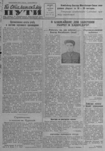 2 ПО СТАЛИНСКОМУ ПУТП 30 сентября 1954 года. * Н. А. Островский 29 сентября исполнилось 50 лет со дня рождения Н и к о л а я А л е к с е е в и ч а Островского, замечамльного советского м гр у а н ж и д с а т н а, ской акти п в в и о н с й о а н т г ы о ел . я уч Р ас о - т д н и и к л к о с а м я в 1904 году в селе Вилия, Ост- б с р к е о р и ж н й с и к и о у . г ч о С аст у 1 в е 4 у зд е л т а е , т В Н в ол . г ы р А а н ж . ск д О о а й н ст с р к г о о у в й войне на Украине, становится бойцом знаменитой дивизии Котовского, а затем —Первой К ж о е н ло н е ой ра А н р е м н и и и е Б и уде н н е н и о зл г е о ч . им Т а я я болезнь (окостенение суставов и полная слепота) навсегда приковывают его к постели. Но пламенный коммунист Н.А. Островский не уходит из строя а ст к в т о В и с в ю н ко ы м х с м во у б н ю о и р з ц с м о т в а р . а з с а тн с у т ю рои л т ю е б л о ь в ь к социалистической Родине Н.А. Островский вкладывает в роман «Как закалялась сталь», который стал самой любимой книгой советской молодежи. ски С й во с и л м ужи т т ворч п е а с р т т в и о и м , н О а с р т о р д о у в , воспитывая в подрастающих поколениях безграничную преданность -идеям Ленина- Сталина, непоколебимую веру в торжество коммунизма. Смерть недала Островскому завершить работу над вторым романом «Рожденные бурей», первая часть которого хорошо известна советским читателям. Умер Н.А. Островский в 1936 году. Больше металла с т р а н е В апреле этого года с р т а н зр а а я бо з т а а г л о а тов у и с т л е о л в ь и н я ая но кон с т б о о о р б р а л у ас м г р о я о е н т е а р ш л а о к й л т о о о л н т в . а е ы с М к п н о о е н г л о о н г о и е с н е л т о а и м л я ш и а к с э о у ь т л ч о ы а г в щ о н и а м с ш м и т е е о р р е о в п н р о и в я а т н и и я е и по вк с л б ю о ч р и у лис м ь ет в алл со а. Учащиеся Северной средней и Верх - Красноярской л и е з тн у е с й ло ш ви к й ол сор вы ев п н о о л в н а и н л и и я с и о е д м н з и а о с н д ы а е нн п ы о й дар м к е и та . л С л ев п е о р л н у а ч я аю с т ред ц н е я н я школа получает комплект струнных инструментов, а с В к е о р е Ц х е з н н - н ам ы К я й р д а р с у н ж о п и я о н р ч ы с и к . н ая— уч п а и щ он и е х р с я э к т л и и х к ш и ко в л д д р о у л г ж их ен к н о а л й л т е и ктив о а т х школ, в пионерских щ с м о о и м л е о ь с л я с ь к ц и д ы х о , лж о п р н и г ы о а н н е и р з в ы а к ц л и ю и я ч х и в и . с т е ь к с о К я у м ч о с м а о в Вечер, посвященнЫй памяти л со о р м е а в . п нов и анс иеа по т се бо^ л у я металло «Самое дорогое у человека— это жизнь, и прожить её надо ж т н а и о к т , ы бо е ч л т ь о г н б о о ы ды з , н а е ч б б т е ы о с л ц о е б л ы ь м н у н о ч е ите п ж л р ё ь о г п но о е з Ж ор п и р в з о о а й ш п л П о о д а е в л .. к е .» а ньк в ое бу и ден м о е в л к о е чс красной звездой, в шинели, « з в а е м р и н , ая о б зо р р о н са ы е м т и чёр э н т ы и ми г я л р а к ие слова в зрительный зал, где застыли ребята в пионерских галстуках... В Северной средней школе идет сбор, посвященный 50- л л а е я тию Ал со екс д е н е я ви р ч о а жде О н с и т я ров Н с и ко к г о о — советского писателя-комму- н ет ист п а и . он А ер ж В ив ал ог я о А В л а е в ш ку кин и , гр н а о ребятам хочется верить, что это Корчагин говорит, учит их жить, бороться и побеждать. Учительница литературы С. 3. Опалькова рассказала ребятам о жизненном пути Островского— пути, который я за в в л е я т е н т о с г я о, ярким сам п о р о и т м ве ер р о ж м енн б о е г з о служения советского писателя д и а н . те О р б еса э м том гос ж у е да р р а с с т с в к а 