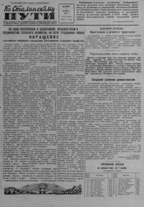 Пролетарии всех стран, соединяйтесь! I -------------------------------------------------------------------------- -- . ЯбСшМшскбЖц П У Т И Орган Северною РК Коммунистической партии Советского Союза и районного Совета депутатов трудящихся Новосибирской области ЧЕТВЕРГ НОЯБ 4 РЯ 1954 г. № 88 (1687) Цена 10 коп. Работники сельского хозяйства! Добивайтесь высоких урожаев всех культур! Неустанно бори- тесь за развитие и укрепление зернового хозяйства! Развертывайте социалистическое соревнование за дальнейшее освоение целинных и залежных земель, за высокие урожаи в 1955 году! Дадим стране дополнительно сотни миллионов пудов зерна! (Из призывов ЦК КПСС) КО ВОЕ! КОЛХОЗНИКАМ И КОЛХОЗНИЦАМ, МЕХАНИЗАТОРАМИ СПЕЦИАЛИСТАМ СЕЛЬСКОГО ХОЗЯЙСТВА, КО ВСЕМ ТРУДЯЩИМСЯ РАЙОНА НАВСТРЕЧУ ОКТЯБРЮ Приступили к ремонту тракторов ОБРАЩЕНИЕ УЧАСТНИКОВ РАЙОННОГО СОВЕЩАНИЯ ПЕРЕДОВИКОВ СЕЛЬСКОГО ХОЗЯЙСТВА т с е е л л Р ь ь е с с т ш к в о е а г н о и п я о хозя п к а й р р у с т т т и в о и м а у пр и о п н о и д п ъ к р н е а м у в - у иг тг о л со в с е т л о и я ч н а и й и ше с й ове з т а с б к о о то го й н о ар б о л д а а и направлены на дальнейшее упрочение колхозного строя, на еще большее процветание нашей Родины. с р к а о л Р г ь о е с ш ко П е - н л м и е а н е р у т м с о е о в н в с т к я о Ц б г К о рь К ск п П о С г С о и , ю в ф ы н е ь з в , в е а м л М и с ы ре н , д е и бы у в т ч а р а л у с ы т д й н я и щ т к р и и у х д с о я в . о р й ай п о о н д н ъ ог о > с с р о к е в о н е г и щ о е а м ни х о о я т з м я е й п ч с е а т р е в е м а до т в е и с к у о с у в п д е о х в и л се , ет л к в ь о о торые-достигнуты и развитии к хо ол зы хо : зо « в За и ря М к Т о С мму р н а и й з о м н а а. », К и о м л . Калинина, «Память Ленина», им. Крупской, «Новый путь», «Путь Сталина», «Красный О м к у т » я , бр и ь м » . , В « о П р у о т ш ь ило к ва к , ом «Б м о у р н ь и б з а за мир» и другие вырастили богатый урожай всех культур, успешно завершили уборочные * д л д р р р и а я а р у ч б д с г е о к т и с е т в т х ы о в м з , о п а р к р х п о а у л о д с п е с у а б ч п к , а и т о о с т т в а п п а , л о в р и к л о б с а у д о ь м ч а л и л ь с а в ш х л о в е е б г б а о к о п о с л о у и ь ч з ш о а и в с е в э е т д и д у е т н и еж о р ч н я и д ы с е тк д у р д у о г и х и о х ды за . с к ы о С п л е х к й о у т се ую мян, зи г м о о то в в к я у т т о е б п щ лу е ю ствен и но с м ы у с ж к а о й ту б , уд го ущ то е в г я о т з г е о м д л а ю , р п а о с д ши у р р я о я посевные площади. ни Д к е о с л ят хо к з и ни м к е о х в ани и зато к р о о л в х , озн со и т ц отдичио потрудились в этом году. Высокой выработки билась тракторная брига д д о а А. И. Фулавкиной, вырастив б н п о и о г л а а у т б ы р и й а н в и у ц р е и о г а ж о т . а о й ро Б м р и иг с а в с д о о а е р в е р в в е ы н м о с е в т н а у в н ст с и п ь я ю аш н к д а и ер п ж о з и я д б т ъ и ем св н е о а е 1 зя с б н л и о ов я о б и : ря с пл д а ч а н е леко перевыполнен. Бригадиры тт. Архипов, Данилов, Байда- гулов, работали Т д а о рас 8 е 0 н 0 ко и ге д к р т у а г р и о е в вы на условный трактор. Высоких показателей в труде добились трактористы тт. Туганашев, к Л о е в щ а и , н М ск и и х й ал , ев А п н ч д , рее Н ва и , чк П о о в з , дн З я а - камский, Краснов, Зарубин, Павлов, Будимо и другие. Самоотверженно работали на у н си б ер о в р ш к р и е а й й х о 5 л н 7 е а б 2 о В в г и е к л к т у т о ч а р ш ра и С й м и ы к к н о , а м м б с о а к л й о о т н р и о о в в г ш ра з и д е й о р в н , о а к , о к л Е о о . мб 9 К ай р т н е ы е с с р т я ы ь ч я : н ц о Н в е . н , т В н и еК. Усов, А. Смык, В. Прокофьев, Н. Нешатаев, Е. Довг