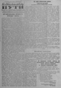 Пролетарии всех стран, соединяйтесь ¡ Ш У Т И Орган Сеье?но;о РК Коммунистической партии Советского Союза и районного Совета депутатов трудящихся Новосибирске», области ЧЕТВЕРГ , 25 НОЯБРЯ 1954 г. № 94 (1693) 1 Цена 10 кои. Ко всем избирателям района ОБРАЩЕНИЕ УЧАСТНИКОВ ОКРУЖНОГО ПРЕДВЫБОРНОГО СОБРАНИЯ Дорогие товарищи! С большим .подъемом и| Товарищи избиратели! У советского парода единодушием трудящиеся Российской Федора-1 есть благородные традиции: каждое событие ции выдвигают кандидатами в народные судьи ¡в нашей жизни отмечать'не только идейным п народные заседатели своих лучших сынов и организационным единством, но и успехами и дочерей, активных строителей коммунизма, в нашем хозяйственном строительстве. ПоэтеОРГАНИЗОВАННО ПРОВЕСТИ ЗИМОВКУ СКОТА В своих решениях партия и ш с п т р о в а е е в н и в н т н о е и л го м ьс а т н в и ж о е ив р у о а д т з е н в л о и я в т ю и о т д ю ств о б а б о щ л е ь в к ш зя о и й л х с х т о в за а о х . т , р Д а к л с а л я к ей в о ы д п но о с й л е н л и е ь з н с и к в я о аж го н эт е о х й й о з р с а т о д е м а н ч с ы и е т г е о в м с о у з н д м у а о ж р ж с н н т а в о о с п т о и с в , о с з е l д д i а o н е е т вн в о а м я г е , н н е ы осла р б у н к а о я води за т б ел о е т й а со колх ст о о зо р в о , М ни Т к С С о е , в й . ч со ас ст в ор ж о и н в ы от в н с о е в х одс к т о в л е хо са зм ло о в е ы о й тве п т е с р т и в о ен д н . ое О в т р т е о м г я о — к с а т к ой о н будет организован, зависит с ш о е х н р и а е нен п и р е оду п к о т г и ол в о н в о ь с я ти п с п к о о в т ы а . Председатели колхозов, к т и ийн ф ы ер е м о д р о г л а ж ни н з ы аци по и м , ни р т а ь б , от п н ч а и т р о продуктивность общественного ж ш и а в т о ь т с н я ов д о е д н ст ь ва ото д д ол н ж я. на К п э о т в о ы му есть все возможности. Есть в колхозах грубые п сочные корма, засыпано достаточно ц ф е у н р т а р ж и а р , ов м ан о н ж ы н е о к п о о р к м уш а. ат В ь сё к э о т н о надо только-ио-хозяйскп ходовать, задавать животн р ы ас м т л с о о е в н г л л и е а я н с н н о к о м ор р м в а о и ц в д и е о . но п Д в о л чт я п и п в р в и о г п о р т в и о с г в е о х л к и о ч л н х ы оз е ах м р а а ш йо и н н а ы: име з ю ап т а с р я ни р к а и з, измельчители, мелышцы и т.д. Во всех артелях свои т д р ол о ж ст н а а нц п и р и и , во э д н и е т р ь ги в я д к ви от ж о е р э н л ы и е е х к всю эту богатую технику. в м и а н В ы к д н а е е ж к о д а б о б х м р од я и к м в о с о л е хо г з р в е у ы б в д ы е о з е ти п к о о л р о к фермам на склады. Решением н т о е б и л л к ь и с с п т п о в о у л п к о и о д м во р а з е к м о е о б к н ъ о т я р у в м л о с е в к н , ото с м т п е р о с о м я и е ч - щ д б и а е т н з и а й м . м ес и О я р р ч » г н . а и н к С и к з в о о к в т а о н л р н х а о о з з м е ещ « п Б е р н о о р хо ь в х н н о о ы р м о к ши ф т х е р р а п м н о а с м м по е р щ т т р е о а н м к и то я р х о , п м о е д ж в е о и д з н и к е т о в с н я по 300—400 центнеров сена и соломы. За пятую пятидневку н та ояб п р о я две к зен м о ест б а о м лее ст т о р ян ех ок ты с с к я о ч центнеров. В сельхозартелях им. ской, В в оро б ш ол и ь л ш ов и а н , стве им. б К ри р г у а п д колхоза «Путь Сталина» т ж у е и уд с е т л р я ои ет т с е я льс в т н в и у ма п н о и м е ещ р е е н м и т о а й н к , подвозке кормов к фермам. Но не везде проявляется хозяйская забота. В колхозе л « е Н н о ы вая ск ж о и т з о н п ь о » мещ н е е ния. подг З о д т е о с в ь п д ли а р т а е в з л л и е е м м н ы и т . е . К в Д р о о у л г г о о л т м а о в в е ым с с кв н о е з п и р т е ж д д с а в е о все щели, в о