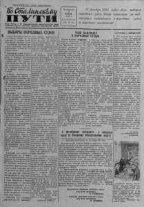 Пролетарии всех стран, соединяйтесь j ШСшЛшш&иц П У Т И Орган Северн о РК Коммунистической партии Советского Союза и районного С ета депутатов трудящихся Новосибирской области 12 декабря 1954 года—день выборов народных судов. Шире агитацию за выдвинутых кандидатов в народные судьи и народные заседатели! Понедельник 29 НОЯБРЯ 1954 г. № 95-96(1694-95) Цена 20 коп. ВЫБОРЫ НАРОДНЫХ СУДОВ I с ч н к е о р н г У ы о е к с а е С в з н ы о о ь в б м е е о , т р П а ы 1 р 2 е н з Р д а и С р е д Ф к о и а д С у б н м Р р ы а я х , В н н с е а у а р д з х о н о в в а в . о х п в о о е д л т Э и и с т к т т а и и х ч в е в с а л о к ж ю б о с н д й т а е а й я н . а о к в к т к а и е м в п н р а о н а ст с и т и я ущ п с е р о й о * Трудящиеся нашей области, р к а а ц к ии и , в с сей бо Р л о ь с ш си и й м ско п й о ^ д Ф ъе е м д о е м г т с о т е в т л о о ь м н в ы ят й К с о я м де м в н с у ь т н . р и е с т т и П и т о ч ь д еск з о р н й у а к м о п е в а н о р а д д с т т ы и в и а н и а од ф С е р о р о в ж н е а т т н е с ы ко м г б о и о р л н ь п ш ог р и о а е ви с п т т р о е о б л и е ь тельства. Успешно претворяется в ^ясизнь намеченная партией н пр т с а т о в г в и о а т . п е К л о о ь д л с ъё х т о м в з о а ы м се и л п ь р с с о о к г в о р х г а о о м з м ы х а о о к з б р я л у й а с л т и и п з л н ан ачи з те а л г ь от н о о вок пер и евы з п а о к л уп ни ок хлеба и своисоциалистические обязательства. Советский суд являтеся ч н м о е о ск щ о о н г х о ы ра м г н о о я р с ю у у д д щ и а и е р м м ств с а о , з ц а и в б о а д е л и в и т а с е н т л и и ь я социализма в нашей стране. ж с С к о е о в г е и о т н с т к г е и о р й с е у с д о с а у в р д ст с в т с а о о , и ц т и и а н н л а т и е с р т с е т и с р ч о а е в |?арода. Он призван защищать от посягательств щ ус е т с р т о в й е с н т н в о о е и н г а о ш с е у й дар в с р т а Р в г о е о д н в и н н о о ы е б , социалистическую .систему хозяйства и социалистическую собственность, н ск ы и е х К г о р н а с ж ти д т а у н ц , ией г п а р р С а а в С н а С т Р и . р с о о в в а е н т вос В у е д л и и я ка в ро к л о ь м с м о у в н ет и с с к т о и г ч о ес п ко р м а воспитании трудящихся. Наш суд воспитывает граждан в духе н ш и е я ни з я а к к н о н е н у а о р к в о л , д о н н б о н е м р ог е у о ж д н о о с г в т о о ы я п н о о и т л н ю н о , е н в н в е о и н г я д о н у о х д м о е и т у с н ц с о и т ш п р л е о н и ж и н а я ы йше к т г р о г у о д с с а о у , б д л а ч ю р е д с с т е т и общественному м до о л к С р г о у а в . т е и т ч с е к с и к й ий су с д уд —са в мый мир д е е . в Н ы аш ва е ет с с у я до н п а рои д з е в м о о д к с р т а в т о иче о с с к н и о х принципах Конституции СССР. Ни служебное положение, ни социальное происхождение, ни н н н н и а а и д ц я и л и в е о д и ж н л н а я н о л о в ь с с н н т у о а ь д с я а т и не и и п и р р м а м и с е е ю о р о в ы т п а р я з н е н д а п а е к р ч л а и е е - зания. Рассмотрение всех дел в тых суд за а с х еда п н р и ои я с х ход с ит в уча о с т т к и р е ы м м с ю к н у л о а т д т ю р с ь р о я ч и е д е н н л н н ы и и н ы ш е е х х м з ь а з в з а з и а с а с к с е к л и о д о у м н а н ч о ы т а у м е е . л . и в е , С й о п , в о п е д з р т ч а с е и к д н и и у я с е с Советский суд —подлинно гнародный суд. Он выполняет волю народа, выраженную в законах. н уч о а ст ст ь ии про т х р о у В д д с и я я т щи п х е р с го я и , ак д т п е и о я в т д н е о и л м х ьповседневным контролем. В этом состоит принципиальное, коренное отличие советского суда от суда буржуазного. Согласно Конституции р в С а е С ю С в т Р с с , е я о н б г а щ р р е о а г д ж о н д ы а , е н п а р м я с и м у о д г ы н о а и о и 