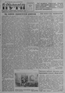3 £ <1 ц м 5 у о 5 $ » 4 з I I I I * Пролетарии всех стран, соединяйтесь!\ Орган Северного РК Коммунистической партии Советского Союза и районного Совета депутатов трудящихся Новосибирской области Под знаменем Советской Конституции наш народу руководимый Коммунистической партией, уверенно идет вперед к новым победам в строительстве коммунизма. ВОС Д К Е Р К Е А 5 С Б Е Р Н Я ЬЕ 19 4 г. № 97 (1696) | Цена 10 коп. I ПОД ЗНАМЕНЕМ СОЦИАЛИСТИЧЕСКОЙ ДЕМОКРАТИИ Пятого декабря 1936 года Чрезвычайный VIII Всесоюзный съезд Советов принял новую Конституцию Союза Советских Социалистических Республик. Э ем то С в о б в ж ы е и л т о з с н к и и вы е д н а а л юш ю щ е д г и и о мс н я п ар о с о д о д б а ы . р т у и к оводством Коммунистической партии первыми во всемирной а и ч л е с и т ск о зм р о и е а и о п б п р щ о и с в е т е с р т л о в а и о л . и к П с о о л б ц и е и к д в а а и л д и с а с о ц т ц и и и и к э р о к а м б сп о , л т н и у а а ц в т у с а , е ц г н и д и и а щ ч е у е т н л у и о ч в т и е о к ж р а а и з л ч о е а р л е о б н в е и е з е трудящихся, принесла народу к н с о т о р о г е о я н н н и и о я е . к у В у л л у ь р ч т е ш у з р у е л н н ь о и т г е а о т м е ате б р п л и о а б а г е л о д ь с ы ом с л о и о ц с ч и т е ь а с л к и а н я з а м ро а и до п к в р у , е л у о ь г д н т о у е л р т е а н н в а а ш я и э х о к с т о я с н т о а в д к ц ч н и е е а а е р е р с р с к а н т м о з е в й в н п о е о р р г - е Р С н о о о н у С д с л а о С с ц и л и Р и с и и ь . о м , н ы В а п о е л к н ь р о а н е к ш о п д р е е л в е й о и п л ж и м г у о с щ о т с г т и р у у а е а силы советского общества, как м во о , ра д л р ь у н ж о- б п а ол н и а т р и о ч д е о с в к , ое сов е е д т и с н к с и т й патриотизм. д ск а и В е в с о е с п е о м э б т н е и а д д ы ца в с т с о ь е в м е и л т е с р т к н о о н г - о и аз с а т д о н р а б и р ы ч о е ли закреплены в Конституции ш т С о С е й г С о Р со с ц — о и ц а и л к а и о л с н и т с з и т м ч и е а т с у к ц о и и й и р д п а е з о м в б о е е к р д р н и а у в т л и а и. то К т онс в т се и м т и у р ц н и о я -и о ст з о н р а и м ч е е н с о к в и а й п ф и а л кт, в что но С в о у в ю етск п и о й ло С с о у юз с в в с о т е у г о ч р н е а и с з я к в о и с г т т о и р я о о , и б т щ в ел ес ь п т с о в т л а в о а су с и оц п и з о а а с л в т и е е с р п т ш е и н е ного перехода к коммунизму. Построение социализма в стране—результат выполнения л з в а и л в к я е о ю т й щ ов е о й р Л г е а д н н е и я и т н з е у а л ю , ь щ н р о е е й с з т у и л н ьт К а н о т а м п м р в у а е нистической партии, результат героического труда рабочих, к н л р о и е д т с у и т ш к ь у н я о н п , а п р и о т д н и д т и е е . л р л ж С и и о г в в е а е н ю т ц с щ и к и и и , х й ед п н и о а м ро ун д и н с ы т н и е чес у к ве о р е енн о о бщ ст е р с о т и во т ко п м о д с р т р т е у о о л к л в ь о ь . н в о о К д о К с з м т о а в м н к о у с р м т н е и и п т и с п т у л а и ц р а ч и т р и е я у с и к к о о к з й в о а о м к п д м а о я р щ н у т н о у и и д ю иав Советском государстве как передового отряда трудящихся м н вс и а е з с х м с , о в к р а г и к а х ни р б з у о а к р ц о ь и в б й о е дя т щ р з е а у г д о ящ ко и я м х д м с р я у а л в — и е н з В м н о е а ы б л , щ и х. з к е а с и п т е в и е с н ан н п н ы р ы и х н е ц и в и п г С ы о о с в у е д т с а с о р к ц о с и т й а К ро о д н у стит р у е ц а и ль и н , у о ю беспечивают на возможность ч н л е е о р н е е и ,р з и еш С го о а с в ю у е щ д ты а е р е с п т у р в ч и о а н м с и т . м и В а е т в ь Со у а в п к е р т т и а а в в х , составляющих политическую основу СССР, великий Ленин открыл новый тип государства, неведомый ранее, 