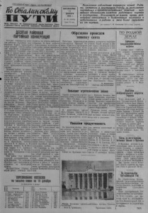 > 1,А)£^*ШР.Ца вс*х стран, с р е д и н ________________ Неуклонное соблюдение интересов нашей Роди - ны, активная и неустанная борьба за выполнение партийных и правительственных решений — пер• вейшая обязанность каждого работника партии и государства.. Коммунист не имеет права равнодушно относиться к болезненным явлениям и недостаткам в работе, а тем более скрывать их от партии. (из доклада Г. М. Маленкова XIX съезду партии). СпмЛинск&Ми 2РпяйпнСн п г^ Г Г0 РК Коммунистической партии Советского Союза и районного Совета депутатов трудящихся Новосибирской области ВОСКРЕСЕНЬЕ 19 ДЕКАБРЯ 1954 г. № 101 (16100) Цена 10 коп. I » \ J ДЕСЯТАЯ РАЙОННАЯ ПАРТИЙНАЯ КОНФЕРЕНЦИЯ Сегодня открывается десятая районная партийная конференция. Период, прошедший после восьмой отчетно-выборной партийной конференции, знаменателен большими событиями в жизнп нашего района. Партией и правительством намечены грандиозные мероприятия по крутому подъему сельского хозяйства страны, которые с честью осуществляются тружениками колхозной деревни. Большая работа но выполнению исторических решений сентябрьского, февральско- мартовского и июньского Пленумов ЦК КПСС проведена и нашей партийной организацией. В этом году на основании передовых агроприемов почти во всех сельхозартелях получен высокий урожай зерновых культур, картофеля и овощей, своевременно колхозы рассчитались с государством по хлебозаготовкам, сдав зерна в два с половиной раза больше прошлогоднего. Такие колхозы, как им. Калинина, «Заря коммунизма», «Память Ленина», «Новый путь» и другие продали в порядке закупа* по 5—8 тысяч центнеров хлеба и приобретают сейчас автомашины, оборудование, расширяют электростанции, механизируют животноводческие фермы. Ряд колхозов встречают партийную конференцию хорошими показателями в животноводстве. У нас выросли десятки передовиков колхозного производства, знатные механизаторы, которые с любовью относятся к порученному делу. Всем известны имена* комбайнеров В. Смык, Н. Виноградова, В. Прокофьева, знатных пастухов И. И. Драган, А. Ф. Романова, конюха Н. П. Волкова, доярки 0. Р. Демчихи- ной, трактористов 0. Поздняковой, В. Туганашева и многих других. Наш район стал районом сплошной электрификации и радиофикации, что позволяет облегчать труд колхозников и поднимать их культурный уровень. Положительные стороны в нашей работе отмечали коммунисты на отчетно-выборных собраниях. Ио были вскрыты и существенные недостатки в перестройке работы партийных и советских органов, недостатки МТС и отдельных руководителей колхозов. Мало ещё райком партии ведет воспитательной работы с секретарями партийных организаций. Орготдел нс проводит достаточно семинаров. Отдел пропаганды и агитации (его бывший заведующий т. Кирилин) по-существу не вёл агитмассовой работы, не оказывал в этом нужной помощи партийным организациям агитколлективам. Далеко недостаточно работала группа докладчиков райкома. Редко выступали члены бюро, некоторые инструктора, секретари райкома с лекциями и докладами перед колхозниками и, бывая на местах, отдельные вместо воспитательной работы и помощи парторганизациям, занимались администрированием, устраивали длинные и часто бесполезные совещания. Такая критика была в адрес секретаря по зоне Тартасекой МТС т. Демчук. Машинно-тракторные станции не в полную меру сил и воз