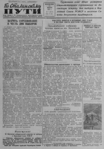 Пролетарии всех стран, соединяйтесь/ ШСтаЛшш£кЩ} И ^ Ч Г И Орган Северно,о РК Коммунистической партии Советского Союза и районного Совета депутатов трудящихся Новосибирской области ВОСКРЕСЕНЬЕ 23 ЯНВАРЯ 1955 г. № 7 (16110) Цена 10 коп. Труженики села! Шире развернем социалистическое соревнование за достойную встречу дня выборов в Верховный Совет РСФСР и местные Советы депутатов трудящихся. ШИРИТЬ СОРЕВНОВАНИЕ В ЧЕСТЬ ДНЯ ВЫБОРОВ 27 февраля— день выборов в Верховный Совет РСФСР, в краевые, областные, окружные, районные, городские, сельские и поселковые Советы депутатов трудящихся. В Советском Союзе выборы являются самыми демократическими выборами в мире, так как все трудящиеся имеют право участвовать в выборах органов Советской власти,«независимо от расовой и национальной принадлежности, пола, образовательного ценза, социального происхождения и имущественного положения, за исключением умалишённых и осуждённых судом с лишением избирательных прав». Подготовка к выборам в Верховный Совет РСФСР и местные Советы проходит в обстановке борьбы Ссветского Союза и возглавляемого им лагеря мира, демократии и социализма за мир между народами, за коллективную безопасность против поджигателей войны. Идя навстречу выборам, наш ■народ еще теснее сплачивает свои ряды вокруг Коммунистической партии и Советского правительства. Труженики села, благодаря повседневной заботе нашей партии и правительства с каждым годом становятся активнее и проявляют больше творческой энергии и инициативы, по дальнейшему подъему колхозного производства и ма териального благоссстояния трудящихся. День выборов в нашей стране народ встречает небывалым политическим и трудовым подъемом. Широко развертывается социалистическое соревнование, трудящиеся берут на себя дополнительные обязательства по выполнению и перевыполнению государственных заданий. Колхозники и механизаторы нашего района обязуются образцово закончить зимовку общественного животноводства и значительно повысить его продуктивность, хорошо подготовиться к весеннему севу и провести его в сжатые сроки, до статочно заготовить леса для производственного и культурно-бытового строительства. Механизаторы Тартасской МТС обязались с первого янНАВСТРЕЧУ ВЫБОРАМ В ВЕРХОВНЫЙ СОВЕТ РСФСР И МЕСТНЫЕ СОВЕТЫ ДЕПУТАТОВ ТРУДЯЩИХСЯ варя до дня выборов отремонтировать 25 тракторов Лучшие токари Михаил Прохорович Ивкин и Тимофей Слобод- чпков решили ежедневно производственное задание выполнять на 150 - 160 процентов при хорошем качестве. Комсомольцы этой же машинно-тракторной станции обязались в неурочное время' отремонтировать два трактора. | Колхозники сельхозартели1 им. Калинина выступили инициаторами социалистического соревнования на заготовке) леса для колхозного строи-1 тельства. Решено к 10 февраля заготовить не менее 1000 кубометров леса и вывезти его к местам строительства. Сиз ■ обещание они выполняют с честью: за десять дней,— с 10 по 20 января, заготовили уже 500 кубометров. Хороших результатов в социалистическом соревновании добиваются работники животноводства колхоза им. Кагановича. Так, доярки Мария Федоровна Новикова от каждой дойной-коровы, закрепленной за ней, в сутки надаивает по 10 литров, а на фуражную корову приходится по 7,5 литра.По 8 литров в сутки надаивает от каждой коровы Евдокия Нов