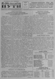 Пролетарии всех стран, соединяйтесь! ШСтаМышШщ Орган Северною РК Коммунистической партии Советского Союза и районного Совета депутатов трудящихся Новосибирской области Товарищи агитаторы! Шире раз- вертывайте агитацию за кандидатов в депутаты Верховного Совета РСФСР и местных Советов депутатов трудящихся. Изберем достойных людей. ЧЕТВЕРГ 3 ФЕВРАЛЯ 1955 г. № '10 (16113) Цена 10 коп. О Б Р А Щ Е Н И Е Навстречу выборам УЧАСТНИКОВ ОКРУЖНОГО ПРЕДВЫБОРНОГО СОВЕЩАНИЯ КО ВСЕМ ИЗБИРАТЕЛЯМ КУЙБЫШЕВСКОГО ИЗБИРАТЕЛЬНОГО ОКРУГА № 483 Товарищи избиратели! ц д и я и щ 2 и 7 б е у с ф д я у е т в Р р о а и с л з с я б и и й р 1 с а 9 к т 5 о ь 5 й де го п Ф д у е а т д а е т т р о р а в у во все органы государственной, власти, начиная от сельских Советов до Верховного Совета республики. К р л о ю д д н и ом г у от п о р в а я з т д с н я ик э у т с ом с у о о в гр е о в т м с с к н е и ы н е а м политическим и трудовым подъемом. в с И к е т н и о С н е г о и г г л о о ю в р ы д п д и п л о о а с н л т н а н ь а е п ю н р р и о а с й я з м в д о и е т н т г р н и о я ы я с т у й н д п а с а у р о р т о в с ь е д т . т ного хозяйства СССР в 1954 году, т р р ав ал л ь е н н ы ие м м оп с п у т р б а и л т и и С к с о т о в и в е а ч т н е е с н к ы М и е м ини Ц у с е т п н ров СССР,-свидетельствуют о н че е с у к к о л й он э н к о о м но р м о и ст к е и,п с о о к ц а и зы ал в и а с ю т т и , что пятилетний план успешно н н в е ы я й е п ш т о с и л я н х . яет о с т я р , ас а ле п й о р п я е д р у евы в п а о ж лчес В т п в е а рв в ые с в тр и ан ст е ори С и ове ч т е о л в ов н е а благо народа начала служить атомная энергия. и та сх Н од н а и ар т о о сн д н о н е в о п е г р о е н ры еу х в к н о л ы з о я й н й н с р о т о г в с о а т п н р р о а о с ц ш и е о е на п л о ь в н ы о ш го ени д е ох м о а д т а е , ри д а а л л ь ь н н о е г й о благосостояния н культурного уровня трудящихся. ч л е и с с Г к ь е о р й о т и р ч у д ж е е с р е к е н и в и н х к и и , усп п с е р о х е ц о т и в в а о л р и я д с я о т б и и в ж н ск и и и с з м т н и ь ч п е р р с а к а в з о и р й т аб е п л о а ь т р с а т т н и в н е о у й м ю и пр К о С о г о р м в а м е м т у му неуклонного подъема всех отраслей сельского хозяйства. Крупнейшим достижением социалистического сельского хозяйства является успешное выполнение заданий партии и правительства по освоению целинных и залежных земель. г в б е е ы р р ш Т о н р в е о в у с г к с о д к , о о о г в г М о о о , е и х р к а а В р й й а е л о к с о н т о в о ь в с в я с к н к о и с о г т г о в о , о , тр К у В у д е С й я н е щиеся города Куйбышева с з з а а к т о ь н , н ч о т й о го он р и дост т ь а ю кж м е огут хо с р к о а ш о п ны от й руд в и к л л и а с д ь и в вн де е л сл о и п д о о д ст ъ о е й м а сельского хозяйства, развития социалистической экономики и культуры. ят В п е е л р и е ч д еств с е о н в н е ы тс е ким зада н ч а и ро с д т о о м в 1955 году. Труженики з ст я и йст в ва этом Но г в о о д с у иб с и е в р л з с ь я к с л о к и й ог н о о а бл с х а е о бя почётные обязательства: освоить 550 тысяч гектаров целинных и залежных земель, д вы об х и н т а ься все у й рож п а л й о н щ о а ст д и и п зе о р с н ев о а м п л о у е ч н и е 1 е т 0 ь 0 2 в 0 п а 0 у л д о о м в в ы ил й л с и с о г б н е о к о р в та з р е а п р у н д и а ов п н . о е Работники животноводства дали слово получить надой молока в среднем на одну корову: и колхозах не менее двух тысяч, в совхозах не м мо е в н Т . е р е уд т я р щ ех иеся тысяч пр к е и д л п о р г и р я а т м ий Новосибирской области горячо поддержали патриотический почин передовых пре