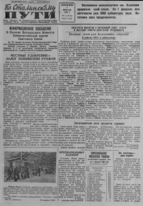 Пролетарии 1ссх стрлн, соединяйтесь! Ш С ш Л ш а й М ПУ Т И Орган Северно! о РК Коммунистической партии Советского Союза и районного Совета депутатов трудящихся Новосибирской области Колхозники сельхозартели им. Калинина сдержали своё слово. На 1 февраля они заготовили уже 1300 кубометров леса. Заготовка леса продолжается. I ВОСКРЕСЕНЬЕ ; 6 ; ФЕВРАЛЯ 1955 Г. | : | № 11 (16114) ; Цена 10 коп. ИНФОРМАЦИОННОЕ СООБЩЕНИЕ О Пленуме Центрального Комитета Коммунистической партии Советского Союза 25—31 января состоялся Пленум Центрального Комитета Коммунистической партии Советского Союза. Пленум заслушал и обсудил доклад товарища Хрущева Н. С. об увеличении производства продуктов животноводства и принял соответствующее решение. МЕСТНЫЕ УДОБРЕНИЯ- ЗАЛОГ ПОВЫШЕНИЯ УРОЖАЯ Наша советская агротехническая наука богата различными новшествами, направленными на всемерный подъем урожайности колхозных и совхозных полей страны. И колхозы с помощью МТС , применяя агротехнические приемы, внося местные и минеральные удобрения, практически добиваются небывалых урожаев. В минувшем году колхозы нашего района получили тоже высокий урожай зерновых. Особенно те, где хорошо обрабатывалась земля, соблюдались сроки всех работ и вносились удобрения в почву. Местные и минеральные удобрения-залог повышения урожая. Навоз— одно из основных органических удобрений. Поэтому сейчас, в период подготовки к весенним полевым работам, специалисты сельского хозяйства обязаны вести повседневную разъяснительную работу среди колхозников и проводить сбор золы, заготовку и вывозку на поля навоза. Такая работа проводится, например, правлениями, партийными организациями и специалистами в колхозах «Путь Сталина», им. Крупской, им. Ворошилова и других. Отдельные же специалисты пока не занимаются столь важным делом. До сих пор не собрано ни одного килограмма золы и не вывезено в поле ни одной тонны навоза в колхозах им. Молотова, им. Сталина, «Борьба за мир» и в некоторых других. В каждом колхозе надо подумать и о том, чтобы закупить и привезти минеральные удобрения, ядохимикаты для протравливания семенного зерна. О том, насколько полезны все удобрения и протравители мы можем убедиться на примерах многих наших колхозов. В прошлом году в колхозе им. Крупской получен урожай картофеля по 580 центнеров с гектара потому, что поле удобрялось навозом. С применением удобрений здесь на многих участках получен хороший урожай и зерновых. Колхоз «Заря коммунизма» по тысяче с лишним центнеров с гектара получил различных корнеплодов только потому, что соблюдал все требования агротехники, удобрял землю. Партия и правительство ставят перед сельским хозяйством большие задачи по крутому подъему всех отраслей колхозного производства. Для выполнения их мы должны мобилизовать все свои силы и умение, применять в практических делах достижения науки и передового опыта. Омская область данного весной 1у54 год Ка о в лл Р е у к с т с и к в о-Пзе о р л н я о н с с о к в о х моз р а ай .Цонв е е , то п ч рон в ы о й д " и , т п с е о р з - в лу ею е ской 3 з 0 и м мж а у и ст л н е ыа р х с н к д о о о в й ым . о х в В зе и м со л з в е я х р х о н . з о Н е х а ра у ц н с е и п н л е т иш р ща н л е о . ьн и С о д т й е р т о у и с п а т о д с д я ь г б о з е т д о а п н в о к и с а е тр к мое е н х в а о ы н х и о б ч д о е у в поле. ■ ' На снимке: в совхозном зернохранилище. Подг