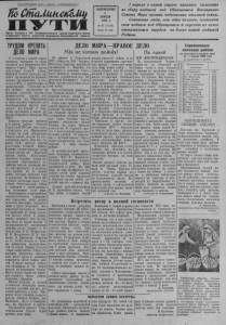 Пролетарии всех стран, соединяйтесьг НеСшЛшш&Щ П У Т И Орган Северною РК Коммунистической партии Советского Союза и районного Совета депутатов трудящихся Новосибирской области ВОСКРЕСЕНЬЕ 3 АПРЕЛЯ 1955 г. № 27 (16130) Цена 10 коп. 1 апреля в нашей стране началась кампания по сбору подписей под Обращением Всемирного Совета Мара против подготовки атомной войны. Советские люди, как один человек, поставят свои подписи под Обращением и скрепят их само• отверженным трудом на благо нашей любимой Родины. ТРУДОМ КРЕПИТЬ ДЕЛО МИРА С 1 апреля в нашей стране началась кампания по сбору м п и од рн п о и г с о ей Со п в о е д та Обра М щ и е р н а ием пр В о с т е и в подготовки атомной войны. л х т Ш и о е и н н з р н а г о и х ы к х о и т й р М п у р в Т д е о я С д л щ , п н р в и о и й х у я с ч я т п р и р н е я о а ж х х , о д п д е р я н о в т и м я ы к м х о ш и л и р о о р д га о н д и о з б а р ц я и ет ях. вн С у о т в р е е т н ск н и ю й ю на и внешнюю политику партии и правительства,, писывается под др О у б ж р н ащ о ен п и о е д м м л и а о г о с а т в е в о т е и рж п е о н в д н с п е ы и м с у и сил т ск р и р у я д еп о л м к я , ет п то р с м а и у , ч ш т е о н бы ия п я р н е в т а в р о с р к и о т г ь о П в л ж ен и у з м нь а Ц р К е КПС П С о . всюду проходят митинги и в нашем районе. Рабочие Тартасской МТС все, как один, подписались под Обращением и взяли на себя конкретные я х о в а б и н я л о з и в ат ск е у л св ю ь о с й т в в а а х , т п в у р с . о т т а О е л н с и и т н в а с п е р с о т з т а а и в подготовки атомной войны. Великим гневом звучали слова членов артели им. Крупской против войны. Колхозника н р з а я е м й п е л с ч т е а в н ю а и т я ар б т о о е л б л ь щ и ш , е и с п е т о в д е н н п я н л т о а и г н о я ы с у в х к о о н ег о о го ма у т р е о р в и н а я л , ьно и г м о и не кул н ьт у у ж р н а война, которая приносит горе с и с т т н у р п и а а к з ю и ор т е О н п и т е е е р ч . е е д с Н о т в а в ы е м н е и н л т о ю и й н ди га , в х о у й в ч н ы а ы и сти зая о в т л с я т ю аи т ва о ть сво д е е й ло реш м и и м р о а . Включившись в предмайское социалистическое ние, передовые люд с и орев н н а о ш в и а х к н л о я ар м л о х и д о н з в о ы в й тр в п у ы р д с а е о з к д в и н с м и т и к реч и а п ю о о т к т а м за е в т ч с е а е ю с н е и т й з . м ка у К м » о п л з а х а н о н и з и ю м « а П п е о т уть с о б д о н р о к у и п з к о о п д м п е м и р у вых мест по надою молока и организованному’ завершению зимовки скота. Доярки: А. М. Сунгутская, П. П. Мокроусова, П ть . ев В а . , П Н е . тр Б у р ш и е т н и к к о о , ва М. б И о . рю А т к с а я ш з ст а е и то о д , т об ч к и т о в о р а б о т ы в ь . с б я Д о о л я ь п р ш р к е о а д и у к к о т л и х б в о о н л з о а ь м в « а З а е н а т р ов я м н н а к о о г м о Д м е у т м н р ч и у и з д м х а и а н » и а О з л а в ь н к г и а л м ад а Р е ы о т п о е н р а в . ен В ст м во арт с е ре к ди ажд д у о ю ярок де р к а ад й у она надаивала до 74 литров молока на фуражную корову. М ро н в ог с о ла м в о н ж о н го о пр т и р в у е д с а ти п д р о и яр м о е к , телятниц, свинарок. Многие колхозы в полной готовности встречают весну, создают условия для тех, кто м с а т р е а р т н о е м л ет и м р о « а П г б у а о т м т я а с т л т ь ь уж в Л и е т п н ь о и л н с е е а . л » ь , х П о и р з м и . К м а у л » и , н и и м н . а, Кр « у П п у с т к ь ой к к и ом д м р у у н г и и з е . отв Т ер р ж уд ен я н щ ы и м еся т р р а у й д о о н м а! б С у а д м ем о крепить дело мира. ДЕЛО МИРА-ПРАВОЕ ДЕЛО МЫ не хотим войнЫ! На одной На митинг в Тартасской МТС собралось 200 человек. Выступил секре