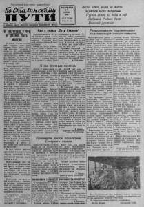 Пролетарии всех стран, соединяйтесь! Ш С п ш Л ш м Ш щ П У Т И Орган Северною РК Коммунистической партии Советского Союза и районного Совета депутатов трудящихся Новосибирской области !.1ШЦ.ЧД!И..!.ДЦН..'.И К и М I ВОСКРЕСЕНЬЕ 17 АПРЕЛЯ 1955 г. | № 31 (16134) Цена 10 коп. Весна идет, весна не ждет. Дружней весну встречай. Пускай земля из года в год Любимой Родине дает Высокий урожай! Иду в колхоз „Путь Сталина" Демобилизовавшись из рядов Советской Армии, я стал работать на различных предприятиях. Последнее место моей работы— Северный пункт Заготзерно. Сейчас же, когда в колхозы идут сотни и тысячи людей из городов, районных центров на руководящие и рядовые работы, я решил пойти в сельхозартель «Путь Сталина» в деревню Бергуль, где я родился и вырос. Имею К нам приехали новоселы Партия и правительство поставили большие задачи перед сельским хозяйством и обратились к рабочим городов и промышленных районов поехать в деревню, в колхозы. Рабочий класс дружно откликнулся на призыв. Патриоты едут на целинные земли, в сельские районы. К нам в колхоз приехало несколько семей. Меня специально направляли в город Новосибирск с тем, чтобы пригласить людей, рассказать им о перспективах развития хозяйства колхоза. Тепло и радушно были приняты приехавшие. Организовали вечер встречи. Председатель сельхозартели т. Тельный приветствовал прибывших, сказал о том, что они приехали в родную семью, о них позаботятся и что вместе станем крепить колхоз. С ответным словом выступил Василий Иванович Пло- хин. Он заявил: «Мы не подведем свои коллективы. Откуда приехали, будем честно и добросовестно трудиться». И К. Башков, секретарь парторганизации колхоза им. Калинина. Принимаем вызов коллектива Северного сельпо специальность плотника. Думаю, что найду применение своим знаниям плотницкого дела. Строительство *с каждым годом в колхозах расширяется. Жена моя также найдет там для себя дело. Призываю товарищей из учреждений и организаций районного центра и других сёл пойти в колхозы, своим трудом выполнять решения январского Пленума ЦК КПСС. К. ТИХОНОВ. на второй же день все мужчины вышли на работу, а женщины стали устраиваться в квартирах, создавать уют. Тов. Азаров установил пилораму, а т. Плохин сейчас на ней работает. Остальные товарищи пошли в строительную бригаду. На четвертый день, ознакомившись с хозяйством, прибывшие новоселы подали заявления для вступления членами колхоза вместе с семьями. А колхозники здесь же решили оказать помощь. Выделено по 30 кубометров леса каждой семье для постройки типовых домов, выделен мелкий скот в личное пользование и определенное количество хлеба, которого хватит до нового урожая. За помощь и хороший прием колхозников благодарили тт.Васильев, Плохин, Кулькин и другие. Они решили написать письма своим товарищам по работе в г. Новосибирск и пригласить их в село. Развертывать соревнование комсомольцев-механизаторов В подготовке ксеву не должно' быть мелочей До начала весенне-полевых работ осталось очень мало времени. Объем работ, который предстоит провести в этом году по возделыванию кукурузы, расширению посева других культур, намного возрос. Поэтому от колхозов и МТС требуется,- чтобы они вовремя и хорошо подготовились к весеннему севу. Ремонт тракторов и прицепного инвентаря в машинно- тракторных станциях района закончен.Но рейдовые