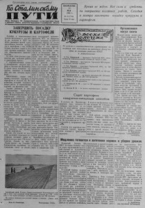 Пролетарии всех стран, соединяйтесь! КГ. 1шСтйЛшси&Мц И ^ Т Г И Орган Северного РК Коммунистической ггртии Советского Союза и районного Совета депутатов трудящихся Новосибирской области ВОСКРЕСЕНЬЕ 29 МАЯ 1955 г. № -13 (1746) Цена 10 коп. Время не ждет. Все силы и средства на завершение посевных работ. Сегодня и завтра закончить посадку кукурузы и картофеля. ЗАВЕРШИТЬ ПОСАДКУ КУКУРУЗЫ И КАРТОФЕЛЯ Большие и ответственные, з н м а у н д о а г н ч о а и ра в к с о о ш з л л и х о р о ж е з е н ы ны яр н о в во М й э Т ту С к : л в и е н н с , а д б з у а о ы в т л е ь ь л и ш и п е ч р к и о а л п ч р а о н т с л у о ь у ю ф ч е и п л к т о я о ь с р ад м с з к о е а р в т у н е ю м а к , и у ч к б т у с о а о р з б з у у ы д во л д я С с о тв о в а б с . щ ем ест э в т е и н м но у г с о пеш ж н и о во с т п н р о а вляется ряд колхозов района п тракторных бригад. С перевыполнением плана н и иц св у ое в вр к е о м л е х н о н з о е и з м а . се К я а л л и ин п и ш на е . В ш ку и р е с у ро з д а к в и , а з з д д а н е к я с о ь нч п п а о т о с с а а д ж в к е у н б а л к и а ж р к т а о й у фел З я а . канчивают также сев яровых, посадили курурузу и р к о а ш рт и о л ф о е в л а ь , к в ото к р о ы лх й озе за и н м им . а В е о т второе место в соревновании артелей на весеннем севе. Хорошо работали в этих сельхозартелях тракторные бригады тт. Тарасенко, Куль- п ха и н н и а з , ат К о о р н ы драте о н т к м о, еч м е н н о ы гие м к е а к л ко уч м ш а ие К в ПС по С ст и анов р л а е й н и и с и полк р о а м й а н п е о се и н т ы ога н м а с Д ор о е ск вн у ов п а о н ч и ёт я а. и з З а а - несены на Доску почёта и в этом номере газеты лучшие трактористы: члены партии тт. Закамекий, Безгин, и другие, п д е а р н Х е и в о я ы р . о п ш ол о няющ тр и у е дя с т м с е я нны м е н з о а ги е т н р и а л к о т в о а р , ист Б ы угл и е з ев б а ри и гад д т р . уг Д и а х . У большинства стремление такое, чтобы вближайшие два дня закончить сев яровых, посадку картофеля. ж ст н а ы О ва д н н з и а а с к я л о он э п и т о и т с ь ев у с н с е п ы р е х ь х е и зн р о н а г б е о от д о о т л в таких колхозах, как «7-й съезд Советов», «Борьба за мир», «Новая жизнь», им. Сталина. Р га у н ко и в з о а д ц и и т и ели з , де п с а ь ртий н н е ые обес о п р е в ч а и н л н и ост н и а , дл М е Т ж С аще н й е о н р ал га а н д и и з л о и нужного контроля за работой тракторных бригад, за ходом весеннего сева. По состоянию на 26 мая в этих артелях план сева выполнен на 29—35 п го р в оце и нто за в, п н ос е л т ед о н с и об е ых дни сд . ви А куда же еще больше тянуть. Сроки уже все прошли. И с е я сли об п ъ р я е с д н с и е т д ь ател э и тот стар п аю оз т о р плохой работой техники, то чем же можно объяснить т га а н ко и е зую п т ол л о юже д н ей ие, н к а огда по н с е ад о к р у кукурузы вручную?' Ведь ни ж од е н н о о го в г к ек ол та хо р з а е не им б . ыл Ст о а п л о и с н а а и по 2—5 гектаров в других, п к е ой реч к и а с р л т е о н ф н е ы л х я зд з е а с п ь а . з С ды п в о а с ю ад т . Тоже не понятно чего ждут. Нужны самые оиеративные н м и е я ры по н с е е м вн ед ы л х енн р о а г б о от. з П ав а ерш с е ев включить все тракторы п,чтобы они не имели ни одного часа п зы рос и то к я а . рт Н о а фе п л о я сад о к р у гани к з у о к в у а р т у ь больше людей, использовать сеялки, картофелесажалки, маркеровать поля для ручной посадки. | Только мобилизацией всех сил и средств, напряженным м тр е у е д м ом в дн б ё ли м ж и ай н ш о и чь е ю м д ы ва д су н я справиться и ликвидировать я о т т е ст л а ь в с а т н ва и х е. пл П а р н и л
