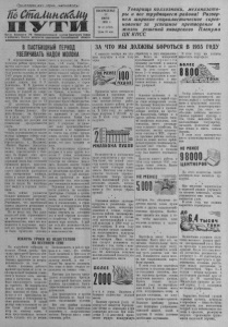 Пролетарии всех стран, соединяйтесь! СтсьРьна&ЛЦ} ЖТГ1® Орган Сзззрного РК Комяунистнчегкой партии Советского Союза и районного Саззта депутатов трудящихся Новосибирской области ВОСКРЕСЕНЬЕ \ 12 ИЮНЯ 1955 г. № 47 (1750) I Цена 10 коп. ; Товарищи колхозники, механизаторы и все трудящиеся района! Развернем широкое социалистическое соревнование за успешное претворение в жизнь решений январского Пленума ЦК КПСС В ПАСТБИЩНЫЙ ПЕРИОД УВЕЛИЧИВАТЬ НАДОИ МОЛОКА В перспективных планах в к а о е л т х с о я зов еж р е а г й о о д н н а ое пре п д о у в с ы м ш а е т н р и и е продуктивности коров. В этом году решено получить не менее р 1 д е 5 ой д 0 о 0 в ф ы л у е р ит аж ро д н в о о я й м рк о к и л о , о р к о а в к ы а . к от А 0 к . а п ж е Р . Демчихина, М. М. Дрючина и другие взяли обязательство н п а л д е о н и н т ы ь х о к т ор к о а в ждо н й е п м з ене з е акр 2 е 0 ж це а н т т . не О р н о и в. н И адо с и ло л в и о у с ж во е е по де 1 р 2 —13 центнеров. Передовые р х м о а я б з т о о ь т в н К и « и к П р и а о м ж в я а и т » в ь , от Л н и е о н м в и . од н К с а т а » в г , а ан к « о о Н в л и а ча и ряда других стремятся использовать все резервы для повышения продуктивности м х ч с о к е о с з о л П к а т о о р а е к м р т . а в е ы л с з и е о а р н е м и в м е « н с а П о т ю а в а м т а н я в и т с ь е с и о й ц п ч о и а Л а с е н л н а с и и д е с н о л т ю а ь и » (председатель т. Шаламов), н т « е и П л з а ь м м а я т » т . ь О ( с п К и р и п е р о д о в с в ) е , а д » а « т З е а л р ( ь п я р т е к . д о с м Б е м л д о у а - л х д п е ей р н ж ). в ан Н п и а е я ри ф с о к е д о р т м а а с х т б о ы йл л э о т с в о и о с х г т о ав а л р е с т н о е л п я р л ав и ил и ьн р о азн р о а о ц б и р о а н з , или при к г о о р т м ов а , строго выполняли распорядок дня: своевременно кормили, н п зу ы о л и м ь л т и а п т о и н о д а к о д а и о з л ю а и л . с ж я Н и а п во о т л п н о а жы с и х т . т б е и Р л щ е ь а с я к н о и З т и д . е в с ы ь шел се в йч х а о с роше у м де с л о я с е т т о с я большое внимание лагерному содержанию и ночной пастьбе. Учитывают, что пастбищный период является решающим в увеличении надоев молока. в с о я д Н и о т р е а л н з е г е й ов в о е п р з о а д к м е а и т о а г к о р . ан Р и р я ч а д и зв в р и а у т е к и т о и м ж х к о о о и й ж в б о н е ы т о г н с л о т о а и в п о р д к п о с р д т п о у в о к в а л е т , у д и ч и е в е н м н н а е о и я с ю ти в . се в П ы в л о с з о о зпмовка с к к о о в т а а , в «7 к -й олхо с з ъ а е х зд им. Со М ве а т л о е в н » , ш б « ы Н ен о ш н в е о а в я а н » и ж , к д и а а к з о н и й ь т » е , п за е « б р П о ь а т н м ы е я . т т В ь с с о ё К в п е у р у й щено на самотёк. Ни о каком лагерном содержании, ночной б п н о о а т в с н т а и н ь к и б о е и в , д п ф о о я е д р р к о м о к р р м и е к ч е и д , р н у о е ги в х с е о д р е р е т а в м ся я . ть Прав К д у а й , бы в ше к в о а л » хозе до '« я П рк а и однойиз бригад (деревня Мед- веженка) брали обязательства. Но оформлены они небрежно, в ж ы ен ве н ш ом аны пом в ещ г е р н я и з и н , ом н , и з к а т н о ав и о х не проверяет и не следит м за ал в ь ы но п с о т л ь нени к е о м н . ечно Так н а и я чего фо н р е даст. С доярками дят даже производ н ст е ве п н р н о ы во х совещаний и не спрашивают и з к о о х в го а с т о ь н ве е п та а т с р т е к ь в а б о к у жи л и т уч в т ш о а е д к о о п е о о й р п . г о а Н л н и о и жение, что скот сутками не пое Н н е . использованы огромные р х е о з з е о р в в . ы С и в так р и я м де д п р о у л г о и ж х ен к и о е л м м т н е я и л т р ь ь и с . т т ь в Б с а о я ль м н шы е и л е ь о з б я з я . а з С д ан в а о ы ч 