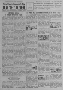 Пролетарии всех стран, соединяйтесь! Орган Северного РК Коммунистической партии Советского Ссюза и районного Совета депутатов трудящихся Новосибирской области ВОСКРЕСЕНЬЕ 19 ИЮНЯ 1955 г . № 49 (1752) Цена 10 коп. Товарища колхозники и механизаторы! Своевременно развёртывайте работы по сенокошению и закладке силоса. Обеспечим общественное животноводство достаточным количеством кормов готовить школы К НОВОМУ УЧЕБНОМУ ГОДУ Огромное внимание в нашей I стране уделяется воспитанию| подрастающего поколения. Каждый год пополняются ряды работников просвещения учителями с высшим образованием. Большие средства отпускаются на ремонт, строительство и оборудование школ,квартир учителей, интернатов. Закончился учебный год. Многие школы и классы пришли с хорошими результатами. Ребята сейчас отдыхают, набираются сил, чтобы снова сесть за парты и хорошо учиться. Для встречи детей в новом учебном году надо хорошо подготовить школы, интернаты, обеспечить их топливом, оборудовать, иметь все необходимые учебные пособия, создать надлежащие условия учителям. Исполком районного Совета депутатов трудящихся рассматривал вопрос подготовки школ. Отмечены большие в этом недостатки. К ремонту приступили только в Биазе, Чебаках и Ново- Троицке. Фёдоровскую семилетшою школу надо капитально ремонтировать. Дел с ней очень много, но председатель сельсовета т. Владимиров и директор школы т. Горчаков пока до снх пор рядятся кому за что отвечать и кто какую возьмет в этом на себя ответственность. А пока идёт такое нерепирательство, время уходит. Кончается уже июнь, а на строительной площадке нет ещё многих материалов и нет достаточного количества людей. Средств отпущено много, но за пол- года из них не освоена и четвертая часть. Не ведется никакой работы с общественностью, с родителями, а от них можно было получить очень большую помощь и поддержку. Не используются средства на строительство и ремонт квартир учителям в Северном, Биазинском, Останннском и других сельсоветах, не готовят даже лес. Многие же квартиры пришли в негодность и учителя вынуждены жить в школах или на частных квартирах в плохих бытовых условиях. В поселке Нзго-Сабан очень плохая школа и совсем нет квартиры для учителя. Но заботы со стороны председателя Берх-Краснояр-■ ского сельсовета пока не проявляется, хотя разговоров об этом много. В таких же условиях продолжать работу нельзя. Если там не изменится положение и колхоз «Память Ленина» не поможет, придётся учить детей в Больших Куликах, а правление обязано будет ежедневно возить в школу и обратно 11 ребят. Не везде в порядке интер-, паты. Некоторые из них надо расширять, другие ремонтировать п оборудовать. Возможности к этому также есть. Во многих школах не достает наглядных пособий, парт, классных досок, а средства, отпущенные на пополнение- и расширение материально-хозяйственной базы школ из года в год полностью не осваиваются. Надо принять все меры к тому, чтобы к 10 августа закончить ремонт и строительство всех школ, а к 15 августа комиссии должны проверить их готовность. Шефствующие организации над школами обязаны помочь всеми силами. Райпромкомби- нату надо как можно быстрее выполнять заказы школ на поделку парт, классных досок. Серьезное внимание следует обратить на заготовку дров. Просить помощи у родителей, провести сходы граждан. Го