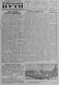 Пролетарии всех стран, соединяйтесь! НеСмоЛинсхйЛщ П У Т И Орган Северного РК Коммунистической партии Советского Союза и районного Совета депутатов трудящихся Новосибирской области В каждом колхозе, в каждом селе должны быть мобилизованы все силы и средства на заготовку кормов. В достатке накосить сена, заложить силоса, вырастить богатый урожай кукурузы ЧЕТВЕРГ 30 июня 1955 г. № 52 (1755) Цена 10 коп. УСИЛИТЬ ЗАГОТОВКУ ПРОДУКТОВ ЖИВОТНОВОДСТВА В постановлении январского Пленума ЦК КПСС записано: «Осуществление ностав- \ ленной Партией и Правитель- . 4 ством задачи неуклонного подъёма благосостояния со- К вотского народа, удовлетворения постоянно растущих ^ запросов населения настоятельно требует добиться в . ближайшие годы значптель- 5 ного увеличения производства ь в стране зерна, картофеля, $ овощей, технических культур ^ и продуктов животноводства». Разработав перспективные Ч^ пл аны в свете требований Пленума, во многих колхозах района организуют по-настоящему работу на всех участках колхозного производства, стремятся получить больше продуктов сельского хозяйства. В этом году на три тысячи гектаров расширен яровой клин, гораздо больше прошлогоднего посеяно пшеницы, кукурузы. Получение высокого урожая даст возможность создать прочную кормовую базу для общественного животноводства. В таких сельхозартелях, как«Память Ленина», «Память Кирова», им. Кагановича, «Заря коммунизма» и других в этом году обращено внимание на получение большого количества молока, свиного и другого мяса. Организуется лагерное содержание дойных коров, подкормка их, создание нагульных гуртов крупного рогатого скота и откорм свиней. Часть продуктов идет в счет обязательных поставок, а также продают в порядке закупа по повышенным ценам. Сельхозартели: «Память Ленина», «Путь к коммунизму», им. Крупской, «Память Кирова», им. Кагановича, им. Маленкова выполнили полугодовой план поставок мяса и молока. Артель «Память Ленина» дала государству 660 пудов свинины. 90 центнеров продано сверх поставок колхозом «Намять Кирова». Решено до конца года дать стране ещё не одну сотню пудов свиного п других видов мяса. Но так обстоит дело не везде. При равных условиях колхозы: им. Молотова, «7-й съезд Советов», нм. Сталина и «Новая жизнь» остаются должниками перед государством. Обязательства по поставкам молока и мяса за первое полугодие выполнены на 22—60 процентов. Ни один из этих колхозов, конечно, не приступил к выполнению договорных обязательств но госзакупкам продуктов. Такое отставание объясняется низкой продуктивностью скота. Но к повышению её нет никаких попыток. Не организована как следует пастьба, дойных коров пригоняют в деревню. Не откармливают и свиней. Зоотехники МТС мало вникают во все эти вопросы. Некоторые колхозы не рассчитались по поставкам шерсти, не выполнены яйцеио- ставки. Большая вина в затяжке расчетов с государством по продуктам животноводства лежит и на заготовительных органах. Больше надо бывать на фермах, на местах паст- бищь, у доярок и вести разъяснительную работу. Требовать от правлений колхозов выполнения обязательств. Добиться такого положения, чтобы индивидуальные сдатчики продавали как можно больше молока, мяса, яиц. У нас есть возможности выполнить и перевыполнить планы производства продуктов животноводетва. II большая часть их должн