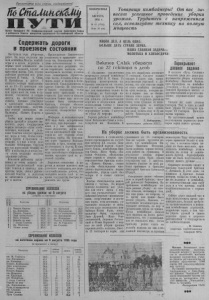 Пролетарии всех стран, соединяйтесь! ШСмаМииж&Ш} П У Т И Орган Северного РК Коммунистической партии Советского Союза и районного Совета депутатов трудящихся Новосибирской области Содержать дороги в проезжем состоянии Наступила пора уборочных н ш ра е л б р и о ы т к . и ом Н в б а ай д п н ел о ы о л .Мм я но к г о а и л г е х р о е з к г о а о в т м ы ба в й ы с п п о ер л в н ы ен х ия дн з е а й да д н о и б й и , ва с ю л т е с д я ят вы за качеством жатвы. Так, хорошо в р о а д б с о т т в а о ю м т В а . гр С е м га ы т к ы , по А д . С р м ук ы о к , В. Прокофьева п другие. С юм к к т а о ой ж м д п з о р о е ж г р о 1 и н 3 . о г — е Н в к е д 1 т п е 5 а р т р е ц а р н е ы н а в т н н н а т ы е м о р м к о о а л в ач и п и о о в т з с о и а у ш ля и е л т к с и я , готовится п отправ на заготовительные пункты. Активно участвуют в хлебосдаче сельхозартели ш «З а а я ря пе к р о в м уюмуни к з в м и а т » а , нци п ю ол , учи и в м . Калинина, «Память Кирова и дру Ч г т и о е б . ы как можно скорее п у о б л р н ат и ь ть уро п ж ер а е й д и г д о о с с у р д о а ч р н с о тв в о ы м в с ж п п к с е о а е и р с т м в т ь у а м ю в С е д о о р о к з в р ы , а е о п т г к к о а и о м в т л е о х д в с м о ь л з у — е п а , д р м ч п у о т е л е т о а з и ж н б п ы е р х м с и л о н с е д е я б е л т с о р о ь ь стоянии. А у нас в этом деле большие беспорядки. Струдом кое-где перегоняли технику из М го ТС о в че к н о ь лхо м з е ы д , л н е о нн и о пос в л е е ду эт т о ся дорожные работы. ш д ск е и л и И в ь х а с н л п ы С о х о л п в к о е п о т м р э о е т в д о р с м и а е у й д с н а о т а в в е м о е л е п т е т р а й и о л су з с а е к с л л о о ь н у т д к и ре т т е н л ы ей е С м о е в р е ы т , ов обя п зал к р о у л к х о оз в о о в р н о е г з и ат м я о ги ст в о а в т . ь с ремонтом доПредседателю Биазннского с х д е о и л з м ь а о со н п в м о е б . т е а В сп о и о р к о п о ш р и и а т в л ь л о с е в я н а ию о нео к т б о о х м л о , чтобы на всех речушках, что н м а он т ти ер р р о и в т а о т р ь ии мос к т о и л ки хо , за в , са о м т о р м е м с ст е о в л н о е та м з о д а с о к т р а а о н . г ч У и и с в и а м л т и о ь с т т ь о с в т т е р м в о п и П ы т о е р т л е ю ь - кановском, Гражданцевском и других Советах. Не допускать и такого положения, чтобы н го а д ш н и ост п ь у . ти Для пр э и т х о о го ди в ли каж в до н м е сельском Совете иля колхозе должна быть специальная бригада, которая обязана содержать дороги в хорошем с п о р с а Ш т в о л о я я ф н т е и ь р и а и , м х с . во п евр м е е м ха ен н н и о зато п р о а д м МТС надо быть осторожными п ни р к и и е . зд А е, у пр н и ас пере н г а о б н л а ю х дае т т е с х я т т д а о о к м р о о е з м а л в а и о в х т а о ч в м е с а е ст ш в и о с н т , о о й р к о о и н г л ы д и а т л р е с а т л к я е т н н а ие сти д л о ы ро , г тр т у р б а ы т . ят Н с а я с б о о д л е ь р ш ж и а е н ср о е у д ч с и т т в ы а ва и ть тр и уд, бе п р о е э ч т ь о . м К у н то у м ж у же осторожная и разумная езда способствует сбережению м ле а з ш Б н е и о р н й е , ж с п н л р о у о е ж д б л о ы я т е н . т ош с е р н о и к е их к п д о о рогам и мостам поможет нам с у к сп ох е о ш з н я е й е ств в е ы н п н о ы лн е ит р ь аб в о с т е ы, се б л е ь з р з к е а р в д о о м е з р а и ж т г к ь о и с в у с в д е о а з р и г с р т т у ь в з у ы х ,б л . ы еб стре в е п з е а СОРЕВНОВАНИЕ КОЛХОЗОВ на уброке урожая на 5 августа (убрано в гектарах) заним. место Колхозы заним. место Колхозы 1 Память Кирова 119,0 10 им. Крупской 25,0 2 им. Калинина 80,0 11 им. Ворошилова 23,0 3 Память Ленина 80,0 12 Путь к коммунизму 20,0 4 Заря коммунизма 78,0 13 им. Кагановича 80 5 Путь Стали