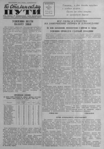 Пролетарии всех стран, соединяйтесь/ 1&СтаЛинсь^Ш} П У Т И Орган Северною РК Коммунистической партии Созетского Союза и районного Совета депутатов трудящихся Новосибирской области УСИЛЕННОВЕСТИ ПАХОТУ ЗЯБИ РАЙИСПОЛКОМ ИСПОЛЬЗОВАТЬ АВТОТРАНСПОРТ Для' успешного проведения х т в щ о о е е в з с г а е и о м н т н ь г е п о з г д о емМ а с л . Т е ю С ва и е н о щ д ео е б п х с о о с д о е и с в м ен о б и к у о д г л у о Своевременно проведенная зяблевая т ж и а я я. пол Л у ю ч б е а н я в и с я па с в ш е ы л к с ь а о с к к о — о г х о оз г я а у р й р а с о н т венная культура, посеянная по зяби, даетувеличение уро- жайностп до пяти центнеров с одного гектара. Большинство тракторных бригад правильно поняли своп задачи. Они вслед за жатвой убирают солому и пашут зябь. На 25 августа тракторная бригада т. Буглеева, пз Тар- тасской МТС, в колхозе пм. Кагановича вспахала зяби 200 г д е н к е т в а к р у ов п , од за нят п о ос 1 ле 4 д 0 ню ге ю кт п ар я о ти в. н Х т ы о о р р е и ош с с т м и ы е х н И п в ы о а к н д а о з В б а е и т р в е б а л и ю е ц й т к с и я й в и тр Н н а и о к ч колай Шаев. Не отстает и л т ч х р о а о л а в з к е а а т . о о « р О с П н н е у а а н я т н ю ь р б а С р н ю т и ь а ш г л п а е и а д х н а д о а р т » у у . т ги . х в Да к н н о и л а Не мало хороших примеров н в д о а т й р № а М к Т т 5 С о , . рн г В ы д п е х ер п б е о р д с и и л г е а и д д а е х к т ос б С о р е в в и и е г ц р а ы щ н р и ж а и д и и пр 1 о в 8 в с 0 п ед аш ен г к е о к а т л а у р щ з о я е б в н и . ие н Х а о с р т о п е ш л р о о р п м а а и т ш Н е п у н а т к о р о я п з д я о и у б д ь ъ с Т е а м б л р р у у а и ч с г ш з е а я н д и б ы к м и о и , . т п б т р о . и л К ь м о ш е н р о д а е н у ы н е ас м и ехан о и т з с а т т а о в р а ы ние. ме О д т л д ен ел н ь о ведут подготовку земли под урожай будущего года. Бригадирытракторных бригад Тартасской МТС тт. Ишонпн, Х ст о в х е л н о н в о и о Ф тн и о л с и я м т о с н я ов б к езот э в т е о т м у важному делу. Па 25 августа в колхозе «7-й съезд Советов» поднято всего 55 гектаров зяби, а в течение последней декады пахота не производилась. ш к е в в В с а п » к а о ш в л к о х е о о б з щ е е зя « б н П и с а . мя п т Н р ь е и п с о т К н у у я п й т а б н л ы о и , па что надеется правление и что думают в МТС. н та и р з В м а. у» кол п х о о д з н е ято «Пу т т о ь лько к 2 ко г м е м к у Такое положение можно объяснить только тем, что агрономы и механики в этих колхозах п бригадах пустили работу на самотек. Допускают н о ыш х ибк еж и е п д р н о е ш в л н ыы х х ле з т а . д К а о н н и к й рет д о б д р я и т га п д, н тр е акт к о о р н и т с р т о о л в ир н у е ют дово и х выполнение. Надо покончить с такой безответственностью. В этом году есть все возможности напахать достаточно зяби, а м ту е п н о н но э а т д в о о ы м п у т о а л к н о , и р т га ь ч н т и п о з л б о ы а в н ат п ь с о во р к е а а в б ж р о е дой бригаде, колхозу и в целом по району. Тогда мы сможем получить в будущем году высокий урожай всех сельскохозяйственных т с у та р вл и ен в н ы ы п е олнить ян з в а а д р а с ч к и и , м кул п ь о и июльским Пленумами ЦК КПСС. РАЙКОМ КПСС ЛУЧШЕ Для успешного проведения хлебозаготовок - государство направило в наш район 50 а м п в о о т н щ о я ь м т а а д ш о р и л у н ж к . о н в а Э о т д б а и ы т т е ь л б я о м п л и р ь а ш в к а и о я л л ь хо н п о о ,- з ц о и в я О м и д и н . а п к а о рти о й т н д ы ел м ь и ные орг р а у н к и о з в а о дители не хотят использовать автотранспорт па полнуюмощ^ допускают большие простои машин под .погрузкой, и еще хуже, к