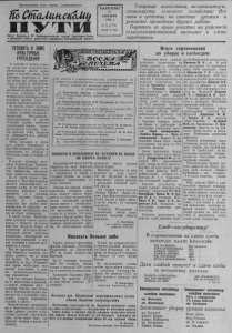 Пролетарии всех стран, соединяйтесь! П У Т И Орган Северною РК Коммунистической партии Советского Союза и районного Совета депутатов трудящихся Новосибирской области Товарищи колхозники, механизаторы, специалисты сельского хозяйства! Все силы и средства на спасение урожая и успешное проведение других работ! Боритесь за право участия на районной сельскохозяйственной выставке и слёте передовиков. ^в о с к р е с е н ь е I 18 СЕНТЯБРЯ 1955 г. № 75 (1778) Цена 10 коп. | ГОТОВИТЬ К ЗИМЕ КУЛЬТУРНЫЕ УЧРЕЖДЕНИЯ б с д д в а я а й е т , Б т н с и о я к т в о о е ы т г в л д л х ь и а п н ч о а п в л а я п с е г я в р о ы е т х г р к л а а у е т с б л т а т о ь н х а т т е , а н у г а р о в х н , п о п е - р к п р з о о п р и м м в о о о - н си ее тся вре в мя кл э у т б а ы п рабо б т и а бли п о ер те е к н и о. н щ и ес К с т л е в у л е б н а н , я о в -п в л о я л к е и о т т с т и я о ч ро е м с ц к е о н й с тр о о с ж р м е и д о з о б тачиваются стационарное кино, л ве е н к В н т о о о р й м ии н са , о м ги к о х р д у е ж я о т к ч е и а л г ь а н х х о у с к т д у и л о . ь ж т е у с р т ы невозможно будет заниматься л в и з к и о м в н с и к х ом у у с , ловия Ф х е .Б д о о л р ь о ш вс е к - о К м у у , Граждаицевскому и другим сельским клубам требуется капитальный ремонт, однако п т р о е в дс с е ер д ь ат ез е н л о и с э е т л и ь м ских вопр С о о с в о е м но занимаются и к ремонту не приступают. Очень медленно п плохо идет ремонт Бпазинского и Верх-Красноярского клубов, а заведующие тт. Бельков и Кондакова стоят в стороне от д с с э к к и т и а о т В е я г с о я . п и л б О и о с б х т Н и л а о и х н в о и о т п - е Т у с к р с к и л о а , о и я в ц , и к ч Ч я а и у я х т в а а л ш ь с н н е и а л ы н х ь - е о залы заняты не поназначению. Из 31 клуба только в Биа- зинском и Верх-Красноярском и та м л е ь ю н т ы с е я к к л и у н бы оапп и а х ра н т е ны и е м , ею ос т . Исполком районного Совета решением от 2 сентября обязал сельские Советы и колхозы до 1 октября м а п п о о п н ст а с р т р р о а и а т ц н т и ь ы ю е п к р и и и н з о а ф к п и р л л е у ь т б м и а о т х в ь к т и а н д м о е , где не будет аппаратных.. В одном только Прибелин- к д с о к а м о т м е ель б с ы ел т л . ьс о К к б о о с м п у ы ж т С д о о ё в в н , ет в е н о , а п п р р и о е с с п д о с о е л б у т л и у т ч ел ш ь е н н о и й и ра к б у о л т ь ы т , урн н о а -п м р е о ч с е в н е ы конкретные мероприятия по п н в о о и д р м г я о е у т т с о с л в я о к в е в и п я ж о м м и и е з щ н р ь е е , н ш ий ение к п з р и е м тв ск и и д Р н х я о д , Со д ж в у е е м то а п в ю р т е и , дс к е ч д ол а то т х е о л з д о е о й в, с з о е и ч л м е ь ы ещё далеко. Но успокоения ш д но о е с п е т у ь с ю к в а р т ем ь п я о н д е го н т н е о а о в д б и х о т о . ь д В им б о к лиж з п и а о м й л е все к н и ые Т н а е у м ч к , и р у г м е л д е ж ь е ю д т е т у с н с р е в н и л о о я ь и - . с п х к р и п о е о с м в б е е и щ т б и е л т н и е и о л й т ь е , а хранят книжный фонд в м к се а е л я ст ь и с и к т и ь Ф х е и д х С о о р в в о е в о т с т а к д х а е , я л , ь н к н у а ы к ж е н О о п с о р т м а я е з ц щения, создать нормальные условия в работе. ям К и ом о с б о щмо е л ст ь в с е к н и н м ост о и рг с а ё н л из н а а ц д и о г т т о у а т р к о ы ж в , е ке ч п т с р о е и б л ы н ь я с т з к ь и и м х у о ч й а о с ч т б а и г ы о е л в о в ку п л г о д ь д е п д р о о х в н е у с т т ь и . занятия и весело от I За успехи в социалистическом соревновании на I уборке и хлебозаготовках заносятся на районную Доску почёта по решению райкома КПСС и райисполкома: I . У ' фракторная бригада т. Кондратенко, из Север