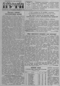 Пролетарии всех стран, соединяйтесь/ Ш СтйЛшюСёМи П У Т И Орган Северного РК Коммунистической партии Советского Союза и районного Ьозата депутатов трудящихся Новосибирской области Областные и районные сельскохозяйственные выставки - ".а-.г- :......т.--.-.—. - „ь ПЯТНИЦА 30 СЕНТЯБРЯ !955 г. № 78 (1781) Цена 10 коп. Таварищи колхозники и механизаторы! Высокими трудовыми успехами встретим районную сельскохозяйственную выставку. В день выставки продемонстрируем свои достижения, организуем обмен передовым опытом. С 20 сентября по 20 октября—месячник по завершению подготовки к зимовке скота Все силы и средства на заготовку кормов, строительство и ремонт животноводческих помещений! Создадим скоту сытую и тёплую зимовку Обсудив постановление обкома партии п облисполкома о проведении месячника по завершению подготовки к зимовке скота, члены сельхозартели им. Кагановича решили к 20 октября окончить строительство нового телятника па 70 голов, отремонтировать капитально телятник на 40 голов и закончить ремонт с переноской на пруте место Терновника на 50 голов. _ Организована бригада в составе 20 человек, которая занята заготовкой и вывозкой леса. Для транспортировки леса МТС выделила один трактор, колхоз закрепил автотранспорт. Строители не имеют задержки из-за, лесоматериала. Одновременно колхоз создал бригаду по вывозке кормов к ферме.На этой работе также заняты один трактор и тягловая сила..Заканчивается в бригадах скирдовка сена п соломы. Хорошо работают на подвозке леса и кормов комсомольцы и молодежь. Мария Штрауб, Василий Ковалёв, Виктор Симоненко и Александр Буг- леев ежедневно перевыполняют задания. Колхозники решили в дни месячника создать для животноводства тёплую и сытую зимовку. | В. Багров, председатель колхоза. Шире соревнование молодежи в дни месячника! В колхозной деревне установился хороший обычай—но окончании хозяйственного года устраивать районные и областные сельскохозяйственные выставки. Дело это большого государственного значения. Выставки являются важной формой пропаганды достижений науки-и передового опыта, действенным средством мобилизации тружеников полей на решение неотложных задач, стоящих перед колхозами, МТС и совхозами. На сентябрьском Пленуме Центрального Комитета партии указывалось, что в районных и областных центрах сельскохозяйственные выставки должны устраиваться ежегодно. Пусть каждый передовой колхоз и совхоз, каждая МТС продемонстрируют на выставке свои достижения, свой опыт в борьбе за подъем сельскохозяйственного производства, На выставках следует отводить место и для показателей отстающих колхозов и совхозов, чтобы они при сопоставлении результатов своей работы с показателями передовых хозяйств острее почувствовали недопустимость своего отставания. Это будет побуждать их заимствовать приемы и методы передовиков. Областные и районные выставки с каждым годом становятся все более наглядными и поучительными. Растет не только число передовиков,но и улучшаются их производственные показатели,совершенствуются методы работы новаторов. Районные и областные сельскохозяйственные выставки отражают результаты огромной работы по осуществлению решений январского Пленума ЦК КПСС о резком увеличении производства зерна и продуктов животноводства. На примере передовиков выставки показывают, 