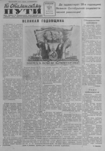 Пролетарии всех стран, соединяйтесь/ П У Т И Орган Северного РК Коммунистической партии Советского Союза и районного Совета депутатов трудящихся Новосибирской области ВОСКРЕСЕНЬЕ 1 ! 6 НОЯБРЯ 1955 г. № 89 (1792) Цена 10 коп. Да здравствует 38-я годовщина Великой Октябрьской социалистической революции! ВЕЛИКАЯ ГОДОВЩИНА Обязательство выполнили 1существенно п радостно празднует советский 'народ т 3 я 8 б ю рьс г к о о д й овщин со у циа В л е и л с и т к и о ч й еск О о к й щ с р к е и и н н м ¡ у л и щ О л к п ю т и д я ь . б м р и я Вм с о е л т с а м т в е о н ч у аюю с т го с д о т о в р в е у т д м я о щ кр и а е т с и я и и стра в н сего наро м д и н р о а й , д вс е е прогрессив юо человечество. т б к а ы о л г л и В о а ст р О с о е в к в з е т у р я л н г б ь н р т у п я а т о т а м в е ещ н п в и а о л ш к б а о е е с д в й т ы , ь ст к у р В а с а е т п н л а и е и новлена диктатура р с р т е и в а о с т о а р ц , а и б с а о о л ч з и и д с а х т н и о и чес к п к р е о е р е с в т о ь е я г п н о р с . о у в В л д е з а м я т р а в и класть в своп руки и став п ей олн с о у в д л ь а б с ы тн , ым сове х т о с з к я и и й ном н с а в р о о д ц в ст ы и в а ш Г ; л ! е е . и н л с и т а н и л а ч ь е н с ш ы к и о й р г о о к в и о й ж дь с п т у р т о К ь и о т м ел м с ь о у нистической партии, тель Советского госуд о а с р н с о т в в а а В. II. Ленин еще в 1918 году г с д о т о в и л о ч ж р е н и с ы к л и : е я « с . н п .. о н ре а о ч п б и о р с н а т а з а я о в в и а т с н ь о и ц я п и , е а р м л е ы и д собой цель, к которой эти ц п о р в е , об н р а а п зо р в а а в н л и ен я, ы, в им к е о н н н ц о е ц к е о л н ь создания коммунистического общества...» (Соч., т. 27. стр. 103 К ). оммунистическая партия п в н ск е о и сь е в - ы с п о о з в а л е в н т е я с т ю к ы и т . й в н е П а л р о и о д к д ие не р у л у к е к н л о о и в н о н д ством своей родной партии коммунистов, вооруженной в к с с е и п з о м б а е - ж ле д н а и ю н щ и и з м ма, учени р ем аб м оч а и р е , к л ст р и и е ге ч с н т е ь с ц к я и о н я е е, по о с с т б о р щ в о е е и с т л т с и в к о ая со п ц и и н а н т л ы е и н л е успешно осуществляют задачу з ц х а о и в д а е а л р и ш з к м ен а к и о и я мм п у с о т н с р т и о е з п и м е т у н е . л н ь о с г т о ва пер с е о Великий праздник Октября наш народ встречает новыми н у р о с а п м сл е и е х к й а и ми со и в циа р к л а у и з л в с ь т и т и т у ч и р е и ы с . к в о с й е П х я э т к о ы о т й пятилетний план по общему объему промышленного произ”- водства выполнен к 1 мая 1955 года, то есть за 4 года в с и т ен в 4 а ь м в п е р с с о я т м ц р ы а а ш н . е л В ен во н 1 з о 9 р г 5 о а 5 с п те р г т о о и д з б у в о о у л д р е о е чем в три раза по сравнению с 1940 годом. п т о и л л н ет я к ю и тся по за р д ос а т н у и Д я о с с р р п е о д я ч т с н т о о в й п п р в о я ы изводства. В нынешнем году н ш у а е , на 3 о с 3 ко б л м у о и д л е 4 л т 5 ио п н р о м о в и и л з т л в о и е н д о н н ен о о в ч с т у в о г н ы у н с л л т и и а о о л н н и о о в в , д т т о о о б н н ы н н то у н г е б л ф о я т л и о . е и 3 7 9 0 0 м м и и л л На основе всемерного роста в тя и ж ва е е л т о с й я пр л о е м г ы к ш ая лен п ност п и ищ р е а в з а я п ся ром вы ы п ш у л с е к нн т о о с в т а ь р , ов увел н и а ч р и од ва н е о т г о потребления. ВПЕРЕД. 11 Июльский Пленум ЦК КПСС м ц н р и о а у з с а р т л д и а и а б . с л о т ь т В и н а ч е л е й с р ш ш к е е о ш и г й р о е о н к и у п я ю о х п д р ъ о п е м П р м ы о л а ш г е р н л а у е с м м н о а подчеркивается, что тяжелая п г ж и р н х о а м о ы р т ш а р з л а в с е и л н е в н й а о т ст ь н ь с а я ро и б д в ы н п о с р г т о е р д е х ь е о д з д я о р л й у с 
