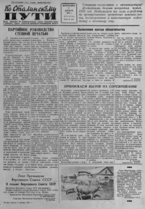 Пролетар ки всех стран, сФеднняйтееь! ВСШ им кШ П У Т И Орган Северного РК Коммунистической партии Советского Союза и районного Совета депутатов трудящихся Новосибирской области ! ВОСКРЕСЕНЬЕ 11 ДЕКАБРЯ 1955 г. | № 99 ( 17102) | Цена 10 коп. Товарищи колхозники и механизаторы! Достойными делами встретим новый, 1956 год. Мобилизуем все силы и средства на организованное проведение зимовки ско* та, всестороннюю и качественную подготовку к весеннему севу. ПАРТИЙНОЕ РУКОВОДСТВО СТЕННОЙ ПЕЧАТЬЮ В партийно-полптнческой работе важное место занимает низовая печать. Там, где партийные организации придают этому делу значение, повседневно руководят печатью,там незамедлительно сказываются результаты. В парторганизациях колхозов им. Крупской п «Путь Сталина» в течение года ни один раз коммунисты обсуждали работу стенных газет. Помогают секретари парторганизаций тт. Егоров н Ведерников в составлении планов. Газеты здесь регулярно выходят в свет, а во время летних полевых работ выпускались «боевые листки», «молнии», «колючки».Члены редколлегий добросовестно относятся к важному поручению. Под повседневным контролем партийного бюро Северной МТС и секретаря т. Синкина находится многотиражная га зета. Редактор коммунист А. П. Данченко умело руководит редколлегией, занимается организацией материалов. Там выросли уже селькоры— рядовые рабочие и механизаторы, которые активно участвуют в в работе газеты. Резко критиковали коммунисты конторы связи на отчетном собрании бывшего секретаря парторганизации т. Останина, что он совершенно не интересовался работой стенной газеты. Вновь избранный секретарь т. Пичкалев учёл критические замечания, помог оживить работу редколлегии и сейчас газета регулярно выпускается при - хорошем оформлении. Однако еще в ряде партийных организаций работе стенной печати не уделяется должного внимания. В течение года ни одного раза не слушали на партсобраниях работу редколлегий в парторганизациях колхозов им. Молотова, им. Кагановича и других. II не случайно, что здесь за год выпущено по одному— два номера. Регулярно и хорошая по содержанию газета выходит в колхозе «Путь Сталина» под руководством коммуниста т. Федотова, а вот в Мало-Карагаевском Совете газета выходит в 4 месяца раз. Партийная организация одна. Редактор коммунист т. Пенкин, один из членов редколдепш тоже коммунист т. Свистунов. Парторганизация на этот недопустимый факт не обращает внимания. Первичные партийные организации обязаны относиться к стенной печати как к одному из ответственных участков партийной работы, как к серьезному средству политической работы в массах. Надо, чтобы в каждом колхозе, в учреждениях и организациях регулярно выходили стенные газеты, а в бригадах «боевые листки». Одна пз самых благородных, самых важных задач стенных газет, как п всей нашей печати, состоят сейчас в том, чтобы на конкретных примерах, в простой и доходчивой форме пропагандировать решения январского п июльского Пленумов ЦК КПСС. Низовая печать должна служить трибуной передового опыта, освещать ход социалистического соревнования среди колхозников и механизаторов, замечать недостатки и указывать пути их исправления. В эти дни стенные газеты должны широко освещать, как проходпт зимовка скота, подготовка к отчётно выборным собраниям, какие бригады показывают образц