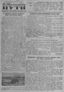 \ Ь ^ ' V у г Пролетарии 'всех стран, соединяйтесь! ШСш .1инс/СсЯщ П У Т И Орган Северного РК Коммунистической партии Советского Союза и районного Совета депутатов трудящихся Новосибирской области Товарища колхозники, механизаторы и специалисты сельского хозяйства! Организуем борьбу за высокие урожаи кукурузы! Уже сейчас, в зимние месяцы, необходимо заняться подготовкой кадров, проводить агротехническую учёбу в колхозах, создавать звенья, заблаговременно подготовить к весне сеялки, культиваторы, катки и другую технику, как можно больше вывезти удобрений на поля. ЧЕТВЕРГ 25 ДЕКАБРЯ 1955 г. № 104 (1807} Цена 10 коп. j о б у д у щ е й урож а е к ук у ру зы НАДО ЗАБОТИТЬСЯ СЕЙЧАС Значение кукурузы, как могучего резерва увеличения производства зерна п продуктов животноводства, источника накопления общественного богатства, определено в решениях январского Пленума ЦК КПСС. Претворяя в жизнь эти решения, труженики нашей области приобрели первый опыт по возделыванию кукурузы. Теперь крайне важно собрать его по крупицам, всесторонне изучить и широко внедрить в колхозное и совхозное производство. Решению этой задачи была посвящена проходившая недавно в Новосибирске областная конференция К}курузово- дов, работников научных учреждений, специалистов сельского хозяйства. Опыт учит, что нельзя шаблонно подходить к возделыванию кукурузы. В различных почвенных н климатических условиях требуются и различные приемы агротехники. В одной зоне преобладают черноземные и супесчаные почвы, в другой— суглинистые и солонцеватые. Значит, для первой приемлемы однп методы обработки почвы, виды п дозы удобрений, для второй— другие. Не могут быть одинаковыми для всех п сроки сева. Многое зависит от погодных условий— наличия осадков, температурного режима. Все это строго должно учитываться. Однако в нынешнем году было немало случаев механического перенесения опыта передовиков юго-запада страны п других областей в наши колхозы п совхозы, чем нанесен большой вред делу. Задача специалистов сельского хозяйства и научных работников — критически переработать и творчески обобщить весь опыт, накопленный в местных условиях. На областной конференции много говорилось не только об улучшении приемов обработки почвы, сева и ухода за посевами, но и способах уборки урожая. И не случайно. Уборка нынче проходила крайне неорганизованно и длилась больше месяца. З/го объясняется тем, что машины не были заблаговременно подготовлены, работали .без приспособлений, часто ¿домалнсь. Практика показала, что успех па возделывании кукурузы возможен при правильной звеньевой организации труда. Отсюда необходимость создать в каждом колхозе и совхозе звенья но выращиванию кукурузы, вовлечь в них комсомольцев, уже показавших (;ебя во многих случаях застрельщиками этого дела. Участники конференции в своем обращении призвали всех тружеников сельского хозяйства области включиться в активную борьбу за дальнейшее увеличение производства кукурузы, создание прочной кормовий базы. Они подчеркнули, что задача повышения урожая этой’ культуры должна решаться сейчас, в зимний период. Именно теперь колхозы, МТС II совхозы с йодным напряжением сил обязаны вестп задержание снега , накопление п вывозку удобрений на поля. Кукуруза— новая культура для нашей области. Чтобы творчески освоить п примени