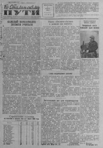 Пролетарии I I/ s стран, соединяйтесь' Oprah Северного РККоммунистической партия Советского Союза я районного Совета депутатов трудящихся Новосибирской области XX съезд Коммунистической партии Советского Союза призывает всех рабочих, колхозников, советскую интеллигенцию развернуть всенародное социалистическое соревнование за выполнение и перевы полнение"заданий шестого пятилетнего плана развития народного хо зяйства СССР. Осуществление шестой пятилетки явится новым крупным шагом вперёд в развитии социалистической экономики, в решении за дачи создания обилия предметов народного потребления, в строитель стве коммунистического общества в нашей стране. (Из Директив XX съезда КПСС по шестому пятилетием) плану развития народного хозяйства СССР на 1956—1950 годы). Щ .| ( !_.С!Я"!Р|!|^ !* Я !а11-. —' -'Л. -1-11 1 ||Д |Н ?111¥ 1,1Г1'1ЛЯ1‘-С Г «7■ '!■' ВОСКРЕСЕНЬЕ i МАРТА 1956 г. № 20 (1827) Пена 10 коп. ! КАЖДЫЙ КОМСОМОЛЕЦ ДОЛЖЕН УЧИТЬСЯ Изучение основ марксизма- ленинизма поможет каждому комсомольцу выработать в себе коммунистическое сознание, поможет видеть цель, правильно находить своё место в строю борцов за коммунизм, быть чутким п отзывчивым. Вместе с поднятием своего идейно-политического уровня необходимо заботиться о ношении общеобразовательного уровня. Правильно понпмают все эти требования Устава ВЛКСМ многие комсомольцы нашего — ’ Дона. Учатся комсомольцы -молодежь деревни Рязанск ^ ( к о л х о з им. М. Горького), где ^несколько лет пропагандистом ^¡мунист учительница т.Мар- ' кова. Большие трудности привалилось преодолеть комсомолке - '■^пропагандисту т. Гламазди- ной пока наладилась учёба комсомольцев колхоза «Заря коммунизма», но теперь всё это позади. Хорошо проходят занятия у комсомольцев Северной МТС, где пропагандистом т. Бабий. Интересно строит ^занятия в политшколе комсомолка т. Лукинпна. С большим желание"! занимается молодежь райздрава и больницы, изучая политэкономию. Про- ъгандпет Л. Алексеева но собственному желанию взялась руководить кружком. Комсомолки С. Блохина и П. Отлякова учатся заочно в библиотечном техникуме, Г. Хабарова учится в 10 классе вечерней школы, секретарь комсомольской организации колхоза им. М. Горького закончил курсы шоферов в этом году. Но нельзя сказать, что с учёбой комсомольцев всё идёт хорошо. Нет. В этом очень большие недостатки. Многие ещё члены ВЛКСМ не выполняют уставных требований о повышении своего идейно политического и общеобразовательного уровня. Не учатся ни в кружках, ни в школах, вместе с тем, секретари комсомольских организаций мало работают с молодежью в этом направлении. Не учатся комсомольцы колхоза им. Сталина. Секретарь т. Кузнецова и сама не учится. Плохие дела с учёбой и с другими вопросами в комсомольской организации колхоза <7-П съезд Советов», где секретарем т. Красноумева. Мало отвечает за состояние учебы комсомольцев секретарь организации райнотре/союза" т. Шуршена. Не учиняется спрос с секретарей и пропагандистов со стороны райкома комсомола. Не все пропагандисты утвер- ждены на бюро, не организован для нпх семинар Плохая посещаемость, недобросовестное отношение пропагандистов к делу, отсутствие условий для занятий привели к тому, что ряд политшкол и кружков перестали существовать. Мало уделялось внимания работе вечерних общеобразовательных школ. Но различным причинам молодёжь не стала 