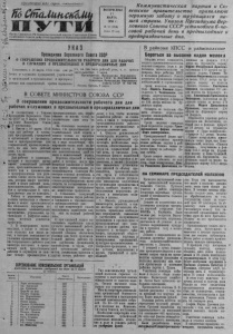 Пролетарии всех стран, соединяйтесь! Стадииад}. И ^ Т Орган Северного РК Коммунистической партии Советского Союза и районного Совета дег^ татов трудящихся Новосибирской области Коммунистическая партия и Cor ветское правительство проявляют огромную заботу о трудящихся нашей страны. Указом Президиума Верховного Совета СССР установлен 6-часовой рабочий день в предвыходные и предпраздничные дни. УКАЗ Президиума Верховного Совета СССР О СОКРАЩЕНИИ ПРОДОЛЖИТЕЛЬНОСТИ РАБОЧЕГО ДНЯ ДЛЯ РАБОЧИХ И СЛУЖАЩИХ В ПРЕДВЫХОДНЫЕ И ПРЕДПРАЗДНИЧНЫЕ ДНИ продолн б и и о ч ч о ^ н и р ы с х г т е а а н н и и д о н з в с а и п л ц т и у ь с ж й о к а с р щ в а 1 и щ п 0 х р е е н м д п н а в р ы р ы е т й д х а , п од р 1 н и п 1 ы я ) р 5 т е о 0 и т й и г , в и о д у н п ч а о р р р е е м ж д д а п д л л р е ь я н а н з и о д р й - ат. с. го, на два часа рабочий день, жптельностью 6 часов. Председатель Президиума Верховного Совета СС С Р К. ВО РОШ ИЛОВ . Секретарь Президиума Верховного Совета СС С Р Н. ПЕГОВ . Москва, Кремль. 8 марта. В СОВЕТЕ МИНИСТРОВ СОЮЗА ССР О сокращении продолжительности рабочего дня для ^рабочих ислужащих в предвыходные и предпраздничныедни . л В соответствии с Указом предпраздничных дня, отрабо ( Президиума Верховного Сове- тайные по восемь часов, до - P i * -DP О-) та да С С С о С в Р ет от М 8 ин м и а с р т т р а ов 1956 Сою го з а постановил: 1. Ввести с 10 марта 1956 и г щ о и д о х а рг п а д р н л е и я д з п а р ц р и и а я б й т о и ч й и в , х уч и р и р е е ж дв д с ы е л н х у и о ж й д а - ■ные и предпраздничные дни н со о к г р о, ащ н е а нны д й в , а про ч т а и с в а нор р м аб а о л ч ь и й день, т.е. продолжительностью шесть часов. Для рабочих и служащих, которые в настоящее время имеют семичасовой рабочий б д о е ч н е ь г , о пр д о н д я олж в ител пр ьн ед о в с ы ть ходн р ы а е н и ов п и р т е ь дп т р а а к з ж дн е ич ш н е ы с е ть ч д а н с и ов у .Д ст л а я л со и в ц о , й ко и то м ры ен е ее им р е а ю бо т чи ш й ест д и е ч н а ь , продолжительность рабочего п д р н а я Р з а д в б н о и т п ч а р н е ы д е в в ы д х н о и у д к н н а ы е з е ан из н и м ы е е н п я р т е ь д д . н и должна начинаться в обычное время и может производиться без обеденного перерыва по согласованию администрации г п с а к р н и е и д м п з , а р ц и и ят и м и е я с , с тн у ы ф ч м а р б е р ж и д ч е к н н о о и м - я и за , т в е о о т р о д м профсоюза. в н о ы д х 2 с . т о в т а В р х а , сл а н я е х п т р ак ер и ж ы л е и вны в в х ид о а т п х д р е о р л и а ь з бот, в которых невозможно по н у и сл е о с в о и к я р м аще п н р н о о и г з о во р д а с б т о ва чег в о ве д д н е я н ни ак чн ан ы у х не д в н ы е х й о , дны пр х едо и ста п в р л а я з т д ь р ды аб е очи ч м еты и ре служ п а р щ ед и в м ыхо з д а ны к х аж и д по ы л х Н н а и а . те о л т ь д н е о льны о х дни сезо д н е н н ы ь х р о а т б по о л т н ах и , те г л д ь е ны п х ред д о н с е т й авл о е т н д и ы е ха до в период сезона не представ в н м л с р я и я и е е , е р м т о в я в с д я а о в н с п и и е о в д з е л о е о н з н т м и а а о т и к е ж с и л к н и х ь л ы н ю м ы д ч н , п х е е р д н й е о и д д п я о н у , с е з с т й а к а а с в е о в у л т т с м е ё дыха в межсезонный период. Перечень отраслей и видов щ р м а е е б м н о я т т п , ь у с н в я кт у к е к от а о з к р а о ы н м н х п ы е е н м с в а о ц г н и у а и т с , т п о у р я с и н т и ан ст а р в о л в ив с а о юю т зн ся ых С р о е в с е п т у а б м л и ик М , и а также министрами союзных и с с о о т т е ю в р е з т с н с т о т в - в , р у е п ю с щ п о у с и б о м л г и л и а к с а о н ц в с е а к н н и т и х р ю а 