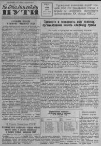 Пролетарии всех стран, соединяйтесь! Л • ШСтаЛинас%йИ} П У Т И Оргаь Северного РК Коммунистической партии Советского Союза 1 и районного Совета депутатов трудящихся Новосибирской области ЧЕТВЕРГ 28 ИЮНЯ 1956 г. ! № 53 (1860) | Цена, 10 коп. Труженики колхозных полей! Сде- лаем 1956 год решающим этапом в борьбе за досрочное выполнение постановления X X съезда КПСС ! готовить школы К НОВОМУ УЧЕБНОМУ ГОДУ н ко и в й 2 . .9 э З к н а з ю к а н о м н я е ч н з ил а у к с о я д н е ч с и я и л т с и я 1 к 9 л п 5 а о 5 с с — с л н е и 5 д 6 учебный год. уНовый учебный год будет з в н ые ам , ен но ат р е е л ш е ен нт и е юм, XX что съ в е п з е д р а КПСС, в сельской местности б щ у е д г е о т по с л р о е ж д е н н е о го н , а б ч е ал с о пл в а с т е н о о бго х л о е о б д н у и ч н е я а н . ия н П о п в р ы о е д й д р п а о у с л ч т а е г а б а ю н е ы т щ с й я егпо п п о л е к а р о е н , в к т л о а р п т т у о ь т р д е ы во з х н й н о н г а ч о ч е б и с т в у к е о о д л г с ь е о п н т о и е т п н о а р р и б е ас я р д а ш у з и о с и р в м е а н н ар и п т и е о и я - школьников. нег О о су о щб е р с а тв зо ле в н а и н е ив о я бще се го л с ь р с е к д о й м те ес л т е н й о , ст р и ук н ов а о к д л и а т д е ы л в е а й ет шна ко у л чи и работников районного отдела н ш а и р е В од и н т о е о г к т о в у е щ т о м с е б т р в г а е о з н о д н у в ы ан е и п я о зад б п а о ч л л и ь а . ну т м до о а н л л ь т ж н е о н -в з б о д с ы а с т н т ь а и п н я р о м о в и и Ф зв т е е д е д л о ё р ь н о н к в а ы ск п р о й и е й , Прнбелинской,Гражданцевской ч се а м ль ил но е й тним ш и ко С да т м ё , пив по с с к т о р й о н ен а о новое здание для Потюканов- -ской начальной школы. т п е ри л Х ь з о н н о а д г т о ь ка р у е п д м о и о в т н л а т е а т л в ьо о ш н р - к в и о т ос л е с л н т ь а е н н ы л ов ь м з и я . с лы к П о о т го . в С и А о н н в е о ет х П а и р но и и б й д ел и д р п л н е я к ск то о р р го а ем с ш е он л к т ь о а з н д ей ани ш я ко П л р ы ибели н н е ско з й аг с о е т м о ил в е л т е он строительных материаолв. С б р д о о и л в т с ь с к ш я о и й ми рем с т о е р н м т у и д д н е о з т д с н а т е я н й м и и я ш п к р Ф о о е л в д о ы о . З м с ст д а о ь е е , ю сь н к б е о у р л о к и и тс о га ч у ми д е т л с с а е т т п в к в т л у о е о о с в т т т н а р и н о а к е н о в е в о . о п го б о о л х л д н е о и пил Д и о се к го в т р е е к м у е щни ем н у е р п е р м и о с н т т у у школ в Биазпнском, Граждан- цевском, Верх-Крансоярском сельских Советах. Пора понять председателям этих Советов тт. Иванову, Гри- , г л о о р м ье р ву ем и онт Д а ья ш ч к ук ол , н чт е о д с опу н с а т ч им а ни один день промедления. Следует одобрить хорошее начинаниеколхозниковсельхозартелим. Крупской, взяв шпх на себя обязательство за с л т м в а о ы о л н , й ь т н в о ыУ с з д в ч и е о ё н л с т и с с т т ко а ь п н й р о и в о н и и а з т в ч о е е т а л с р ь ль т е н и н м ы о о й н й т ш к и а к р р п о о е и вать дом для учитлея. Так поступают не многие. м и П ко м я р т т . о ед ь р М с ы Л . е е е д Г н а д о и р т р н ь е а у и к л » о ги г е о т к . т о с . ч л и С Ч х а т а зо а в о с ю и о в н т рп , и и к « ч н Н о т е о в а , м он о и нту ни ш ка к к ол ого н о о тношим ен е и ю я т. к р О е т о мнение находится в явном противоречии с решением XX съезда партии, где записано, что колхозы своими силами и средствами должны принимать участие в строительстве новых и ремонте старых зданий шк С ол о . здались вполне реальные х у д ти с о у л ч , зо о ес м в в к и о я п й , б ор ып ч я о л т д м о о к б о ы е щ о и о т у , к р ж к а е з м а е а ж о н в н д и т ы э я и т м р о о п м к в р о а г н л