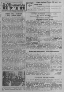 Пролетарии всех стран, соединяйтесьj ШСшЛинснШ, П У Т И Орган Северного РК Коммунистической партии Советского Союза и районного Совета депутатов трудящихся Новосибирской области ВОСКРЕСЕНЬЕ 1G СЕНТЯБРЯ 1956 г. № 76 (1883) Цена 10 коп. Дадим любимой Родине 158 тысяч центнеров зерна! Товарищи колхозники и механизаторы! Все силы и средства на завершение уборки и хлебосдачи! ГОТОВИТЬ КЛУБЫ И БИБЛИОТЕКИ К РАБОТЕ В ЗИМНИХ УСЛОВИЯХ 4 В решениях XX съезда К м ни а П ю н С и С е ку у д л д а ь е л т л ь у е н р н е н о й о ш - с м е е а р м с ь у с ё о з в н о о у й е лу р ч а в ш б н о и е ты на селе. Сельские клубы и библиотеки должны стать о н ст ы по и х ч рн е о с ы р к м о г и а м ни в з п о а у с ц н п и к и й т т а а м н в и и и ко п м т а м р рт у у н и д и й я г щ о и К хс л р я у а . б й ы она и б в ибл с и в о о т е е й ки р н а а б ш о е т е имеют серьёзные недостатки. Но всётаки •в большинстве с б ж в о и о т в ё у а м н п и о о ю ни к в т у е р л д у ь у ж т т е у н р и н б к о о о м л в ь у шу п ю о о б л с р е л а й у . Сейчас вся работа преиму- ' щественмо сосредоточена в бригадах, на сушилках. Но недалеко то время, когда вся к д у е л т ьту п р е н р о е - н м е а с с е с н о а вая в раб к о л т у а бы бу и б д и еж бл ь ио и те в к с и е . Им тр ен уд н я о щ т и а е м ся м с ол ел оа смогут культурно провести с з в е о т б ы о , дно п е ро в с р л е у м ш я а , ть почит л а е т к ь ци г ю а , посмотреть кино, концерт ху д ст о и ж Ч е т и с о т б в ы т е . н д с н . д о е й лать само к д л е у я б т ы ел и ьн б о и блиотеки подлинными очагами к ш у и л м ьт у у л р у ы ч , ш н ен а и ря ем ду со с де д р а ж ль а н н е и й я и в т х р о е в м р и е а т б н ь н о ся т о ы к и ,не п з о о и б - м х х о о е. д зя и й м с о ки заб п л о а д г г о о Состояние культучреждений вызывает законную тревогу. м т М т я е е н ц к . к о о Т ог в м а к р ещ а к , й л ё в о у н б О е к а с л х т н у а б е н н о и е в г н о с т и к п о о в о м ы д б в и е к и з б е л н О з и и ы о с дрова, требуют ремонта печи в Больше-Куликовском и Че- баковском клубах. Не готовы к работе в зимних условиях также Право-Каёвская изба читальня, Верх-Красноярский сельский клуб, .Чувашинская, Остананская, Бергульская и к О и с . тя П ц р к о а в я ер с к е а ль п ск о и к е азыв б а и е б т л , ио ч т т е о в ряде случаев этому вопросу просто не уделяется внимания с б т о о ел в е с ,и й тор б с о и е н б л ы л ь и с о к з т и а е х в к еду С и ю ов щ е п т и о р х в е . дс к е л д С у а о вершенно неправильно понимают некоторые заведующие оубами и библиотеками, что за них кто-то будет готовить к зиме помещения. Неизвестно чего ждёт, например, зав. Больше-Куликовским клубмо т. Чегодаева. Через месяц начнётся отопительный сезон, а в клубе нет и кубометра д н р ы ов, о н кн е а т . п Н еч е и и бес н п е ок з о а и ст тс е я клео подготовке к зиме зав. Оста- нинскнм клубом т. Махныткн- н ш но а а г . я о А п в р о в о зм в э е о т д ж и е н н х о и с я к т л ь р у е б м а д о х л н я та п у .О о с л п с н т еш а ей ю ги т . с П я р н и еи ж с е п л о а л н ь и з и ован м н о ы ж м н и о де б н ы ь л о унте полностью подготовиться к жи з т им Ф е ё . дор П о р в и с м к е и р й ом кл т уб ому ( с з л ав у . т с т к . о и в Н к и за к б р о о а л б т а о я е т т в е с ) я . з К им л о у о б б й. п э П о т о о ч - м х т о и з з я г а й о в . П ни о к тю ов к , ан п о р в е с д к с и е м дат к е л л уб ь ом Б т н . а С зи от н - ского сельсовета т. Иванов, г с л т д о и е ви д к я л л х. я убы раб в от п ы ол в ной зимн г и от х ов у но с Вомногих клубах требуется п п е и р ч е а л . ож Н ит а ь до печ н и а , д н е о ят н ь