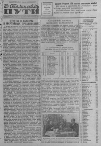Kfö / J r VЩ)-1Р I pcs . iv сруь всех стран, соединяйтесь) НеСпмЛшш&Щ П ^ Т Г И Орган Северного РК Коммунистической партии Советского Союза и районного Совета депутатов трудящихся Новосибирской области ОТЧЕТЫ И ВЫБОРЫ В ПАРТИЙНЫХ ОРГАНИЗАЦИЯХ ВОСКРЕСЕНЬЕ 23 СЕНТЯБРЯ 1956 г. Ха 78 (1885) Цена 10 коп. Дадим Родине 158 тысяч центнеров хлеба! Все силы и средства на успешное проведение ударной пятидневкй\ В ближайшие дни завершим план сдачи хлеба и уберем весь урожай! тий В ны о х кт о я р б г р а е ни в за п ц е и р я в х ичн в ы а х ш п е а г р о р ч ве а е с й т т о н и н о а в и ы х б б у о д н р у а н т д ы о е с о п с р р б г о р а х а н о н и д и з и я о т . в ь а П нн р о о о т , н ж на а н я а вы п п о с р д о е к г д о о ш т м о е в с у т к р в а о о в в н а с е т . ь т Э е т м т о щм , у а ч т д т е о о л б л ь ы обсудить всесторонне коренные вопросы партийной жизни, чтобы коммунисты, подводя итоги своей работы, смело вскрыли недостатки, дали л г о т о ц и и е й н н р п к у о у у к т й о и д в о е о р у я д г л т с а у е т н ч л в и ш ь а з н е а х о н ц о с и и т з я и я и й и с п в т с а н в е р е й а т н м и н п е й ы т а н и р м о и культурным строительством. ста О м соб н о а е до вним со ан ср и е е дот к о о ч м ит м ь ун н и а т з т а и о н ч й ы ес о к в р о е г й с а т н и и ра з п б а а т о р о т р е ти , ск й к о н й о ы т е ор и о ую рг п а о о н б л и я и т д з о а а р ц и и К ч и П ес С п к С о и . х о Ц с р е у н е щш т е р е с а н т л и в ь й л н е о н X е и X ю м съ ес е и т з с о этот вопрос должен занять и р в ей о , тч и ётн в ых вы д ст о у к п л л а е д н ах иях се ч к л р е е н т о а в и кандидатов партии. б п р р а о В н яв и и п я т м ер ь и к о ом д о м со у п б н у о и ю д с г т о а т м о х в о к с з и л я е й д с к у к е у с т ю о заботу о выполнении стоящих задач перед колхозами, МТС, у д ч и р т е е ж л д ям ени в ям о и р , г п а о н м и о з г а а ц ть ии р , ук в ов м о о билизации колхозников и кол лективов рабочих. т к о р ч е В е т н ар о о е т в й ч н ё и д т м о н л а ы н ж х и н е о б д н о ы а т к ь л в а с ы д о а с п р х о е л д н о е с е нии принятых решений. На прошлых отчётно-выборных с л о и бра ц н е и н я н х ые ком п м р у е н д и л с о т ж ы ени в я носи п о у с л к у о ч й шен р и а ю бо п т а ы р . тий В но пол п и р ти ош че л ом году партийные организации колхозов им. Сталина—секре тарь т. Кочергии, «7-й съезд Советов»—т. Глущенко, им. Маленкова—т. Михайлов И М. принимали хорошие решения, е а м ко н н е тр б о ы л л я о. за И в их те в ч ы ен п и о е лн г е о н д и а в этих парторганизациях не принято в партию ни одного ч т е и л й о н в о е - к п а о , ли с т л и а ч б е о ска в я ела р с а ь бот п а ар в этих и в некоторых других СледовашЬ примеру передовЫх комбайнеров активности всех коммунистов. Надо добиться, чтобына с н о ы б е ран р и е я ч х и зв и учал з и акли не нан п и а я р , ада шёл деловой разговор, была с в с о а ё м р зд т о ы а к н р в а а и н т и и о я к б и ст , с а м н е д о л л в о я к й а с к о д б р л л и я т ю и д к е и н р и аз я и м пр о и к Т н р о ц а н т и и п с и а о . бр вн ан ут и р ю и , пар к т а и к йн о о б й ы д ч е но , задаёт докладчик. Будет его в д ы ер с ж ту а п н л и е ю н , ие гл с у ам бо о к к и р м ити п чн о ы со м , с б к м о и т ел е и , о з о в н ш с а и к ч р б и ы к т и ва и в ющ п п и р а е м р н т и и н я й е н д п о о о й с й та д р т у а т г в б о р т а т о н о в и м к й е ж о е и бя п н з р а а п н ов р ы е а д в е п л н о е и н м и и оч и ь . п ч В а л р е п т н о с ы о д р о а м й . к О ом че а н , ь инс в т а р ж у н к о тор п ск р и и е вл т е р ч у ь пк составлению доклада как можно более широкий круг л к е о к м т м и 