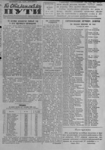Пролетарии всех стрин, соединяйтесь | Ш СмаАшш&Лш |1 1^ ГГ Ч * Орган Северного РК Коммунистической партии Советского Союза и районного Совета депутатов трудящих ся Новосибирской области ВОСКРЕСЕНЬЕ 7 ОКТЯБРЯ 1956 г № 82 (1889) Цена 10 коп. оварищи колхоза чили надой молока только 1275,5 литра на корову. Это далеко недостаточно. Сейчас необходимо принять все меры к тому, чтобы успешно провести месяч- ник по подготовке к зимовке скота и до- биваться увеличения продуктивности. 15 октября начинается учебный год в сети партийного просвещения го 1 го 5 д о а ктя в бря— сет н и ачал п о арт у и че й б н н о о го просвещения. низ В а о ция в х сех р п а а й р о т н и а йных се о й р ч г а а с б у г к а ы о ж н в , е ди п т о с е о т д к п о о у р б в щ е р . д е а е й С н л о ы е з п н д о ы а л к н и а о д ти р ф ы к о и р 1 , 8 м ы п к 3 р р о у у п н ч ж о а е ч л е и н т и шк ю о и л с ы т , ор 6 ии кр К у П ж С к С о . в по изу При райкоме партии и Би- азинской средней школе соз- о , '"даны кружки по изучению поу* литической экономии. Кроме ^ н д т о о ет м го и р , к а е б п о р т с а и е т л { ь а ь й ск к с о о е г м м о с ин п а а х р р о т з н и я о и йс э т б к в у о а в п ш л л е я я о а т д ю т а е и т р л с с В у п я я . к о м о л и И в с к е о . о э к д м т р с а о т С е г в т т о о а р м р р я и а п с й ч е п о е м н р н п и н е к е н д о о р а г с . в р о е и а д ч а н С т я С ы л е в о у х п се а д р а т т и е й л н и ых се о л р ь г с а к н и и х заци С й ов , ет п о р в еди колхозов. Для чтения лекций будут привлечены работники партийно-советского актива и с с т п в ец а. иал К и р с у т ж ы ок сель п с о ког э о ко х н о о з м я и й к е сельского хозяйства будет р ш а и б н о н т о а - т т ь рак и то п р р но и й Северн с о т й анци м и а . Р н у ы к й ов а о г д р и о т н е о л м ем М ут Т в С ержд В ё . н И гл . а К в и - чен П к р о и . партийной организации пункта Заготзерно создан ф к и р и Б уж ол В о ь . к ш И и п . н о с Л т е и в н з о и уч н к е а о н . м и м ю уни б с и то о в гра в в н б а ы о е . в т ом с З я ан к я у р т ч у и е ж я бн к о о в м во к й р г у о ф ж д о к у р а м х о о х т в й а у а к ч т ж ы е е будут посещать комсомольцы и беспартийный актив. Часть к ч о ен м и м е уни м ст а о р в кси п с р т о с д к о о л -л ж е и н т инс и к з о у й теориисамостоятельно. Кроме того, многие будут повышать свой общеобразовательный к ур ац ов и е ю нь в и зао д ч е н л ы ов х ую и к в в еч ал ер и н ф и и х общеобразовательных школах, техникумах и вузах. В летний период проведены соответствующие мероприятия но повышению теоретических з д н и а с н т и ов й : вн се е м ш ь тат п н р ы о х па п г р ан о д п и аг ст а о н в были посланы на месячные к м ст у о а рс м ы з п а , а н р и т о м и р и а г л , а и н д с и в ь з а ов н а а н п * н р ы оп е 1 а 0 г - а д о н н б д е к и о в ных курсах. Районный комитет партии в августе провёл однодневный семинар внештатных п п р а о г ч а и н т д а и н с ы тов л , ек н ц а ии кото н р а ом т б е ы п м л р ы и о : с « т X и X с п ъ р е е з д д от К вр П а С щ С ен о ия возм в о о ж й н н о в с н к о о о в л в р л л е е е м н к е и т н и е н в л у н е ю о н г и о э н п ск о о х р г у у о » к , о п в р « о и В д н о с ц т с и в с п т а а а », «Преодаление' чуждого духу марксизма-ленинизма культа р л о и д ч н н ы ос х ти» м , а « с Р с еша в ю и щ с а т я ор р и ол и» ь , на « О международном положении». б м о и т н 1 у а 0 р в о т в к о н т р е я о ш б й р т я ат о н л н ы а но ч х д н н ё е т п вн р с ы в о о п й ю ага с р н е а к д о и м ст а ов к р о а м й с к о о м м о а ла п , арт г и д и е и б р у а д й у т прочитаны лекциии: о л б и р ч а н з ы и х и с ф тр о