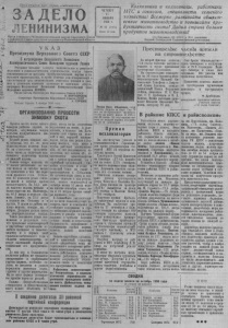 Прол етории всех стран, соединяйтесь! З А Д Е Л О НИНИЗМА ЧЕТВЕРГ 15 НОЯБРЯ 1956 г. № 92 (189J) Цена 10 коп. Орган Северного РК Коммунистической партии Советского Союза ~ и районного Совета депутатов трудящихся Новосибирской области Колхозники и колхозницы, работники М Т С и совхозов, специалисты сельского хозяйства! Всемерно развивайте общественное животноводство и повышайте продуктивность скота! Дадим стране больше продуктов животноводетва! (Из Призывов ЦК КПСС к 39-й годовщине Великой Октябрьской Социалистической революции). У К А З Президиума Верховногз Совета СССР О награждении Всесоюзного Ленинского Коммунистического Союза Молодежи орденом Ленина Учитывая большие заслуги комсомольцев и советской молодежи в социалистическом строительстве, всегда горячо в пш от е л ек к т о л с д и к в о к о а т у г ю вр о с щ п о п н е р и ыш х а й в с н я ' и о тр м т н у а е д л о п с ь к р в с и о о т м з е ы н в с и в о аи и ы , мо о л с ц о ь К ц б е о л е о м и в м , н о у н т с н м ы о и е х в с ч т е а и и я тс ч к е с с и з а к х а м о л й ю е о н ж т о н п в ш е ы а е р р х й т ж и е и и н з н е и д ы м е й е С ву л о ь и , наградить Всесоюзный Ленинский Коммунистический Союз Молодежи орденом ЛЕНИНА. Председатель Президиума Верховного Совета СССР К ВОРОШИЛОВ. Секретарь Президиума Верховного Совета СССР „ А. ГОРКИН. Москва, Кремль. 5 ноября 1956 юда. ОРГАНИЗОВАННО ПРОВЕСТИ ЗИМОВКУ СКОТА Прошел месяц после пятого пленума райкома партии, на котором обсуждался вопрос ) подъмеа продуктивности жи- ^ вотноводства. та П п е о р к в а ы з й ал, ме чт с о яцз н и е мов в к о и с в к се о х ' н б б се о а о л л ст ь ь н з х ш о а е с з г а п к о о р о т в т ы е а к л ш ,з я о а е х л н и и п в е еч о е с л д т у е в ч т п а е с р н я о и д м е у о к б н л т о о и а р к и в ь а от каждой коровы. Только четыре колхоза из 1 д 7 ою им м е о ю л т ока уве з л а ич о е к н т и яб е рь но мес н я а ц п н о л о д ыи о е м с н р 1 а а п д 3 в р о н о й к е ш о н л и л о в ю г х о о с з о г о к о т т в д е р я м а е б . з р к е о ж О е с с п н т п р а и о е з л р т и ь и и в п ра рошна л д о о г е о н д о н м е о г л о о Н. к а а 5 м 4 ен ,5 ьше лит в сельхозартели им. Маленкова, н м а ят 4 ь 6 Л ,6 ен л и и н т а р » а , в на ко 2 л 5 х , о 6 зе л « и П тр а а в колхозе им. Сталина и в д до р е у н г о их м . о Б ло ц к е а лом ме п н о ьш ра е йо н н а уна8 литров. Допущен расход скота на внутриколхозные нужды. мож Т н а ы ко м е п в оло р ж е е з н ул ие ьта ст те ало т в о о г з о, что правлении сельхозартелей и л во а д п би с а т р ли в т у и в й н н и ы и м е ан о с и р е г п ан е к и рв з ы а ж х ц ив и о и т д о н н с о е й сельскохозяйственного года в области животноводства не ведут настощя ий борьбы за повышение его продуктивно- 1 сти Д . о сих пор в большинстве колхозов района не налажено запаривание и сдабривание л гр ом уб ыы , х не кор в м в о о в д , итс о я собе в нно раци с о о н кормленияживотных силос, турнепс и другиекорнеплоды. н Ны Т е г н о р а л уп ьк в п о с ы ех ко ф р б о е е в р с м х н о а а х зяй р п с а о т з в д ст е о н а й в . н л ы е м отношением к общественному скоту можно объяснить тот факт, когда из-за отсутствия м н п т в щ о о о о а е р й д м в н о и о и и м ч п к я , а о к х е я о т , н с м л о к и о в е о я г д , т д е к н ц в а о г а ы , о к л р х н а м ы о я к е е ю т з с с о е т р т й т я е ь д н , и о а э м м н в к . а с с . к с К п в ф о а о а о е с м в д г р а е о а и щ т ц д р и о е у с я п б , т ы о ве н н е , н о и н р я о н а , м б е н т от ет н а а ет з д ж а л б и е о в э ж т о л ы а т е щ н к о т е о в б г р о о о д с с т 