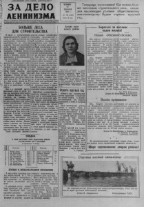 и ролетарии всех строн, соеоиняитесь г ■1 ЗА ДЕЛО ЛЕНИНИЗМА Орган Северного РК Коммунистической партии Советского Союза и районного Совета депутатов трудящихся Новосибирской области ЧЕТВЕРГ 20 ДЕКАБРЯ 1956 г. № 102 ( 1909) Цена 10 коп. Товарищи к о л х о з н и к и ! Как можно больше заготовим строительного леса, создадим надлежащие условия общественному животноводству. Будем строить круглый год. БОЛЬШЕ ЛЕСА ДЛЯ СТРОИТЕЛЬСТВА *5 В связи с поставленными з с в т а о в д т о а м н ч о а в п о м о и дст к п р в а а р у , т т и о п е м о й у вы и п шо п д е р ъ н а и е в мю ит у е ж л е ь г и о продуктивности на колхозы л н о о ж ст и ь т . ся Нар б я о д л у ьш с ая у о кр т е в п ет ле ст н в и е е н м кормовой базы, должна быть проявлена хозяйская забота о размещении общественного р н ск у ы д о В х о т в а п п а р о н в о н м ш ы т е л х и щы е п н й о и и вы я с м х е х з . , ех о х а н о н р з и о а ш з г ри о о о то о в в б а о о н к с с к н м а т а а н . у б о р п г б П и о и о я е л л е с е и т к о и о а с к л т в и о о хо е е р я л н з г ы и и ан ю к и з н з а о г а о л н о в ш х т а ан о ег ов н о з к о ы2 у р 0 , а п й л р к д о и е а е к м и у м. ни М з . ма Г » о , р « ь Б к о о р г ь о б , а « з З а ар м я ир» ком и н д и р л у и ги у е ж п е л н ан а 4 з 6 а —го 2 то 2 в п ок ро в ц ы е п н о т л а. А в этом сезоне артели им. М. Горького и «Борьба за мир» ещё и не приступали к этой в г с з р и а ы и а н т х б К е о л « о а в т п ь П к и о е н р ч а . ы а м й и , з я а в с т г е и о ь т К м з п о о . и р н во о ро ш к н С в л е л т ы а» а е й в л с , а е и и д н у м к а з т о . . а л г К х о д о т а Н о о е удивительно, что в некоторых из них в текущем году плохо велисьстроительные работы, в зимовку снова скот остался не размещённым как следует. Далеко не в числе передовых по заготоквам был колхозим. Молотова. И потому в течение полуторых месяцев зимовки дойное стадо находилось под открытым небом, давало очень низкие надои молока. Низкие надои в колхозе им. Сталина тольок потому, что в плохих помещениясхкот. Не редки у нас ещё случаи падежа скота. Такое состояние животноводства должно основательно тревожить председателей и р п е р й авл п е а н р и ти я йн к ы о х лх о оз р о г в а , ни с за ек ци ре й та и к к п к о о о а д в м т . о мМ ь б у н р н ы ы и у м н с к т е и о п м в . о , У о л ж о в ж е н с м е а е н с х м ие м и м р н к и о о г т и л о ьс х о н я о п е з у н с и с и спользованных возможностей в п б г е о м е о е н д . н ъ м о В ё г ы е м о д е ь у д п ж л н у и и с я в к ч о т е а т г е о о н м г о о , , во н н е д е ч д ст н т о о в а д а б д ы е , л о мы о н к в с о а а о к следует вести заготовку леса. Взяться только организовать б с с н р п л ы и е о х р г д , а т д ит о , ы ь т п в о з е и т а сл с з а т в а т в ы к ь е р п н е о с н п л ын н и и х т е м ь н и и л и е ю м м с д е з е т р а й р ь д а ё н а з и ний. Ведь сумела же сделать это колхозы «Новая жизнь», и юн т м а» . т и К а р к д о у р е п у д с г е к ие л о . о П й п о ,« р ч П о е б а м л мя е жу м т е о ь й с Л ч с и е е н м та и ь к ке олхо п з о о с в л , едн з е ан е я м в е ш ст и о х с в пу с ст во о д й г п р о а л ф не о н й и ,г я де пл с а т н о а ит ле п с р о о з це а н г т ото вы в ок. Партийные организацитиех п к и ол ли хо е з щов ё , к кот з о а р г ы о е то н в е ка п мл р е и с с а ту и т т д ы е и х т , ь , д г о э д т л е о ж т н е ыщ в ё оп н п р е л о м о с е х д о н л а и ен д н с у о о т бр о р а а б н с б н у о а и зов п а о т м ь оч б ь р п и р г а а в д ле ы ни , я с м озда о т р ь гани им культурно-бытовые условия и условия для работы, закреипть г а ти о г й т и о н т ы в а й о о к тр . к о о в П н л т