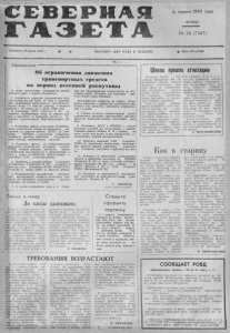 6 апреля 1995 года Основана 20 июля 1935 г. ф ВЫХОДИТ ДВА РАЗА В НЕДЕЛЮ. Ч 9 * у > - . . . 4} Цена 100 рублей. Официаль но *-------- -- ——----------------------------- ----- О о о г р а н и ч е н и и д в и ж е н и и т р а н с п о р т н ы х с р е д с т в н а п е р и о д в е с е н н е й р а с п у т и ц ы В ц е л я х о б е с п е ч е н и я би л ь ны х до р о г в п е ри о д б е с з о д х о р р а н о жн о ь с я т . и автомо н ст ы в 1 х . , п О о п л о г н р вы а о н й ш и е ч м н и а н т с о ь с й о д й п в р и б о жо х л е о е н д е и и е м 1 о т 0 с р т а т и н о , н с п н г о р р у и т з н о о п ыд о н х д о ъ с с р к е е а м д т ностью бо л ее 1 ,5 тонн ,по д о р о г ам С е в е р н о г о района с 2 8 м а р т а по 1 июня 1 9 9 5 года . 2 . С е в е р н о м у Д Р С У ( К и с е л е в Г . Ф . ) о в т н а е н р а о н в о и и м т , в ь ы С с з р т а е а п д в р н и е е т щ н ь ч а ю и 5 н щ е д и к о е е р . о з Вжн е а н р к ы и х х - К н р п а а о с с д н т о о о р в я о р г к в а х е , р Б С а у н й е с - а з е . е е н з з о д д м н а о в т й с б е л д ь о г к р р о о у г у з е о л . п и е цО р у с е т в П а о в у з иш к т и к ь и о н д с а л у . я щ е с с к т в в о л зн я т о ь го по о п б р ъ о р н о сп жК о ь а р я т т е а г д о в р б и и е ж з ч е е н с п и к р е и о п в з у а с ( п р к р а а й е , т ц и е в н т ы ь т д р а е н н а н г о у п г с о е е р н и и к о ч о д н м о м г у о б н е т а з р л д а о ь ной с л у ж б о й . 8 . Г л а в а м с е л ь с к и х адм и ни стр ац ий ввести о гр а нич ени я д в иж е н и я т р а н сп о р т ны х с р е д с т в в п р е д е л а х по дв едом ств енны х н а сел енны х пун ктов. з д р н а н ын 3 о н м . м ы у Р а м а в : з т р о п е м о ш о и б д и т о ь л р я о пм га р м о т е о з л р д ь а к й о о о т н д п а е о — ль п Д н р ыо Р пм С у У с б к , о а л п м ь о . ш С е е г в р в ы у е П П Ж К Х , с у к а з а н и е м подробного м а р ш р у т а , вр ем ени д в и ж е н и я , нного н о м ер а т ран спортно го с р е д г с о т с в у а д . а р с т в е 4 . Р а з р е ш и т ь про езд по н е опл а чи в а ем ым п р о п у с к а м ав т ом об илям п ож арн о й о х р а н ы , Р О В Д , « с к о р о й п о м о щ и » , ав т о б у с о в (кроме повышенной проходимо сти) и п рир а вн е нны х к н и м , а т а к ж е ав т ом об илей , п р и вл е че н ны х к п е р е в о з к е Г С М , с е л ь х о з п р о д у к ц и и . 5 . З а п р е т и т ь в данный период С е в е р н о м у л е с п р о м х о з у ( Г л ам а з д и н П . М . ) о т г р у з к у и вы в о з к у л е с а , С е в е р н о м у Н Г Д У ( П о п о в В . В . ) о т г р у з к у и вы воз нефти за пределы район а . 6 . Р у к о в о д и т е л я м предприятий , ц тр и о й л , ь к з о а лл д е в к и т ж и е в н н и ы е х м х т о р з я а йн с с п т в о р о т б н е ы с х п ечи о т р с ь р г а е н д к и с о т з н в а , запретить и х с т о я н к у и домов . 9 . Р а з р е ш и т ь Д Р С У и П П Ж К Х , с учетом с п т о р г а о ц д и н е ы й х р у а с й л о о н в а и й ( , Ж п о о р о с в о гл В а . со П в . а ) н и сню и м с ат а ь дм и н н и а т ч а а н с т о ь вл с е у н т н о ы к е и д л а и нн ц ы е мл ы р е а с с п у о т к р и я ж о е г н р и а е н м и . ч ени я , у с 10. О б р а т и т ь внимание Г А И С е в е р н о г о Р О В Д на н а р уш е н и я во дителями ных с р е д с т в ' пр авил до рожно го т д р в а и н ж сп е о н р и т я в ки с . . С е в е р н о м , с в я з а н ны е с нрбездом под з н а 11. К о н т р о л ь за движени ем т р а н спо р т ны х с р е д с т в в ра й ц е н т р е в о зл ож и т ь на П П Ж К Х ( р Р а я ц щии и к ( о Л в у к В а . ш Мо в . ) Ми . гл В а . ) в ; у н с о е л ь с к р о айй он а у дм и ни с н т а Д Р С У ( К и с е л е в Г . Ф . ) и Г А И С е в е р н о г о Р О В Д (Ф и л и м о н о в В . П . ) . 12. К о н т р о л ь за выполнением нн ии я стра в ц о и зл и ож Жи т о ь р о н в а а з В а м . е П с т . и т е л я гл ав р ы а с п о а р д я м ж и е Г . . З Ы Р Я Н О В . . гл ава адм и н и ст р а ц и и . 7 . . С ц ел ью со х р а н н о 