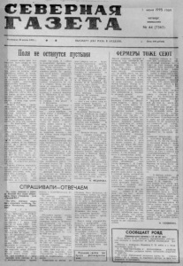 С Е В Е Р Н А Я ' А О с н о в а н а 2 0 и ю л я 1935 с ♦ ♦ В Ы Х О Д И Т Д В А Р А З А В Н Е Д Е Л Ю . I июня 1995 года четверг № 4 4 ( 7 3 6 3 ) у Ц е н а 100 р у б л е й . ФЕРМЕРЫ ТОЖЕ СЕЮТ Поля не останутся пустыми б л е о н У н и о к с д т а о и ж ж . д д о О и й д , н а вес щн д ы е р д у р г с а а в я о н и а — т о е с н п о а холода и з а с у х у . А нынешняя б—ам то . д б а л в а а г я о ск и л м о н п н о а лн к уюх л е б в о о р л о ю р а зв ерн у т ь р аботу на п о л я х , то нагоняет с п л о ш н у ю пелену т жл у юи ч т . с н я п еу о е с л м е и р н в д о а ц й я е , в р л а а с г к з о и е й м с . ш л И е у д ю е т л р з ь е е ц в м а о , пр е дч у в ст в у я з а т я ж к у в«ех р ж а а б и о . т, К а а к з н р а а ч з и т н , а и к а п н о у т н е е рн пе у р р е о д н н ги а о й ш е и д о м о б жщ п д е р ь ст , и в е н о з о до « е мЛ д у в ч а в » с а о к шл ц н е и л ц о е н д е п о р л о д за с т у о ш р и ы ло от п п а р ш ав н и ю л , и с к ь а к на мех с а в н о и е Первое н н и и е Н ем а , з з в а п а о т у жь р в а о л п ж э у о а т й с й о е , м . вн н у г е ю о д б у у д с е с р т р а а п ж ж р е е е у в елич ени ем , по тому что их з б м ез ож к н о ы н е ц а п п р р о е б с л л ем е д ы у - ю , т ре в ш се а в т о ь которые , к а к в б ою , нужно оперативно, б е з пром е дл ен и я , т вШ а л к и —ят к ь а Н к о на з н а в е д к е е с о р ь т ж о к р х а оы д й м п о о ж с е а е т в н н а о л п й и о . з н п о о м каз х ы о в з я ае й т с . т в —а А г . ов Л о . ри Н т еуп а о г к р о о - ев,! — что нынче де л а идут л у ч ш е , хотя подготовили сь к севу с р е д н е н ьк о . Б ол ьш и е п ро бл емы с техникой , в ернее , с ее рем о н т ом . О дин трактор 1ь(700 и с е й ч а с ст о ит , не зн аю , с м о ж е м ли его вывести в н о л е . Д а и д р у г а я техника постоянно т р е б у е т ч е г о - ни- б у д ь , то шестерни н у ж н ы , то г у с е н и ц ы , т о ещ е что. А где все это вз ять , если жн р е а н г юо т е н с е я м т? е н х е а Н н о и о з с н а т а т а д о н о р а а в м о л т и , д в о а а т н т ь и ь с д я с д о т е л а в боро зде , не д о п у с к а ю т долгих простоев . цам Х о р х о о з ш я о й ст п в о а мо и гло то з , е м чт л о е д е л ь в п п н р а я х п о а и ш л л и в о е м с д ь о г с о п т д л а у т а о н с ч о н в о оы се й н з и я б и он , к а л п и н о п д а , более 1300 г е к т а р о в . л о с ь на в есн у т олько О с 1 т 6 а 6 г е к т а р о в , да и то эта зем л я не Н В а е с с е х л о о д й е б г ы р л а ж з д а а д н а н в в д о е п р р е о в с : когда б у д ут о товар ены чеки « У р о ж а й - 9 0 » ? Н а него отвечает д м к мо и в и с а т л . а с е Мл ь и с х * к а о й г л о о в х н о а з я й с т в В а э о к р о Л н о юн о * * . С о г л а с н о по становлению Сонета М и н и ст ров Р С Ф С Р от 2 6 июля 1 9 9 0 го да № 2 5 9 . к за о м л х о р з а а й м о , н с о о в в , х о з р а е м а л , и м з о е в ж а л в е ш с х и о м г о с у д а р с т в у с 1 июля 1990 года по 3 0 июня 1991 года стандартн ую про дукц ию в сех в я и м д и ов б , ан р к а о й в он в н ыы д м а и ны у ч р е ж д ч е е н к и и « У р о ж а й - 9 0 » на с у м м у , рав ную 10 процентам стоимости проданной п р о д у к ц и и , а з а о б ъ ем ы п р о д у к ц и и , ной с в е р х среднего п д р о о в д о а г н о уровня 1986 1 9 8 9 г. 15 процентов е е стоим о сти . Н а ш е м у р а й о н у по там вы делено чеков « У р р о а ж с а ч й е - 9 0 » на с у м м у 2 1 4 0 ты с. р у б л е й . Л и м и т чек ов лен для х о з я й с т в и ч п . р з и а я г т о и т й ови в т с е е л х ьн с ы и м с т е м , » в п ы р д е т д е ) . органипойдет под п ары . А с е й ч а с н а шод р аботку брошены ч н а о » в . ны Ч е то с б и ыл ы ув х е л л е и б ч о и р т о ь бов « э Лт о о у с т о х ц с т а м т р ь я е н д ч , н а а б с я ъ о в в р ла а д б л о о и т р т а г с . а я н П и о з е о ж в е а д д н в н а е е д н в в а н д у о т р у д о в а я в 