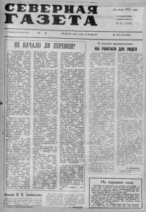 С Е В Е Р Н А Я Г А З Е Т А 2 6 июня 1995 года понедельник N2 51 ( 7 3 7 0 ) ¿ ' ^ Л Л Л Л Л / \ У \ Л Л / \ / \ / \ А Л Л Л Л Л / ' Г^ ^ \ Л Л А / ,У У А Л Л Л / \Л/ ^ У Ч Л А Л Л А Л Л А Л Л / ^ "ч л а л НЕ НАЧАЛО ЛИ ПЕРЕМЕН? У Новосибирской обла с ти — о со бая судьба. Она во многом определилась в г о ды войны, когда сюда б ы ли эвакуированы десятки раэличных заводов, в о сн о в ном связанных с производством военной, оборонной продукции. Второй этап оп ределился в годы создания Академгородка и дальнейшего развития науки в Сибири. Это общеизвестные истины, но о них приходится вспоминать сейчас потому, что эта двухсторонняя политика соро к о вы х , пятидесятых и последующих годов определила иерекос в э к о номике, что не замедлило сказаться и на остальных гранях повседневной жизни трудящихся городов и сел о б ласти. К том у же Новоснби рекая область в последние десятилетня становилась падчерицей в семье единой и братской Рос сии : соседние области явно жили богаче, крепче, стояли на несколько экономических ступеней выше. Напоминание о том, что ласковый теленок двух маток со с е т , в какой-то степени и верно, но ведь не только с в о енравность руководителей области сказалась на прежнем положении области и отразилась на днях нынеш них. Впрочем, не об этом речь, а о том, что, кажется, наступает пора перемен к лучшему. Залогом этого рас цвета должна стать намеченная Правительством Рос сий ской Федерации обширная программа по решению неотложных проблем стабилизации социально - экономя веского положения Новосибирской области. Постановление об этом опубликовано в «Советской Сибири». Его можно про читать всем, но в нем д о ста точно много места уделено науке, военно - промышленному комплексу и иным граням экономики. Нас же, сельчан, больше интересует то, что связано с сельским хозяйством, с нашей повседневной жизнью во всем ее многообразии. Т о есть попробуем выделить бол ее близкое нам всем. Повседневный опыт с е л ь скохозяйственного производства в районе говорит о том, что в наших условиях сельчане отдали предпочте ние коллективному ведению хозяйства. Ф е р м е р ст во не стало основной ф о р мой ни в земледелии, ни в животноводстве. Сказались | и отдаленность от рынка | сбыта , и слабая техническая г воо руженность, и многие > иные причины, в основном ? объективные. Но фермерские г хозяйства есть, они, как бы Л Л Л А Л Л А Л Л Л / Ч Л / Ч Л Л Л т Р У Д К о ни было, п рои зв о дят продукцию, сущ е ствую т. Но сущ ествую т и акционерные общества, колхозы. Н е которые из них достойно выходят из предложенной ситуации. Об этом, в частности, можно судить по и то гам весеннего сева. Есть положительное и в животноводстве. Н о сами по себе АО и К Х никогда не жили и не с м о гут жить без предприятий переработки их продукции и бе з предприятий об служ и вающей сферы. Следовательно, нужна совместная д е ятельность, учитывающая интересы всех сторон и ведущ ая в конце концов не к развалу производства, а к его укреплению, к в о с со з д а нию прежней системы , н он а совершенно новых отнош е ниях. Как эт о лучше сделать, покажет не столько время (его и так много упущено), а коллективный открытый р а з го вор за «круглым с т о л о м » , в открытой дискуссии, но не ради дискуссии, а ради о б щего дела. Впрочем, к аж е тся, в решении этой проблемы должны участвовать и сказать свое слово через СМИ специалисты, руково дители всех звеньев, р я д о вые тру