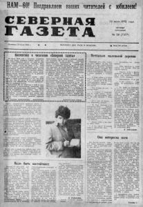 наших юбилеем! НАМ— 60 ! Поздравляем читателей с С Е В Е Р Н А Я 2(j июля 1995 года четверг № 5 8 ( 7 3 7 7 ) О с н о в а н а 20 и ю л я 1935 с В Ы Х О Д И Т Д В А Р А З А В Н Е Д Е Л Ю . ф Цена 150 ру0лей. Коллективу и читателям «Северной газеты» 2 0 июля 1935 годй в молодом, созданном в Д ыва й г н о о д м а ер н а р з а а й д о . н С н е о в й е р г н а о зе м ты р , ай ч о т н о е с а в м ы о ш п е о л с п е е б р е было в аж ным политическим событием. В е д ь именно такие газеты , как н аш а , в те годы “ Мела широкое р аспростр анение среди семей к о лх о зн и к ов , ра бо чи х , интеллигенции . Б у д у ч и непосредст венно связанной с местной жи знью , т г ыаз в е а т л а а н м а а с к с о ы н , кр о е р т г н аны и х зо п в р ы и в м а е л р а ах их у ч н и а л а р , ешво е с н п и и е с т о ящ и х п е р е д районом з а д а ч . А к аж д о е время выдвигало задачи свои, порой в корне отличающи еся от т е х , что были •"од, д в а , пять лет назад И это я сно видно на л п а р с и П ь м р е н о р а ш е е ст д т р ш о а й и н е и и ц н 6 а ф 0 х о л г р а е м з т а е ц т в иым и . е , ст к и о л т и ор в ая се п б у я бл и ик г о о в д а ы предвоенных и посл евоенных пятилеток, годы великого противостояния сов ет ск о го народа против ги тлеровски х захватчиков . О н а жи ла д т р а е а м я ж н е с н е жи м я е ь м я з и , а , б к о а к т ж о а т д м о ы и р й , ым т ч р и е е л в о жо в г и е а л к м . и в , К е а с у ж ь с п д е н а х я а а р м о г и д аз , е и т к н а п а ж о я строка с т а л а с течением времени зеркалом эпохи. В сл о ж н о е эк он ом и ч е ск о е , политическое Лю бо й корреспондент районной газеты и си лу своей проф е сс и и — человек и звестный . II не т олько по п убликации , по и, т а к з ню а о т т в ь н в . е о л Фи в е с ч е д н х о о р с о и е в з л о в а й е х ст и и е н г д о . е в р о А р ев и н т у ь я ж х не р о ч а б е й г о О о н : л а ь е , г е е - г т д о С е е з с о м н к н е а а а успела неоднократно побывать за все годы работы ж у р н а л и с т о м . Ра бо т а е т она в главном отделе редакции — с е л ь с к ох о з я й с т в ен н ом . А поэтому основными с в о о б т е н с о е в д о н д и ы к . ам р и уко ее во б д ыит в е а л л и и б м р е и х г а а н д из и атор х ыо з я и й с ж т и в , сп ециали сты с е л ь с к о г о хо зя й ст в а . У н ее , как и повожено з а в е д ую щ ем у отделом . имеется картотека « с в о и х » се л ьк оро в , то е с т ь т е х , с кем постоянно со т р у днич ает . И она до гольно - т ф о б ш и р н а . Поэтому-то , наверно, и мате- pie 1 разныы и на ин т т е е мр ыесн с ы е . л ьс к ой жизни так р азнооб А е щ е она ведет полосу « С е в е р я н к а » — полосу о ж е н щ и н а х и для женщи н . У в е р е н ы , если бы когд а-нибудь встретились героини н ее ис з т а р р а и ци с о и в о о к к , а з т а о л с я акт б о ы вы п й ере з п ал олн р е а н й . он Д н а ой и а с д а м м и а встреча бы л а бы весьма интересной. к к о ат с В . ь Т э н а т е к и в ч д т н к о и аб О » и л н ь х е г о т у з е я , й С а е с т м в з е а д н х е о с в ь р н , а у й у о н н т а а д р о а и к б т д о е у т р д и е с т с е т н о и в о с . Н а все лето именно л у г а и пашни с т а н у т ее рабочим м естом . т н и р в ав р ст е в д е а н к н ц о и е и . в Нре о м , я ка ж к ив и ет п р и е жр д аб е о , тае о т сн к о о в л н л ые к м критерием его деятельности о ст а е т ся ное в е р 1 ь главному: опираться на конкретны е , б н п л о р й и и з я к т п и и р е й а , к и т с и е к к л и о ь н , с я к и о г з н х ы о ж з е и я з й к н с а и т ж в д е с о н в мо н е у ы г х о ф а р к к а о т й о ы п о н ер и а а з , т п и м р в е о е с д в т . с П я о - п п р р а е в ж и н л е о м : у че д с л т я но к с о т л ь л , е п к о т р и я в д а оч р н е о д с 