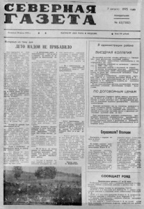 7 августа 1995 года понедельник № 6 3 ( 7 3 8 2 ) О с н о в а н а 20 июля 1935г, ф ф В Ы Х О Д И Т Д В Л РА ЗА В Н Е Д Е Л Ю . Интервью на тему дня ЛЕТО НАДО И НЕ ПРИБАВИЛО ф Цена 150 рублей. 0 0 °О О О О О О О О О О О С Ю О О О О О О О О О О О О С Ч Х > С Ч ;» О О О О О О О О О О О О О О О С К 'Ю О О О О О О С оос£ В администрации района ВЫ Е З ДН АЯ К О Л Л Е Г И Я На выездной коллегии, которая работала в с . Граждан- цевз, были рассмотрены следующие вопросы: О состоянии общественного животноводства и его сохранности в А О « Л у ч » . — О программе намерений по жилищному строительству на 1996— 1997 годы. — О выделении квартир и постановке на очередь. — О проекте постановления' областной администрации « О б освобождении А О О Т «Новосибирскнефтегаз» от оплаты за землю при строительстве автодороги С е в е р ное— Мало-Карагаевка. С докладами и сообщениями, соответственно, вы ст упили: Гриц Н . Е . — начальник ветстанцни, Жорой В . П . — заместитель главы райадминистрации (по 2 и 3 вопросу), Марченко А . Т . — председатель комитета но земельным ресурсам и землеустройству. Во все подготовленные проекты постановлений внесены дополнения, уточнения, рекомендации, которые будут учтены. П О Д О Г О В О Р Н Ы М Ц Е Н А М Администрация Северного района приняла распоряжение № 2 54 -Р от 17.0 7.9 5 г. «О договорных ценах на стеклотару и отмене залоговых цен». Это распоряжение принято вэ исполнение подобного распоряжения областной администрации. Введение договорных цен на стеклотару проводится «в целях улучшения приема стеклотары от населения, а также в связи с тем, что отпускные цены заводов-нзгото- нителей на стеклотару постоянно растут и превысили действующие залоговые цены на нее». Этим распоряжением разрешено коммерческим организациям, гражданам — индивидуальным предпринимателям закуп стеклотары у населения по договорным (свободным рыночным) ценам и реализацию ее предприятиям пищевой и перерабатывающей промышленности по договорным ценам. с^ хчххуухю о о о о о о о о о о о о о о о о о о о о о сххю о о о о о о о о о о о о о о о о о о о о со о о о о о о сю о сп о о о о о о о п о о а р о С Спрашивали? Отвечаем Л е т о п е р е в а л и л о з » свою п во е д р ыв ую у ж п е о д м о о в г и у к т у , го и во р жи и ть вотно о начальном периоде ного с о д е р ж а н и и ж п и а в с о т т б н и ыщ х как о событии прош лом . О н и п е г т г р э л я с ь ра зр еш и т ь гие во про сы , п р и с ущ и е ходу гуртив на в ы а а с а , п м е н р Н о е о значительная часть проблем т п я о -пр п е р ж о н и е зв м о у дс т т р в е о во н ж е и с т то и и х т . х н о а - месте , и к аж ды й д е ь с летни х д ет о с и я ль мныол х о ' к п о л , ощко а т д о о р к ое о т я п в р л а я в е л т я ся Основной продукци ей в ж н аэт - к п ч о а о юч л ю и т ч д , е ст с ч т в т е в о . о , мМ е к н ш а о к а г е о р т а л б л о у т в е а е г е о л т и с п я ч о и л с т е ь у годня д о я рк ам н п а с т у х а м ? о О т б ех э н т и о к м у п го р в а о в р л и ен т ии плав с н елы ь й с к з о о г о х о з я й с т в а Е . В . С м и р н о в а . — Е л и з а в е т а ннш и а л , ю о н го а с к г а о д к д а о а н м н н ыу а р х м о о в д п н и е В е т р л с и п я а о о д д и с о м р м и а в п р н р о о в е водство м о л о к а ? — П р о и з в о д с т в о м п о р л о о и т з о с шч н и е и н н з а и и м е л . о О с п ь д о н г л а о ю - л т о о н в е ь с н я к и о х к л о ь —д к о и в м у . м п е н к р юь и - тО|р,:,пх ст ано в ят ся м ен ьш е д а ж е т е т е р ь , в летн ее г р е м я . ч ся ас 4 в 4 8 х 8 о з г я о й л с о т в в а х д о н й а шсч г и о ты г у в р С ае т е т а й , в то в