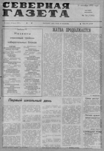 21 сентября 1995 года Г А З Е Т А четверг № 7 6 ( 7 3 9 5 ) Основана 20 июля 1935 i . ♦ ♦ ВЫХОДИ! ДВА РАЗА В НЕДЕЛЮ. ф Цена 150 рублей . Выборы-95 Н а з в а н ы «призовые тройки» избирательных блоков ПАРТИЯ « Д Е МО К Р А Т И Ч Е С К ИЙ В ЫБ О Р Р ОССИИ» Г. Егор Г А Й Д А Р , Сергей Ко в а л е в, Лидия Фе д о с ее в а Шу к ш и н а. «НАШ ДОМ — Р ОССИЯ» Виктор Ч Е Р Н О М Ы Р Д И Н , Никита МИХАЛКОВ. Лев РОХЛИН. КОММУНИСТИЧЕСКАЯ ПАРТИЯ РФ * Геннадий ЗЮ ГАНОВ . Све т л ан а ГО РЯЧЕ ВА . Ама- нгельды ТУЛЕЕВ . Л И Б Е Р А Л Ь Н О Д Е МОК Р АТ ИЧ Е С К АЯ ПАРТИЯ Р ОССИИ . Владимир Ж И Р И Н О В С КИЙ. А лександр В Е Н Г Е Р О ВСКИЙ, Сергей А Б Е Л Ь ЦЕВ. « Я Б Л ОК О» Григорий ЯВЛ ИН СКИ Й , Владимир ЛУКИН , Татьяна Я Р Ы Г И Н А . И З Б И Р А Т Е Л Ь Н ЫЙ Б ЛОК « Д Е МОК Р АТ ИЧ Е СК АЯ Р ОССИЯ — С В О Б О Д Н ЫЕ ПР ОФС ОЮЗ Ы ' Галина СТАРОВОЙТОВА, Первый Л е в ПОНОМАРЕВ, Глеб ЯКУНИН. КОНГРЕССРУССКИХ О Б ЩИ Н Юрий СКОКОВ. А л е к сан др Л Е Б Е Д Ь , Сергей Г Л А З Ь Е В . ПАРТИЯ САМОУПР АВЛЕ НИЯ Т Р УДЯЩИХСЯ Святослав Ф ЕДО РО В . Алексей КАЗАН НИК, А л е к сандр ПОРОХОВЩИКОВ. Р Е С ПУ Б Л ИК АНС К АЯ ПАРТИЯ Р ОССИИ - О Б Ъ Е Д И Н Е Н И Е ПАМФИЛОВА — ГУРОВ — Л Ы С Е Н К О Д В И Ж Е Н И Е « В ПЕ Р Е Д , РОССИЯ! » Борис Ф ЕДО РО В , Бэла Д Е НИ С ЕН КО , А л е к с ан д р ВЛАДИСЛАВЛЕВ . И З Б И Р А Т Е Л Ь Н ЫЙ Б ЛОК «ЗА Р ОДИНУ» Вл ади мир I ЮЛ Е ВА НОВ, Евгений ПОДКОЛЗИН , Дмитрий С ТА РОД УБЦ ЕВ . НАЦИОНАЛ Ь НО Р Е СПУБ ЛИКАНСКАЯ ПАРТИЯ РФ . Николай ЛЫ С ЕН КО , Николай ПАВЛОВ, Константин ОВЧИННИКОВ. Ш К О Л Ь Н Ы Й ЖАТВА ПРОДОЛЖАЕТСЯ к: '-Традицн >нн > и необычно, с выдумкой, прошел День з н а ний в бергульск>й средней школе. Классные руководители имеете с ребятами подгото- ви 1и массу различных мероприятий. У пятиклассников это н а зы в ал о с ь « Познай самого себя» . Целью было — проверить и помочь р азви вать внимание учащихся. В игровых моментах прозвучали вопросы: «Кто я? Чего я хочу? Что я могу?». Проведенная с детьми викторина п о темам: «Внимание к з в у к а м » , «Не звени т а р е л ками» , «Слово —- не воробей». «В алфавитном порядк е - . « З и г з а г на доске» учителем русского я з ы к а и л и т е р а туры Ириной Семеновной Волокитиной никого из ребят не остави ла равнодушными. Г а ли н а Леонидовна Михале- вич п редложи ла своим шестиклассникам вопросы из географии , л итер атуры , истории. Ответы детей были порой неожиданными, но ин тересными, отражающ ими действительность данной тематической ви ктори не . Однако большая часть правильных ответов п р и н ад л еж а л а Ире Осиповой, Люде Де- вятникэвой , Лене Доброволье- ю м у . Победителям вручены призы. Позднее у нас с этими ребятами, а т акж е с Ж ен ей Хал я в а и Машей Ломакиной з а в я з ал с я непринужденный р а з говор. началом которому посл уж и л вопрос: - Ребята , на первом уроке вы показали хорошие знания но перечисленным выше предметам, а з н а е т е ли вы своего классного руководителя? — Не только з н а ем , но и любим! Она при ех ал а к нам из Нов »сибирска. Преподавател ь истории, географии , л и тер а т уры , библиотекарь... На ее уроках всегда т а к ин тересно! Галин» Леонидовна умеет все: она прекрасно вяжет, шьет, красиво танц ует . Все это пытается п е р ед ать и нам. В прошлые годы в ел а работу соответствующих кружках . пока Тихая осень быстро и в то ж е время незаметно опустила на зем лю багряно-золотое покрывало, поторап ливая сельского ж и т ел я : убирай выращенный ур ож ай , иначе труд твой пропадет з р я , т а к как скоро укр о е т его б ел о е 