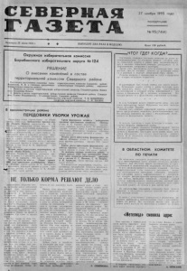 Основана 20 июля 1935 В Ы Х О Д И Т Д В А Р А З А В Н Е Д Е Л Ю . 27 ноября 1995 го да понедельник № 9 5 ( 7 4 1 4 ) Цена 150 рублей. О к р у ж н а я и з б и р а т е л ь н а я к о м и с с и я Б а р а б и н с к о г о и з б и р а т е л ь н о г о о к р у г а N2 1 2 4 Р ЕШ ЕНИ Е О внесении изменений в состав территориальной комиссии Северного района В н ш н я м в Г в П0И ТУм ^ т 1 , 3аЯВЛеНИе Члена теРРнт°Р и а ль н ой комиссии Се ве рн о го района избирательная ал” » ' " , с т Ра « ин Северного рай он а . о к р уж н а я кона В л а ^ н м н р ^ И л ь н ч а 3 терр,|ТОрнальпой избирательной комиссии Северного района Вишня . . . ” сост ав территориальной избирательной комиссии Северного района Спиридо- нону Г а л и н у Вла д им и р о вн у— от администрации Северно го района. П р ед седат ель окружной комиссии Т . Н . Ф Е Д О Т О В А — С е к р е т а р ь окр ужной комиссии С . И . К И З Ю К V N A /V V V 'vA / V A A A A / V A A A A A A A A A A / ' АЛ ЛЛ ЛА ЛЛА ЛАЛ ЛЛЛ АЛ/ ^У \ЛЛ АЛ/ ‘\АЛЛ /\/ \А ЛА Л. / У /\А Л /0 \Л /\Л V 4 , V \ \ В администрации района П Е Р Е Д О В И К И У Б О Р К И У Р О Ж А Я Подведены итоги соревновании на уборке ; ур о ж а я 1 99 5 года. Победителем признан кол- ; хоз «П а м я т ь Ленина» (председатель В. М . ■ Ш р е й д е р ) , завершивший у борку у р о ж а я иер- ; вым в р ай он е , получивший н анвы сш ую уро- Чкайность зерновы х к у л ь т у р , выполнивший д о . ; п г к о и и о в о л к о н о а р а ч п л е и ыь с т н е з в ы а е д о й н а б н н я фы и з о а х е н те д с п л е о м ь и с я в т п н с в л п . а а а н Х ш п о о о к в з е у я с юй д з с я а т б ч з в а и е о с . ы з П е п п р о о к н б р у а е е д в иы в в т п ы е о л р с л ю о е . ! е п мри с д у е жне д жен н о ой пе п р р в е о м е ии кл в асс с н у о м е м е ме д с в т а о с м в и р л у л ч и е о н н и а рублей, в том числе В . М . Ш р е й д е р у 5 0 0 тысяч рублен . ще В ст т в о у рое « Н м а ш ес а то Ро п д р и и н су а ж » де (п н р о ед а с к е ц д и а о т н е е л р ь ному 1'. о 1 б 1 . Х р у щ е в ) . Х о з я й с т в у вручена д ен еж н ая мия в с у м м е 1,5 миллиона р уб л е й , в п т р о е м числе Г . Н . Х р у щ е в у 3 50 тысяч рублей . Тре т ь е место по итогам уборкн урож а я в 1 у 995 « Р г о о с д с а и я п » ри ( с п у р ж е д д е с н ед о ат а е к л ц ь ион В е . р К н . ом К у апо о р б и щ к е о с в т ) с вручением денежной премии в с у м м е один м и л л и о н р убле й , в том числе В Е . Напори чГжу - 2 5 0 тысяч рублей. С р ед и ф е р м е р ск и х хозяйст в победителем признано крестьянское хозяйст во «В итя зь » (глава В. А . Г ер лиц ) , получившее ность зе рновы х культур более 30 цен у тн р е о р ж о а в й с гектар а , сд а вш е е зерна в региональный фонд 163 тонны. Ф е рм е р ск о е хозяйст во '-«Витязь* награждено денежной премией в с у м м е 5 0 0 тысяч рублей . Второе место при суж дено ф е р м е р ск о м у хо ляйетву « С т и м у л » (глава I’ . Г. К у р ц е в ) , к о т о рому вручена денежная премия 3 0 0 тысяч рублей . з ч я ен й З Т и с а р т е е в м т о у ь к е п а « р з Д м а е е нм е л и с и ь т е и т о а п » в п о р м с ( и о г у с л щм у а м и жв е а д х е о С н 2 з . 0 о я 0 й А ф с . т е т ы р в П а м с л мя е юч р р с р к о а о в й р ) м у о б н у с л а е в й х р " о у в уборке у р о ж а я 1995 года премировано уборо чное звено ремонтно-т ехнического иредпрня тия в со ст ав е О . С . Ив а но в а , С . Н . Егор о ва . А . И . А н а ш к и н а . З в е н у вручена пре ин 100 тысяч рублей . л ва е н к Р о т у и к в в о н ы в ыо д д х ел и и т п е т р л ь е я д с мп р р е и а д я к с т ц т и в и й а о , н д е к л р о я н л ы х п х о о з о о о щв б р щ е р е н е с и к т о я в м , е п н е к д р о о л е довиков производства своих предприятий. 7 V *- ■ W V W W X / s A / V V \ ^ \ A A / \ A A / \ / \ / \ A / 's A / 'VV V V V \ y \ A A A